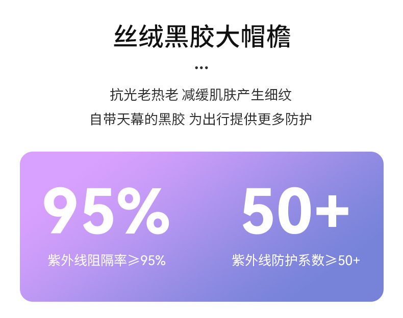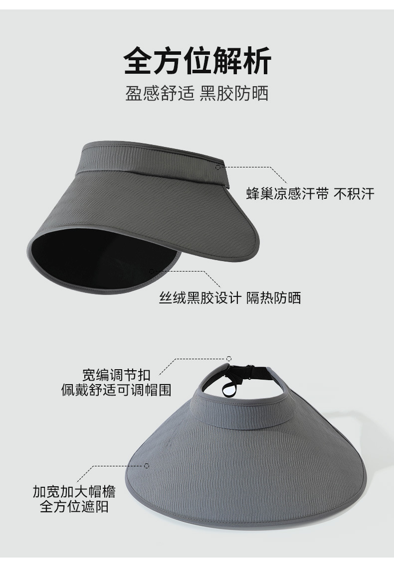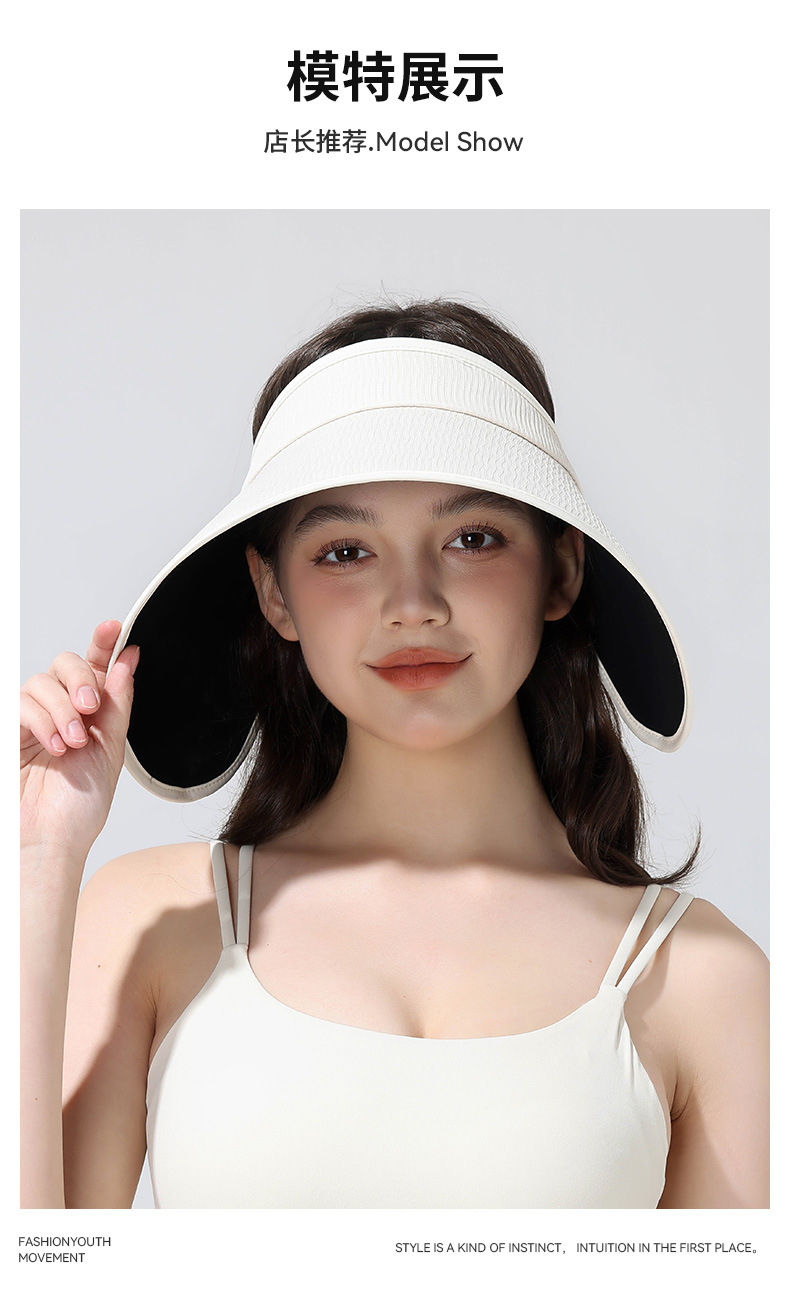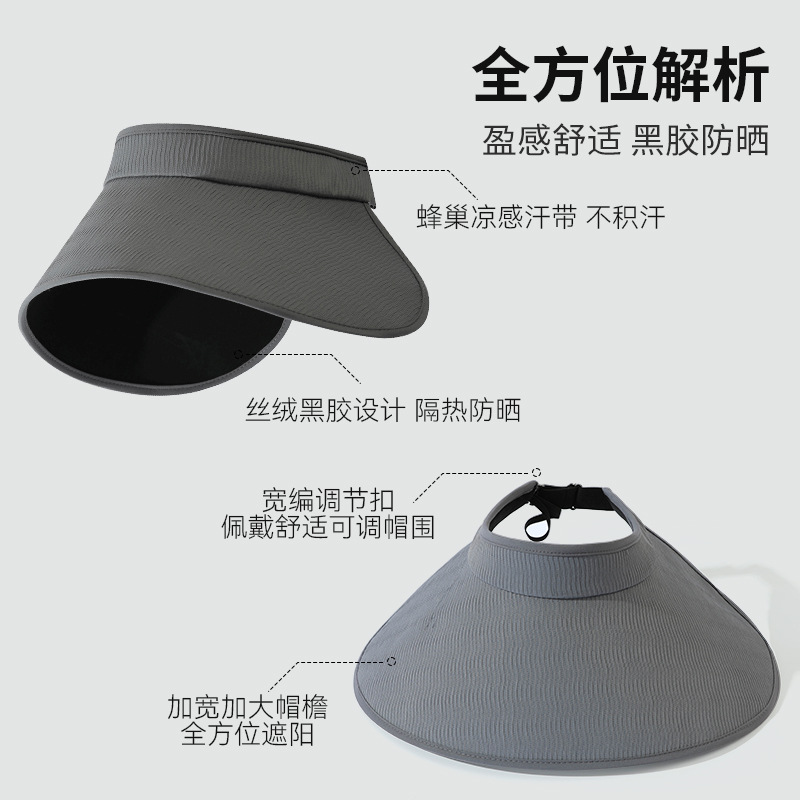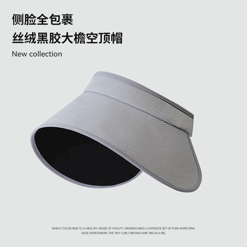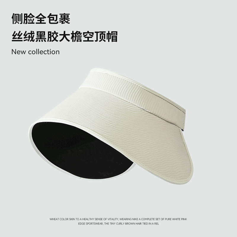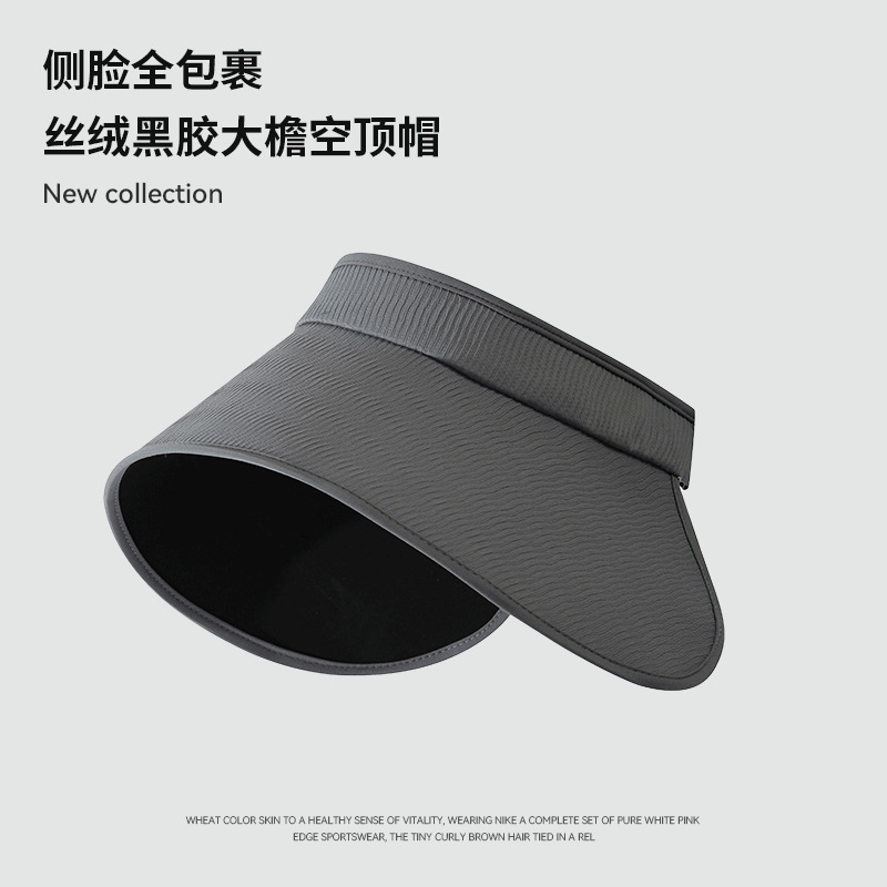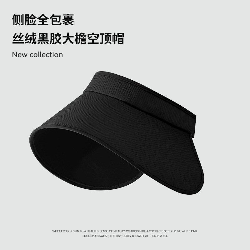 焦下同款丝绒黑胶加大加长帽檐可卷防紫外线太阳帽夏季防晒空顶帽