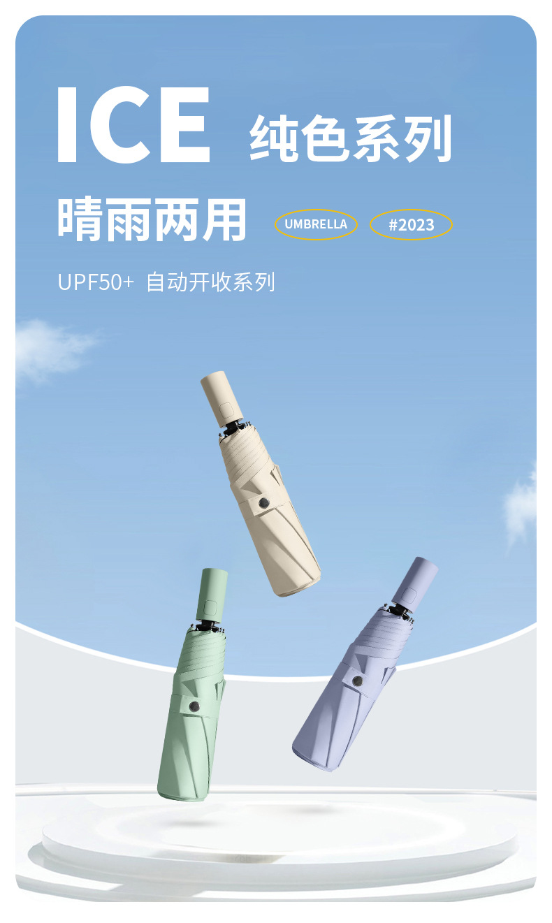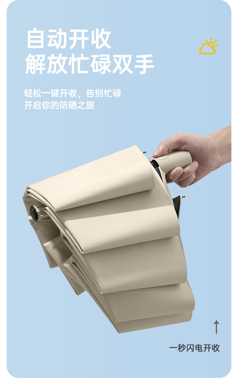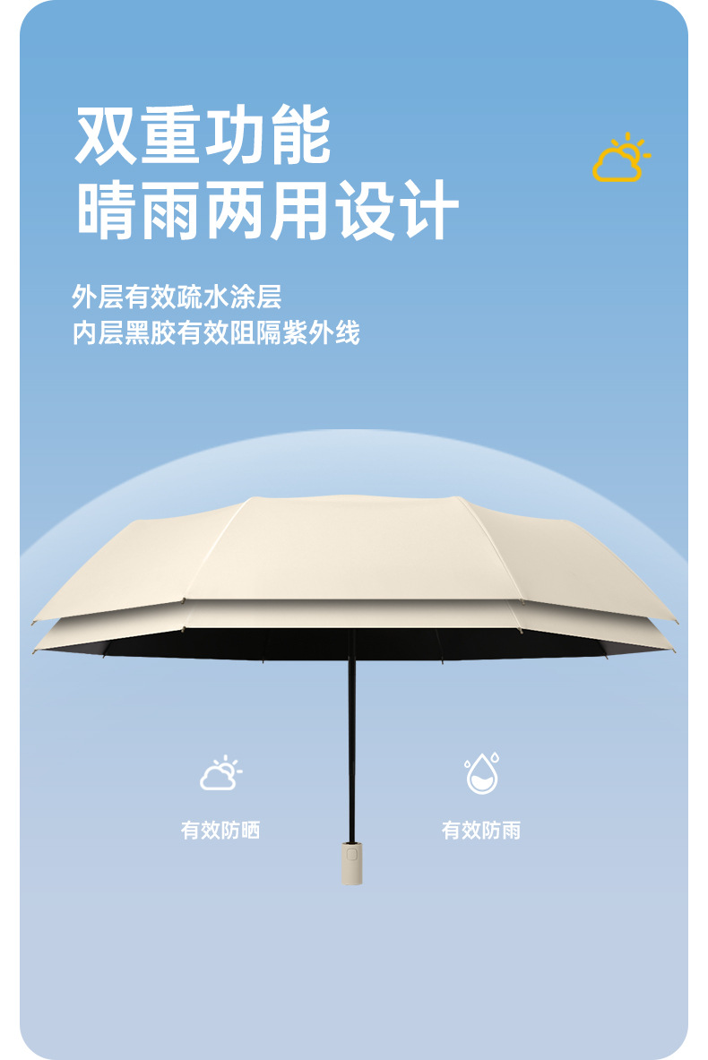 日韩三折黑胶全自动折叠雨伞高颜值晴雨两用遮阳伞自开自收伞批发