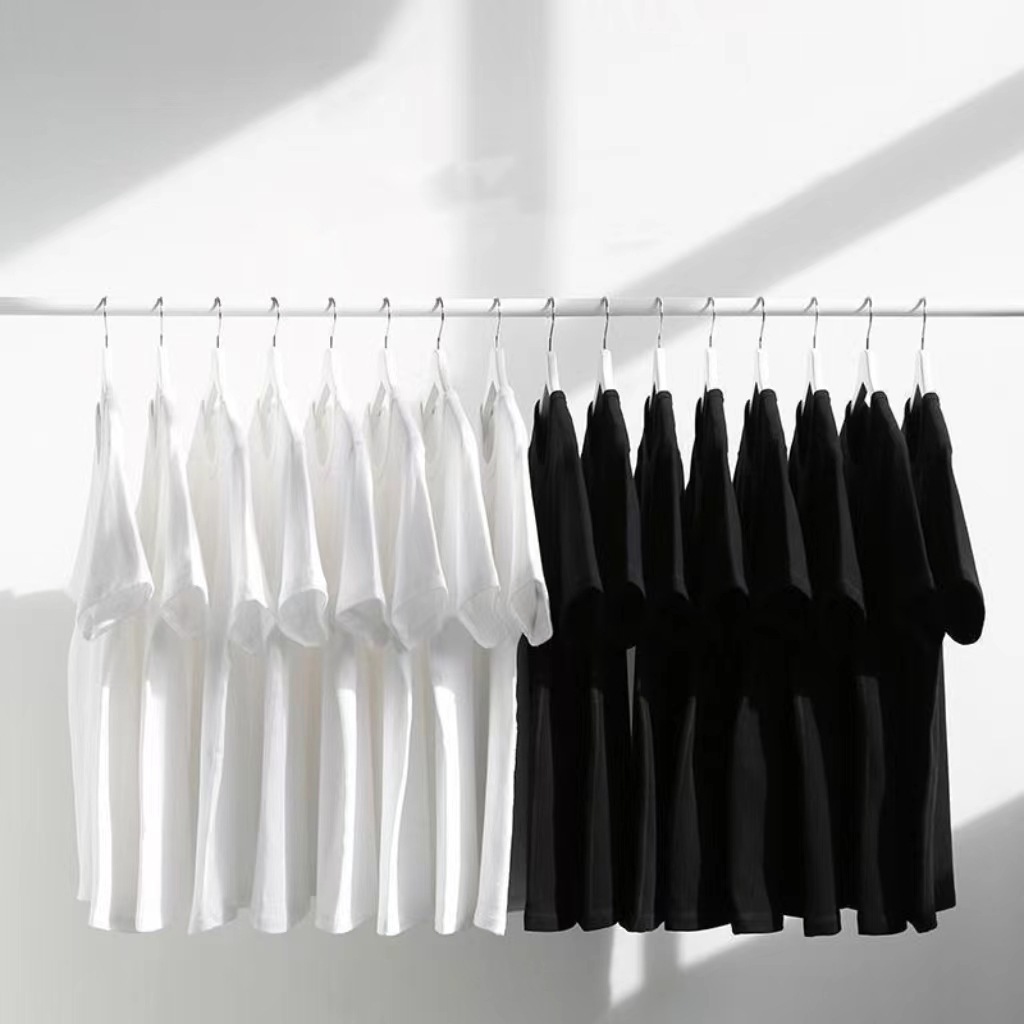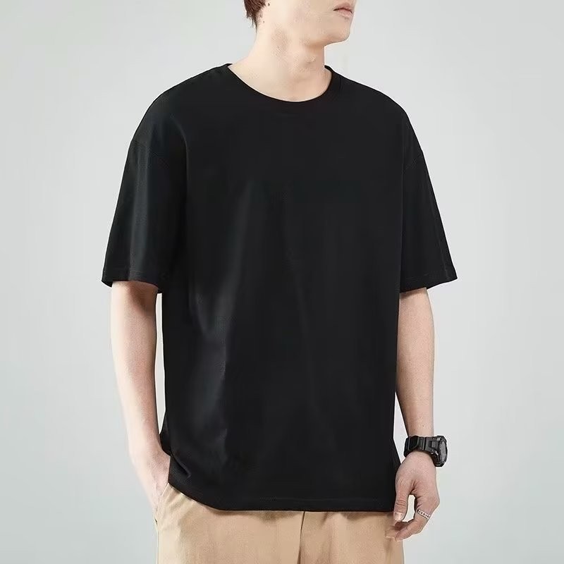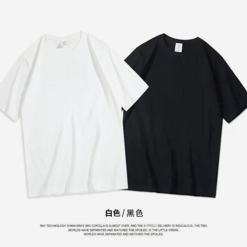 重磅精梳纯棉圆领宽松批发男女百搭落肩款短袖T恤空白版纯色上衣