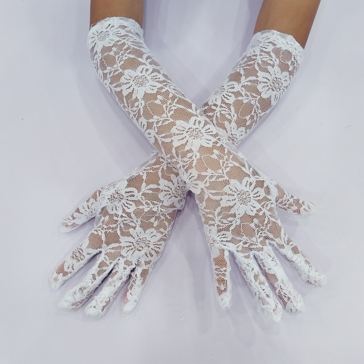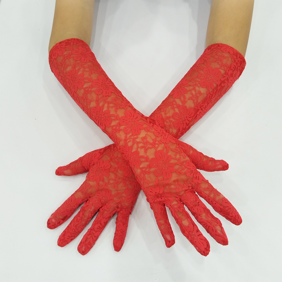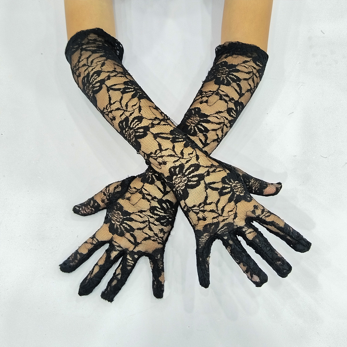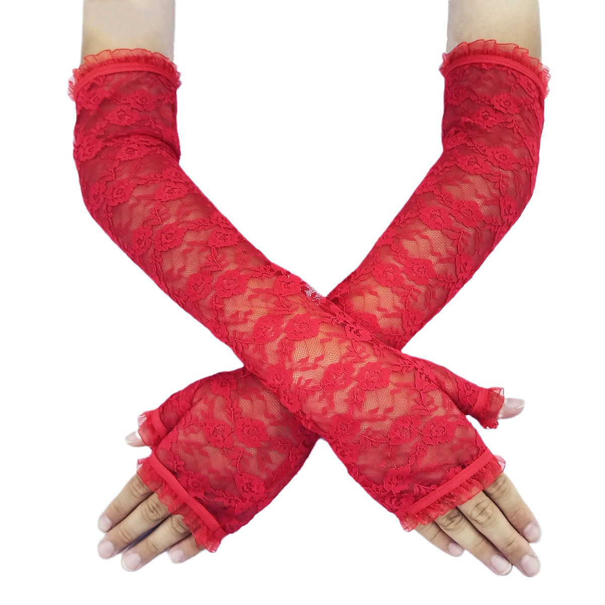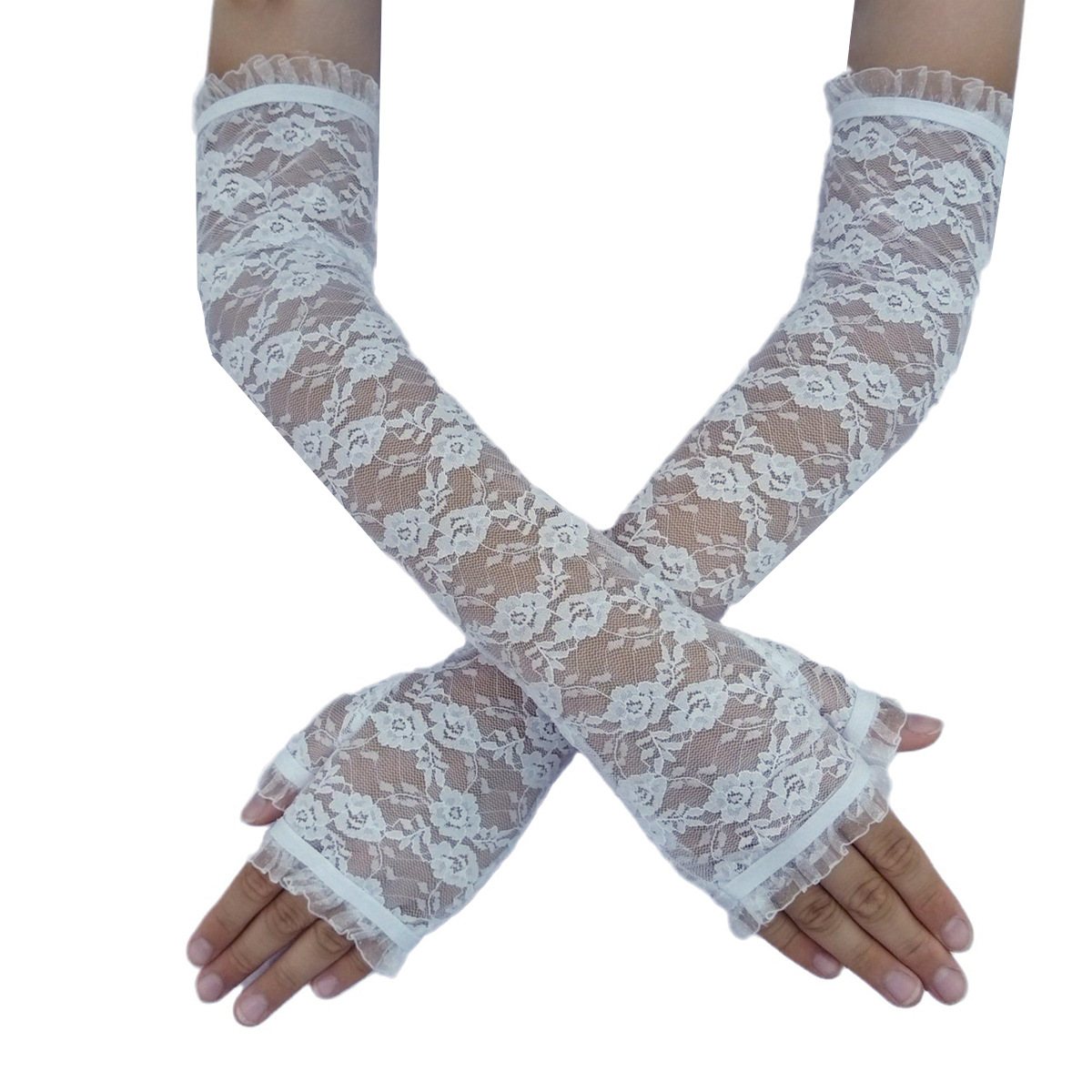 长款半指蕾丝手套女士夏季防晒袖套开车骑行遮阳漏指护臂手臂套女