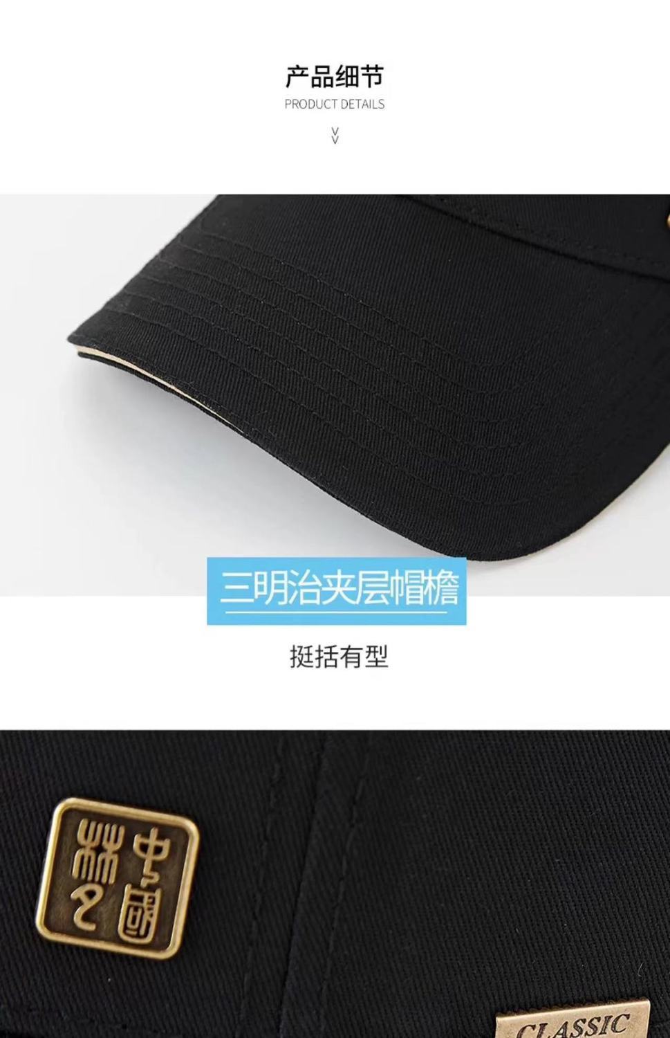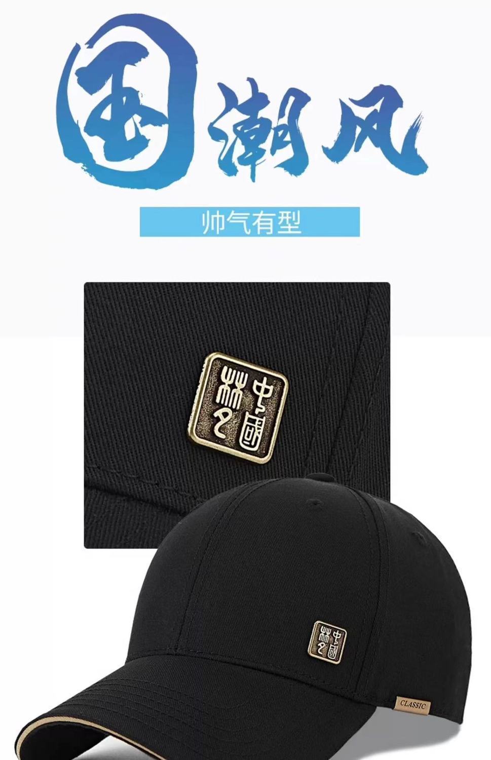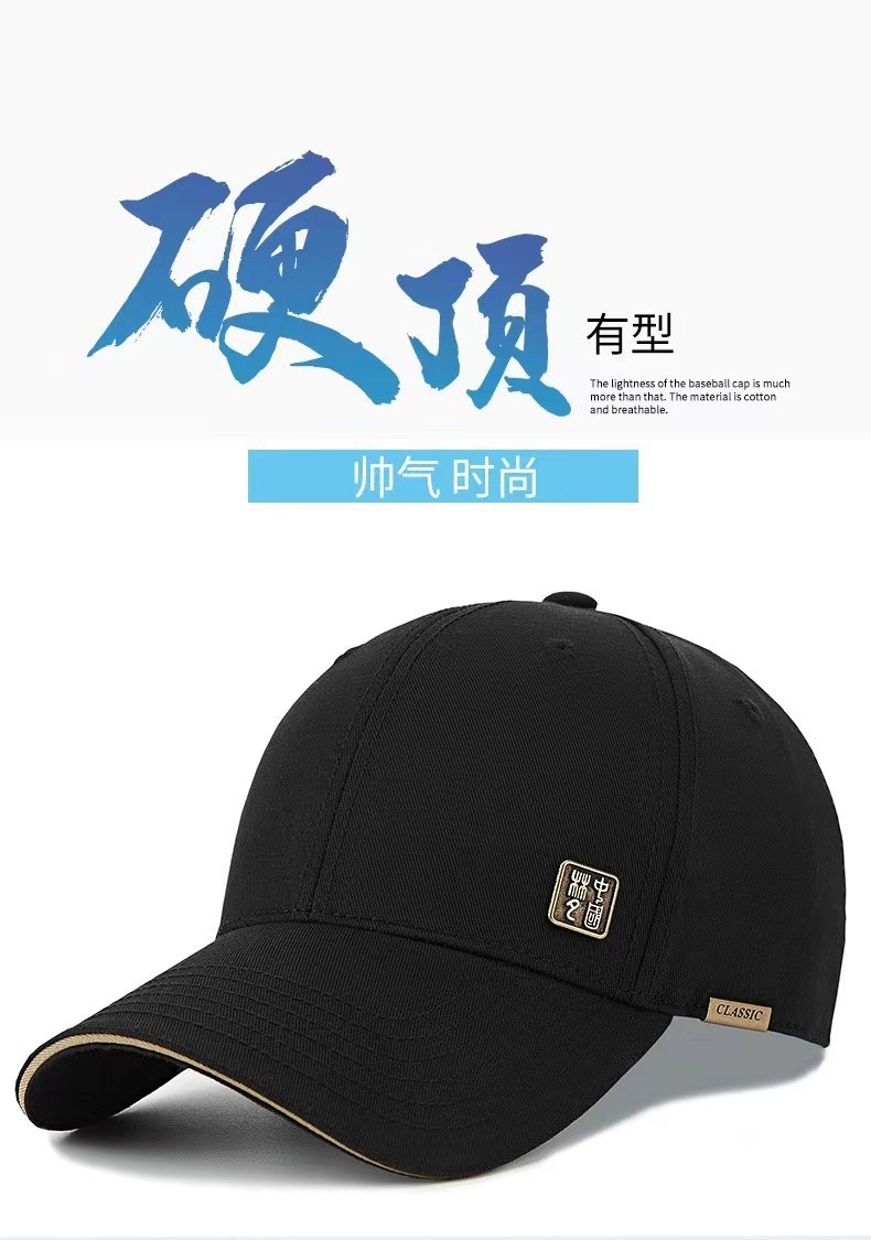 国潮新款硬顶棒球帽男士宽帽檐显脸小时尚中国心春秋遮阳鸭舌帽