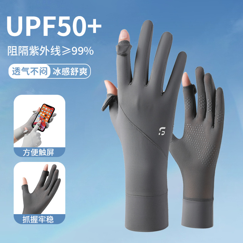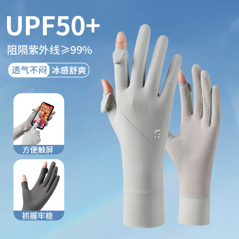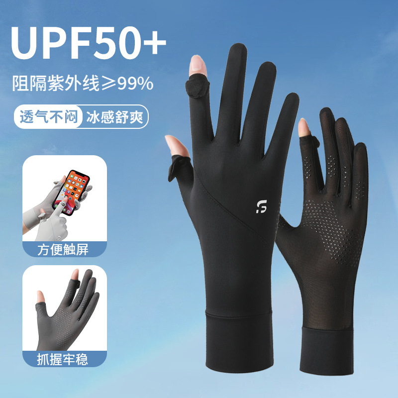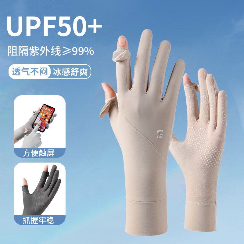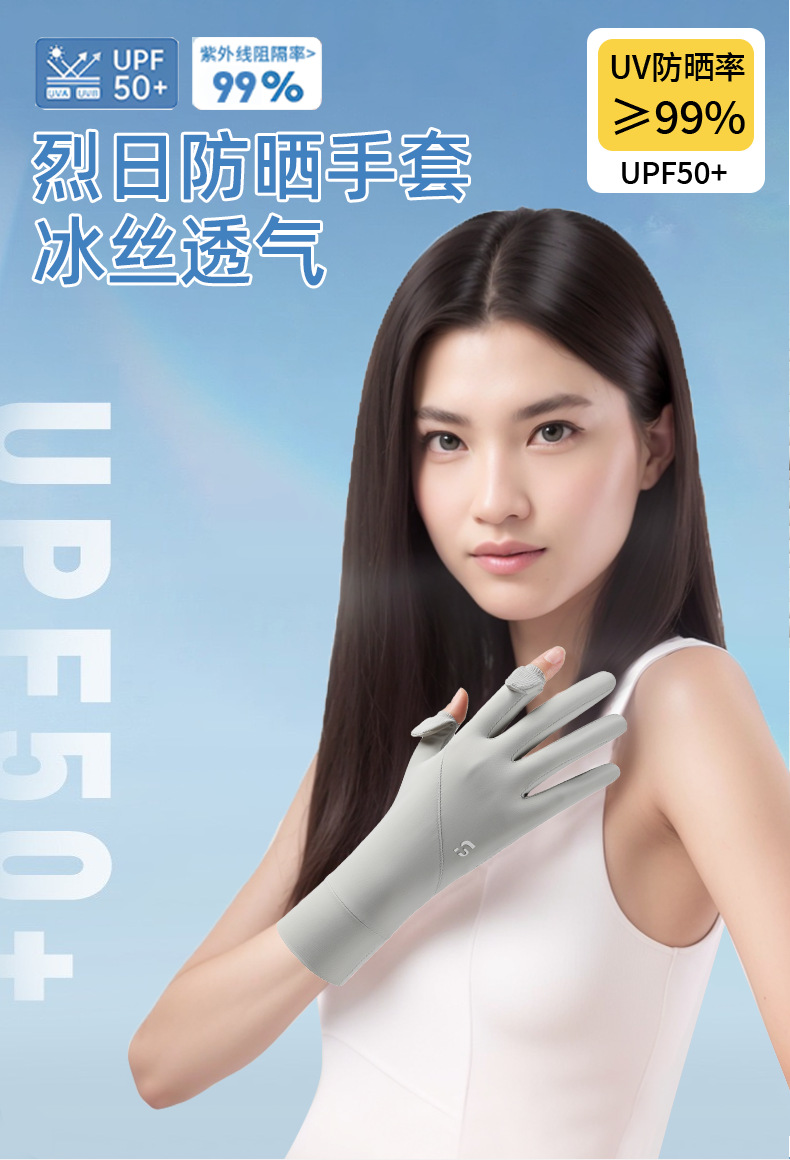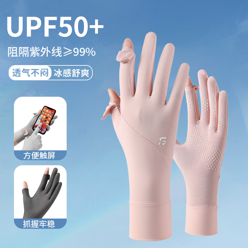 冰丝手套防紫外线夏季薄款防滑触屏户外车骑行开车防晒手套女加长