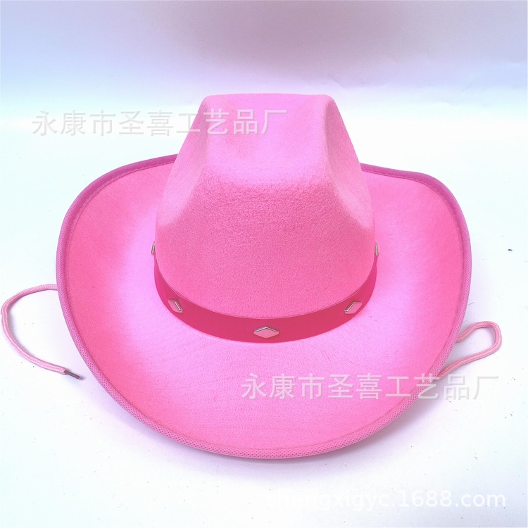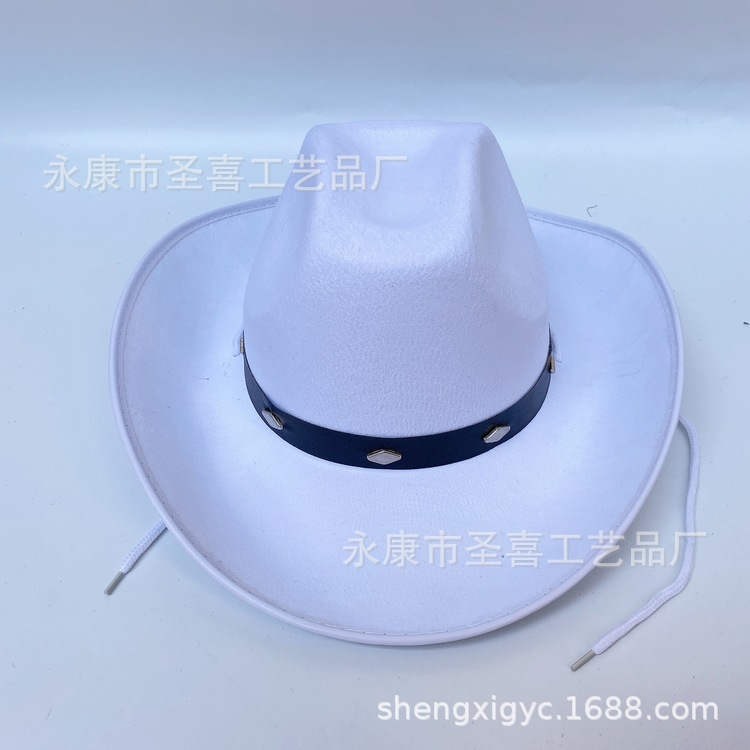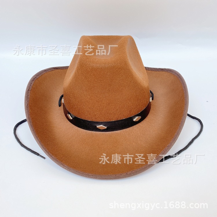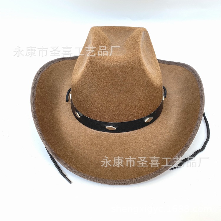 厂家批发男士西部五钉皮革牛仔帽子一次成型帽大沿帽硬涤纶毛毡帽
