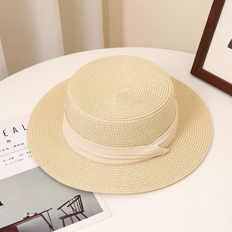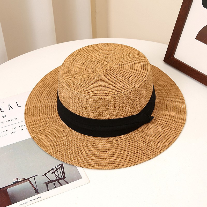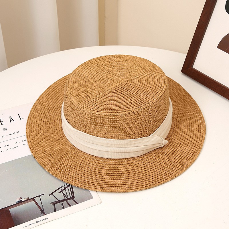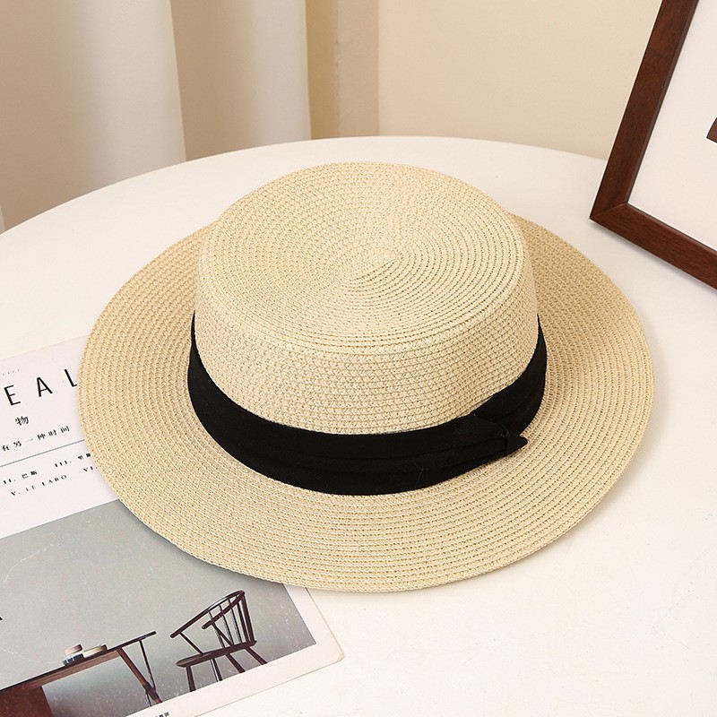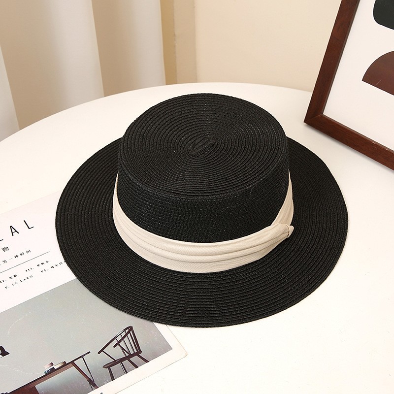宽檐平顶草帽女夏天防晒度假手工编织法式名媛礼帽遮阳沙滩帽子19
