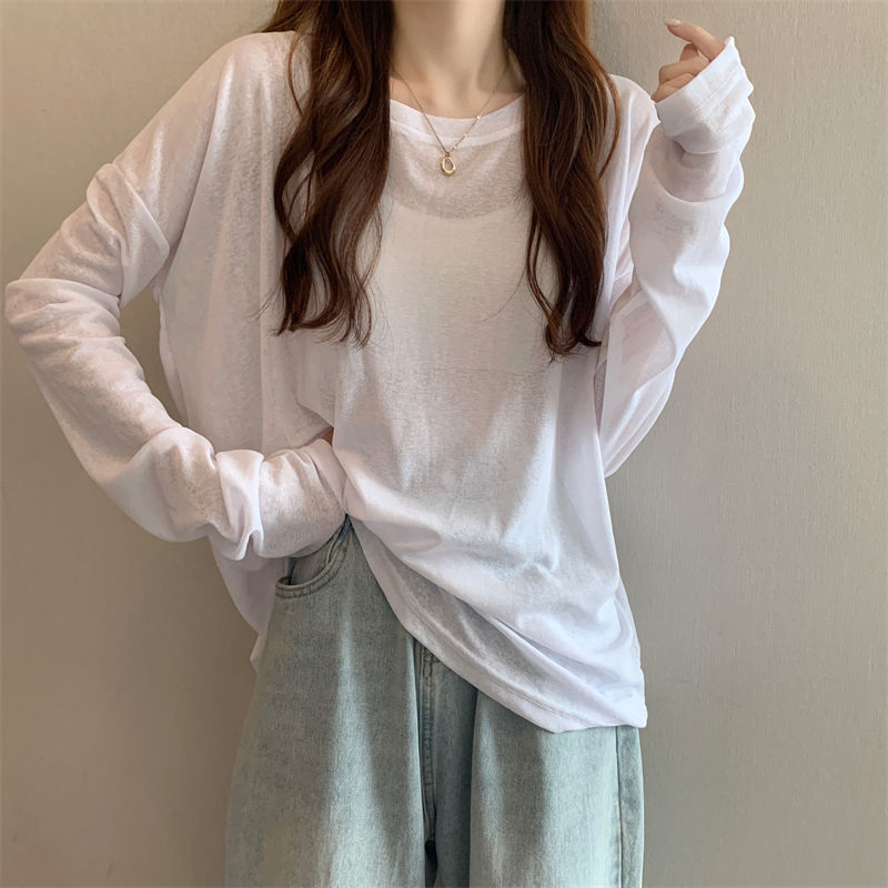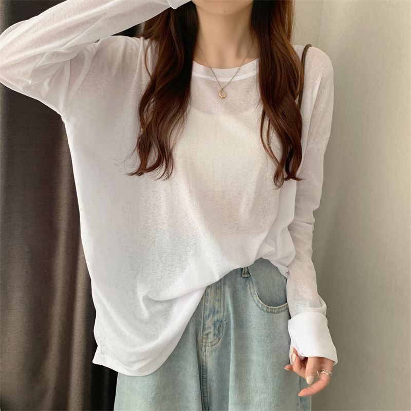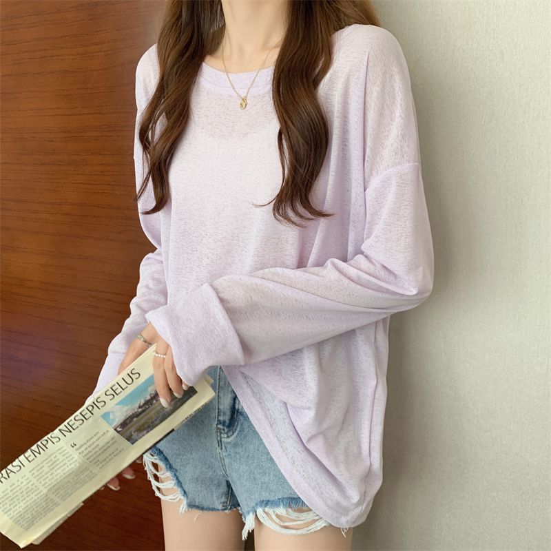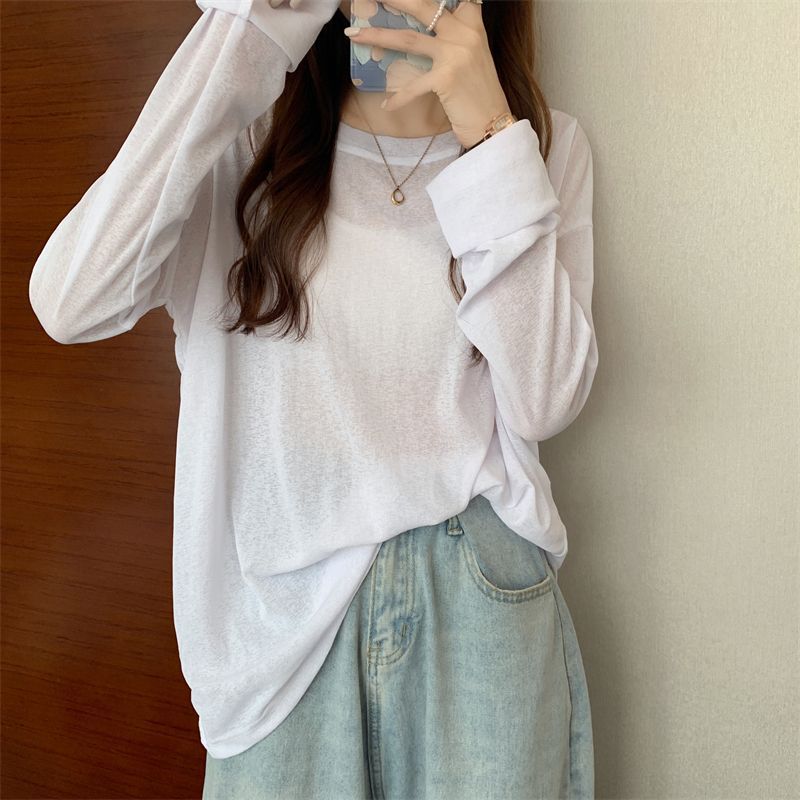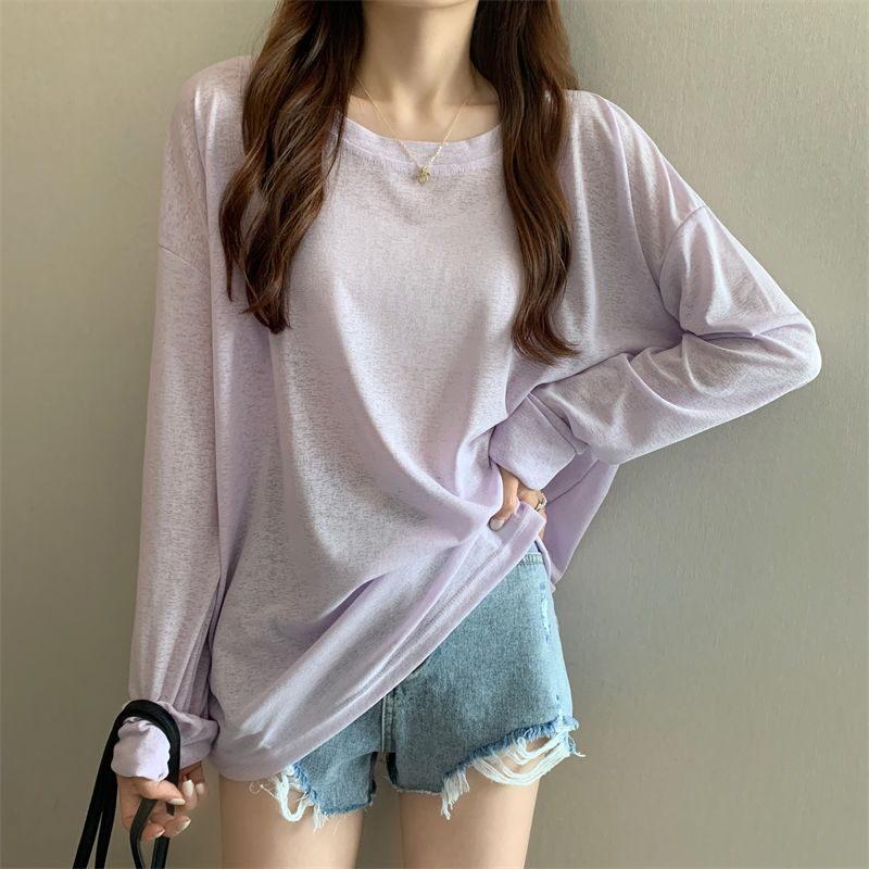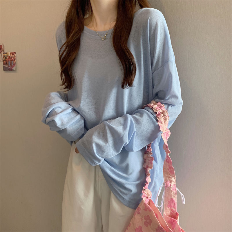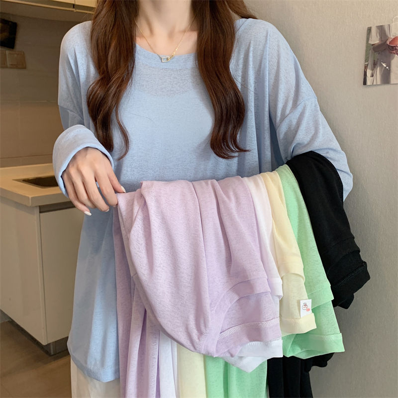 大码冰丝防晒女春夏薄款长袖T恤2023新款外搭罩衫慵懒风宽松上衣