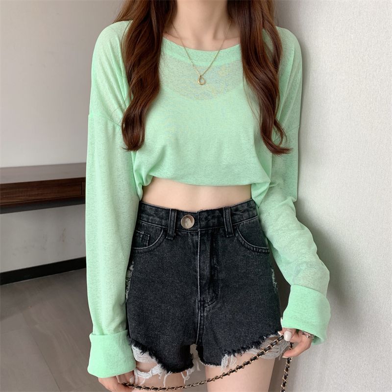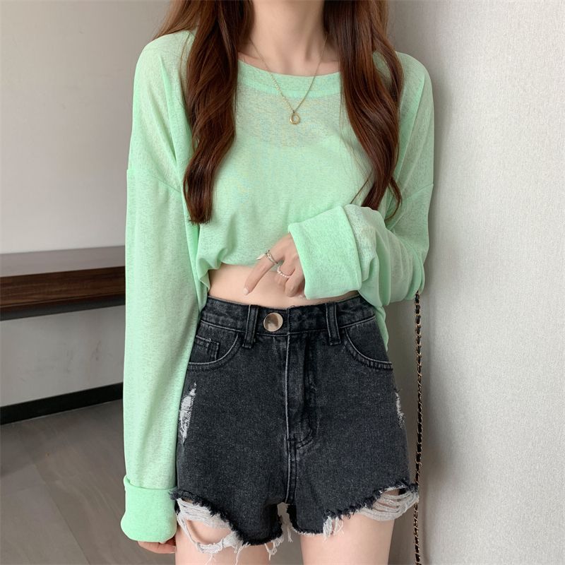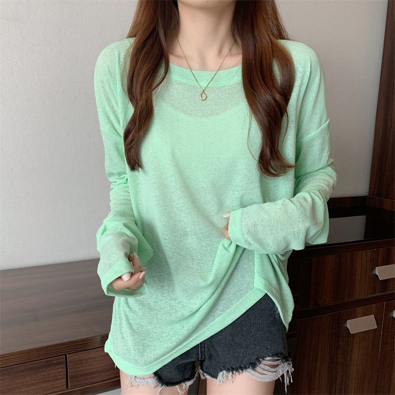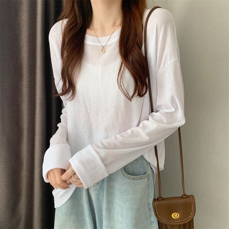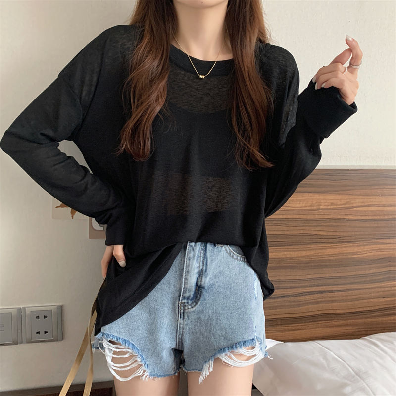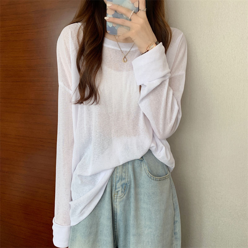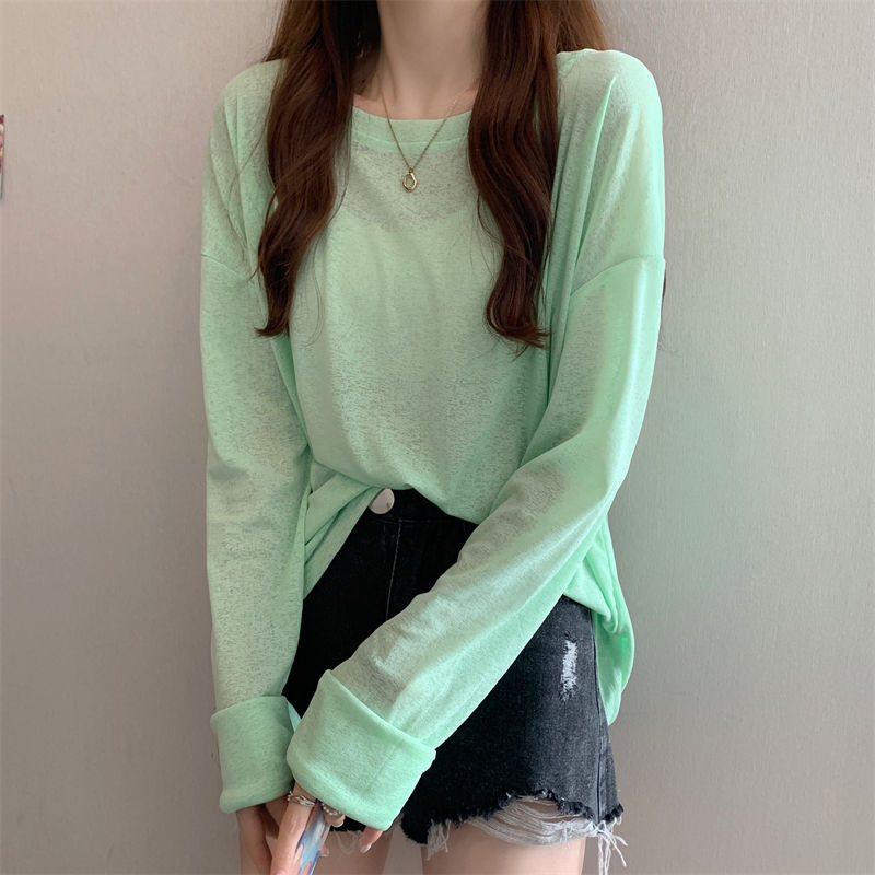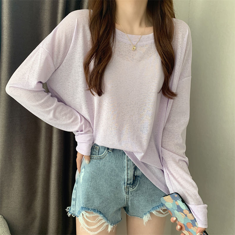 大码冰丝防晒女春夏薄款长袖T恤2023新款外搭罩衫慵懒风宽松上衣