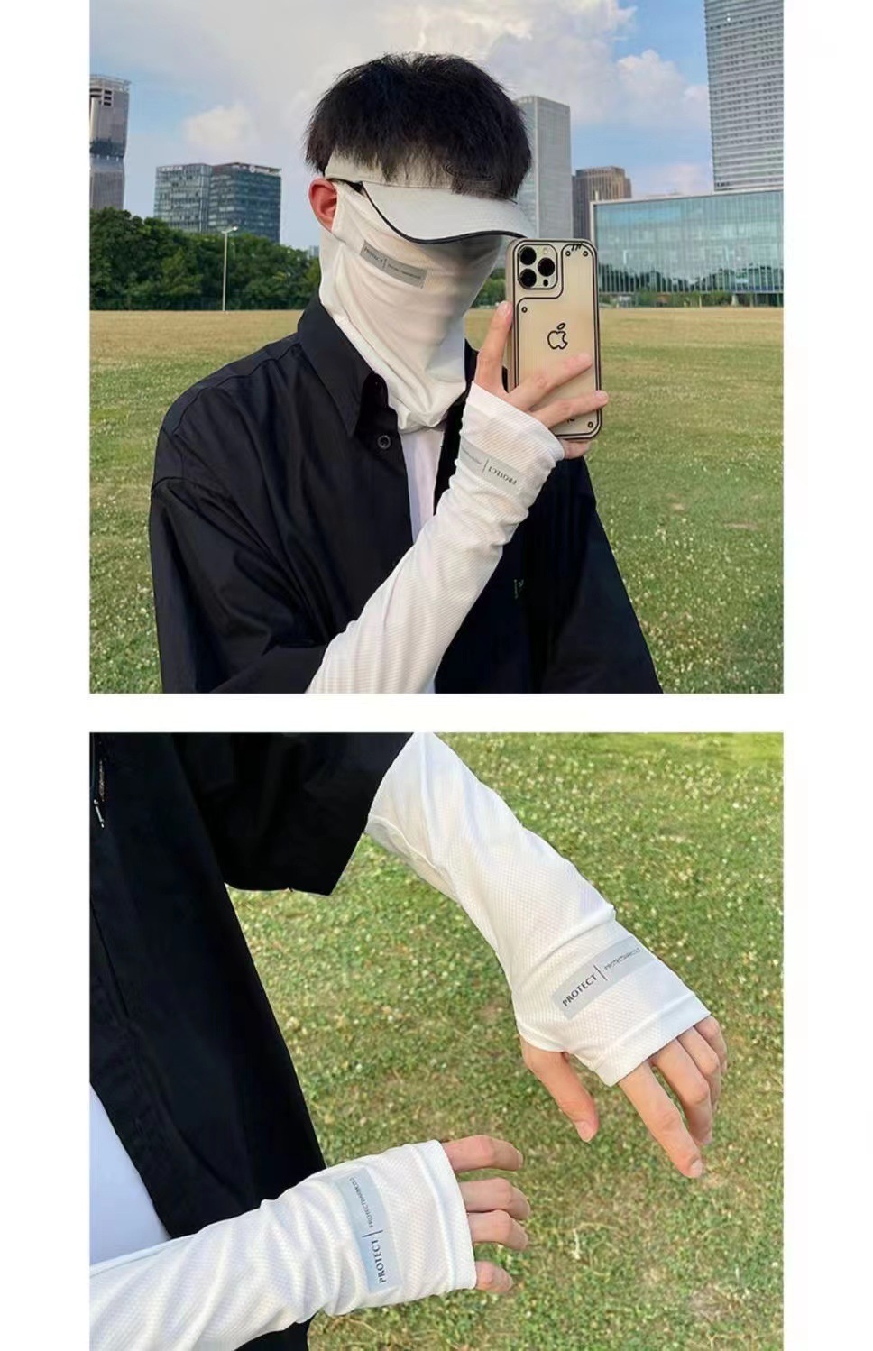 夏季冰袖防晒袖套男款防紫外线冰丝男士宽松大码护臂手套开车护袖