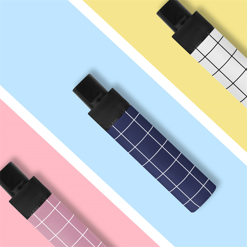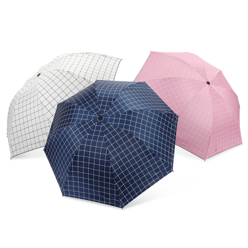 韩版手动格子雨伞批发防晒遮阳伞黑胶晴雨两用大号太阳伞防紫外线