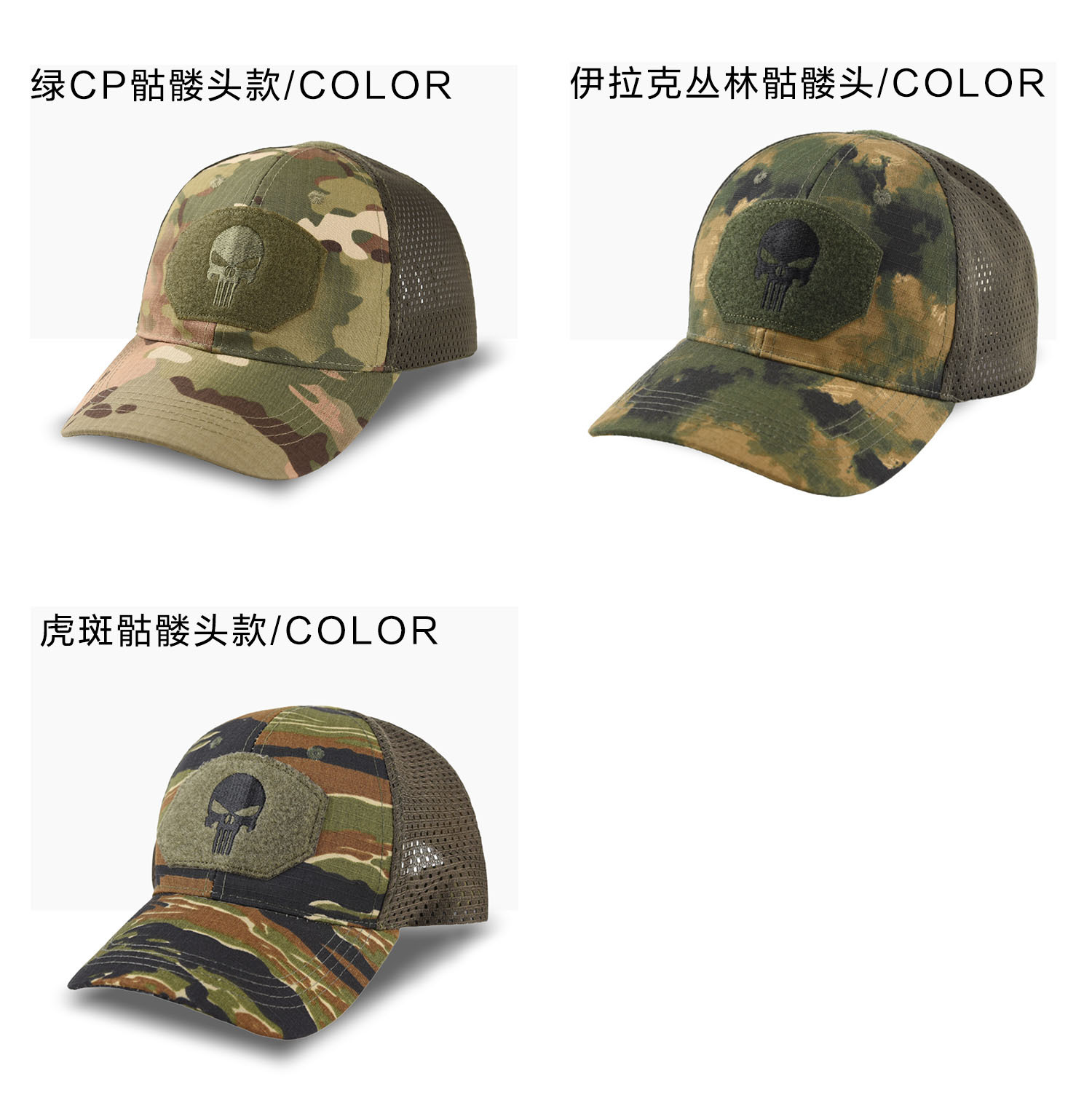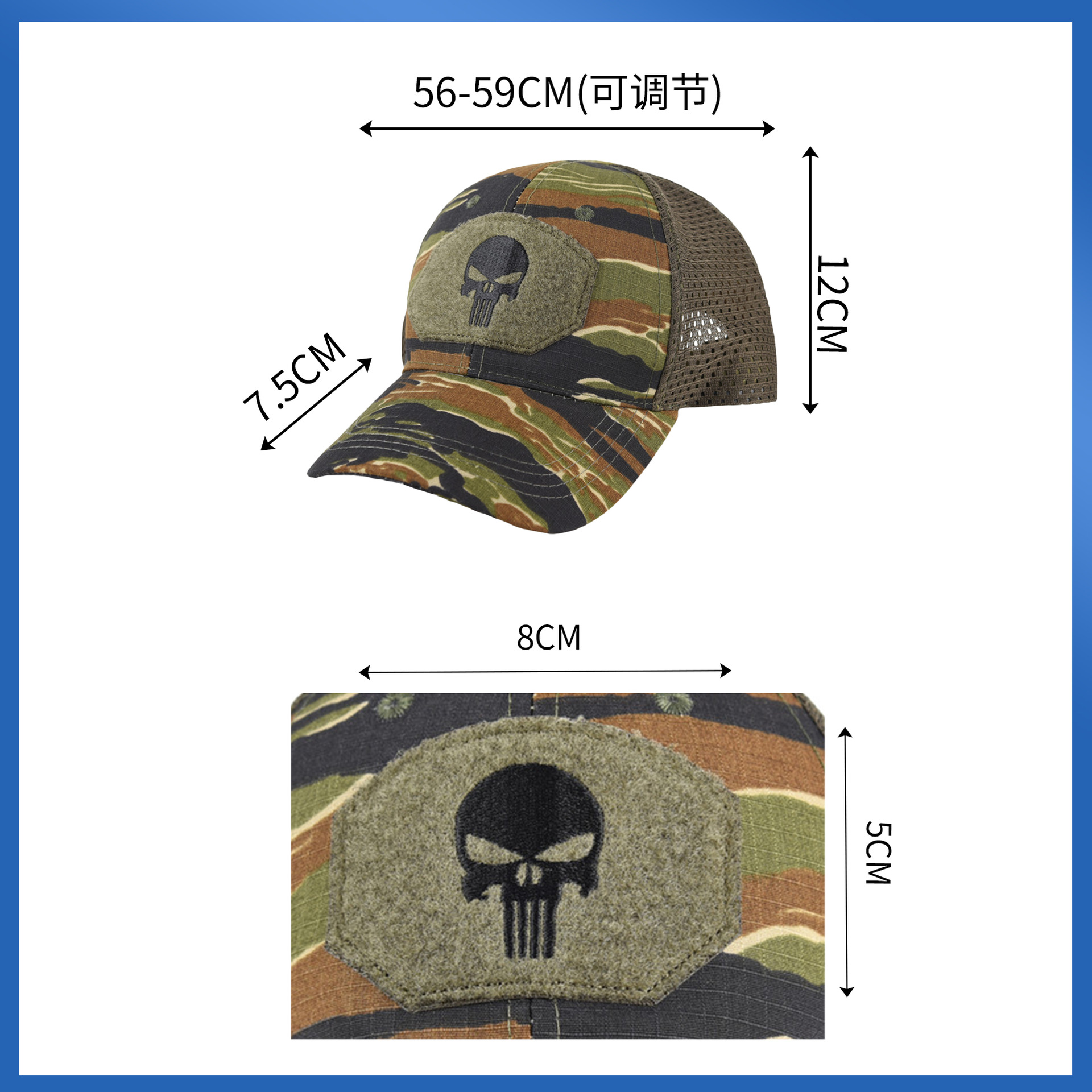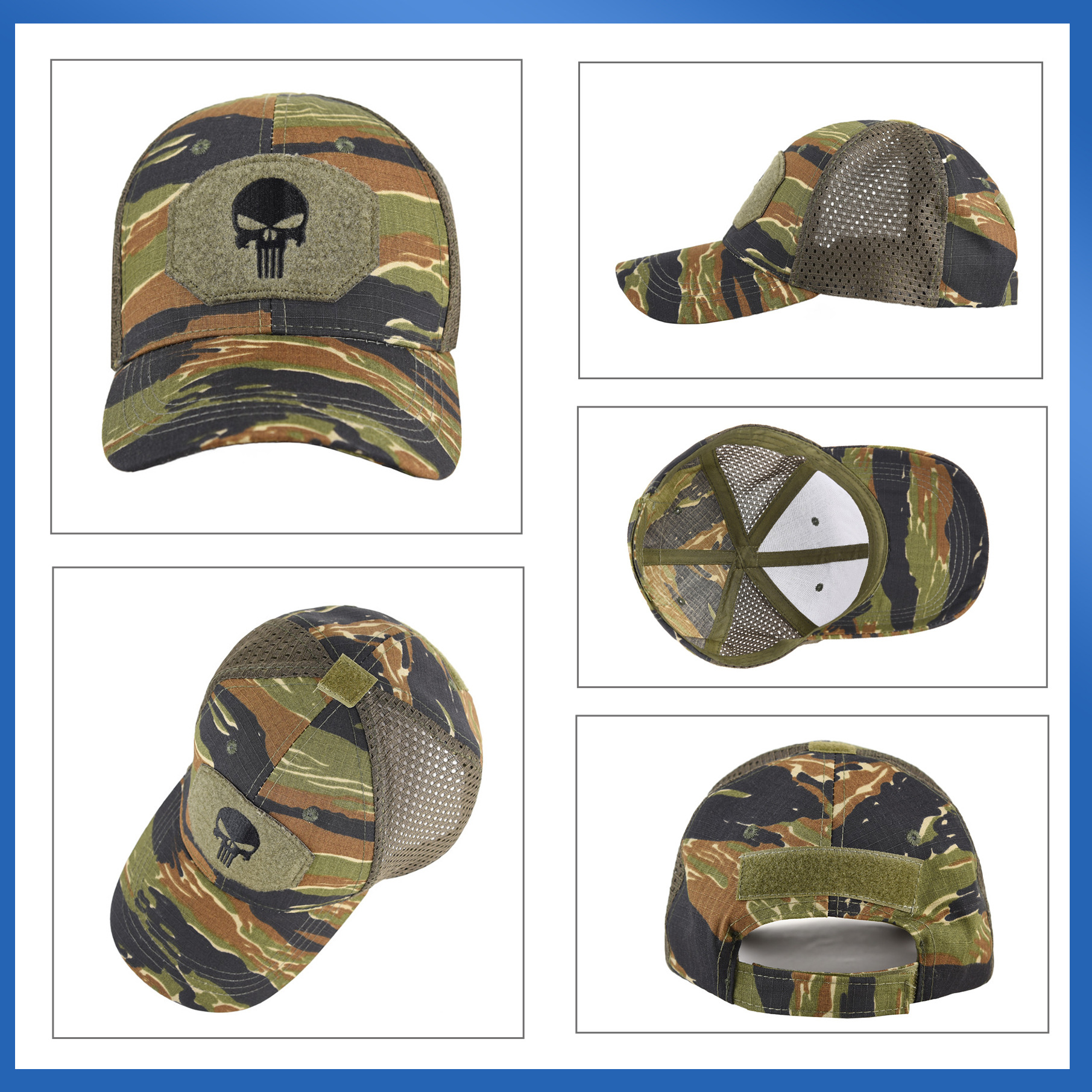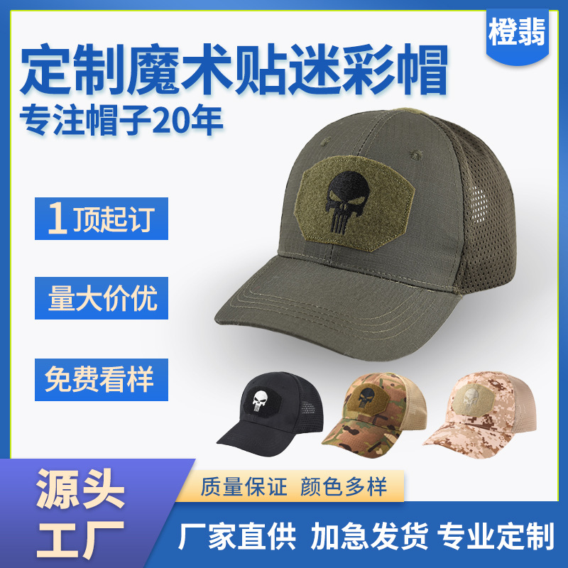 棒球帽网帽刺绣男惩罚者跨境女军训户外魔术贴夏防晒遮阳迷彩帽子