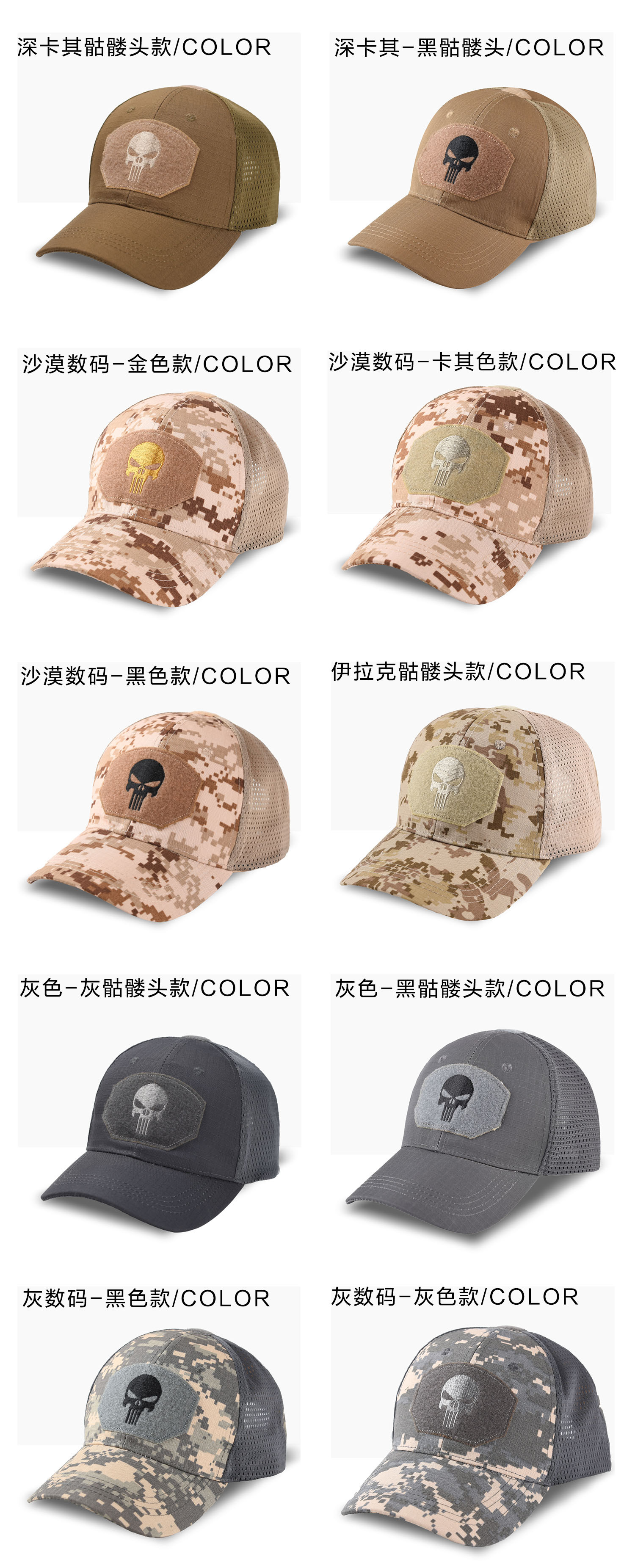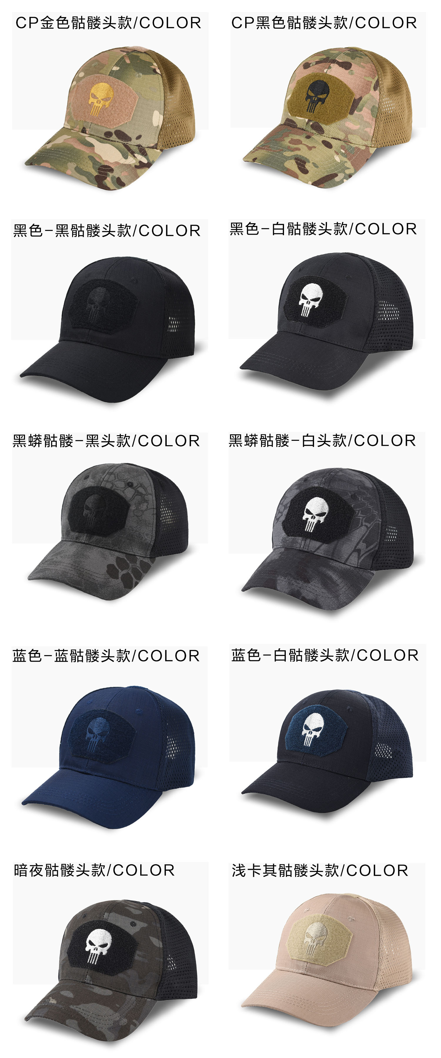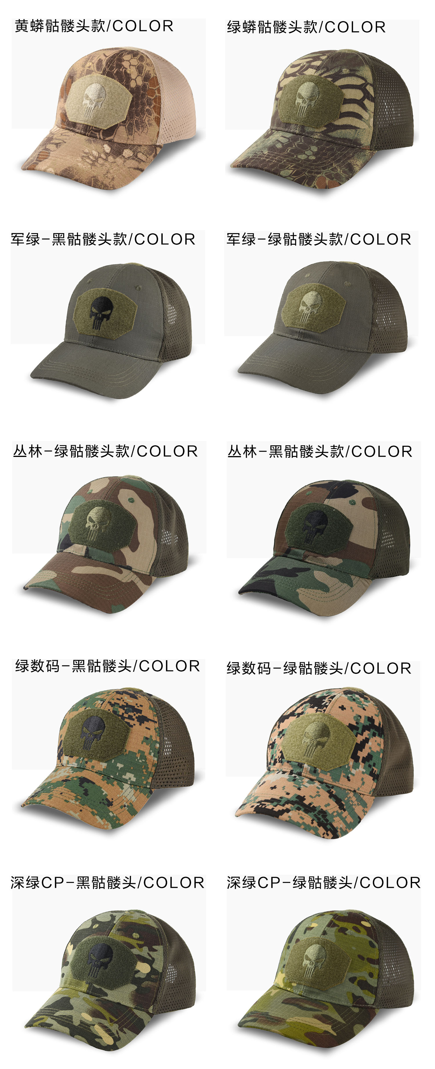 棒球帽网帽刺绣男惩罚者跨境女军训户外魔术贴夏防晒遮阳迷彩帽子