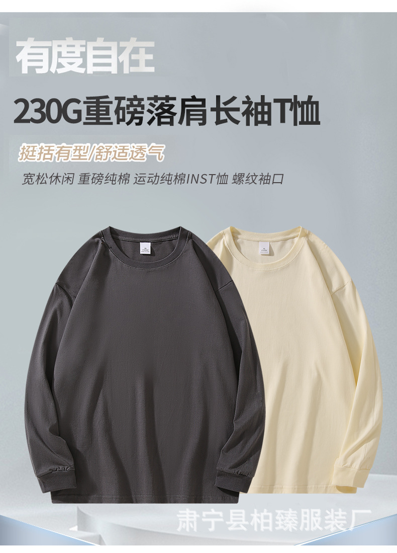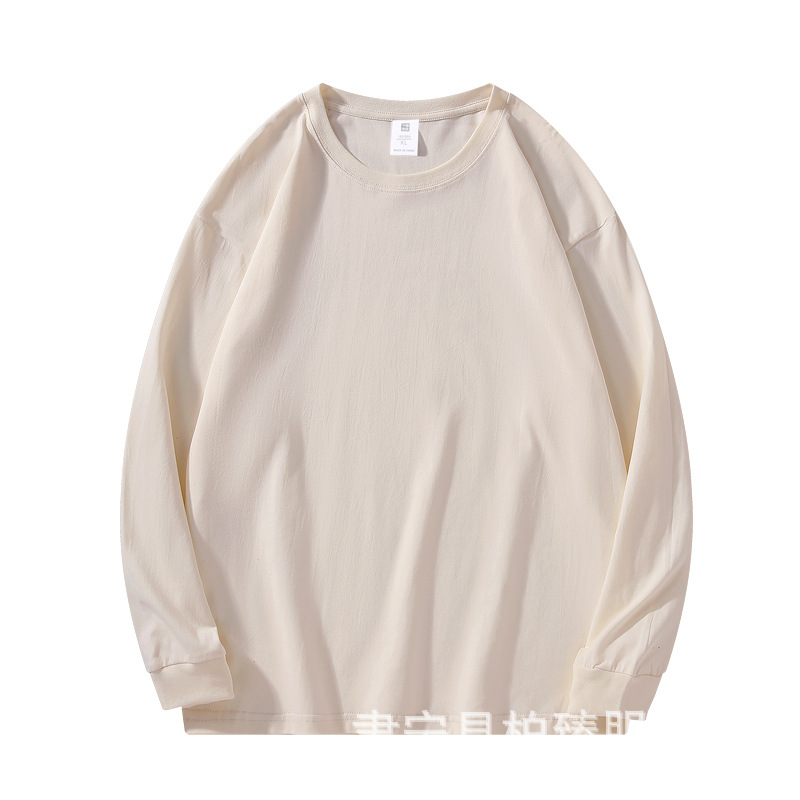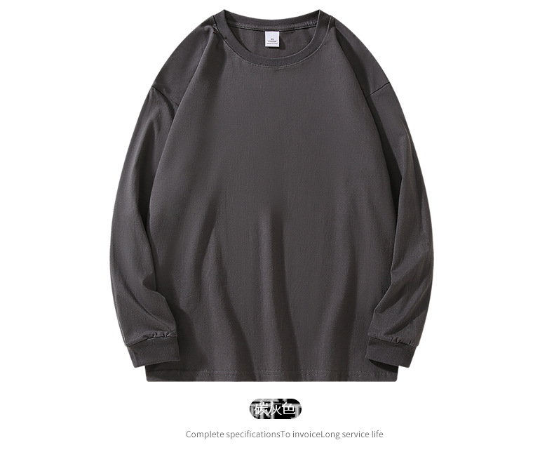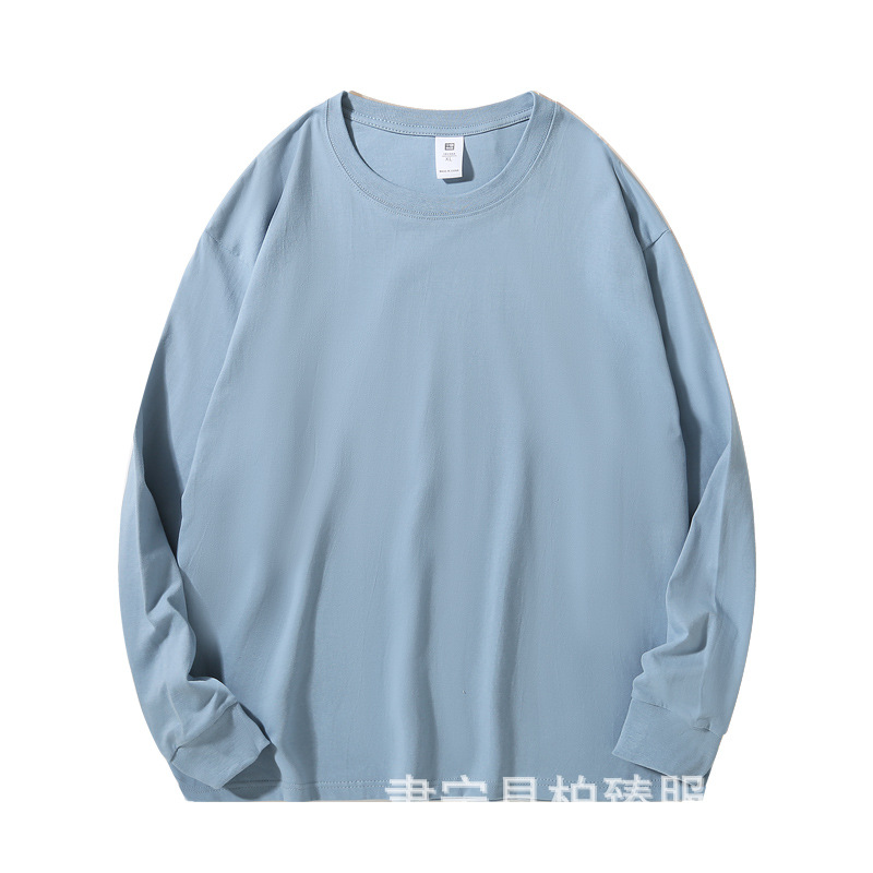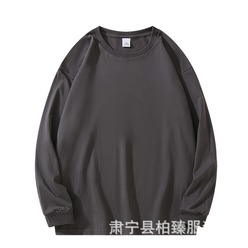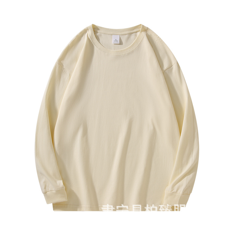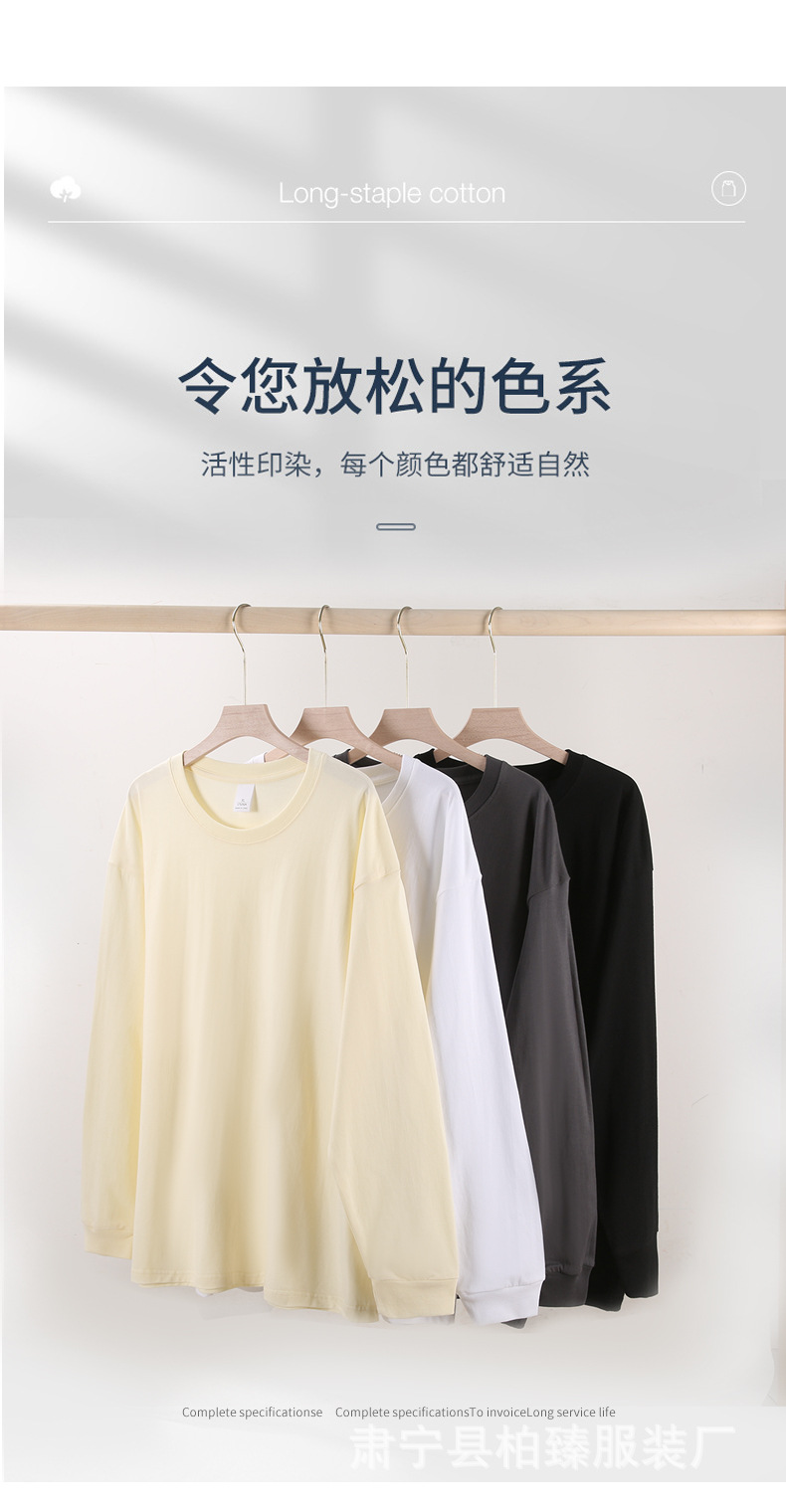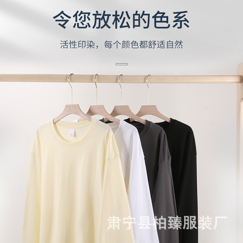230重磅纯棉螺纹袖口落肩长袖t恤男女纯色圆领秋衣宽松打底衫
