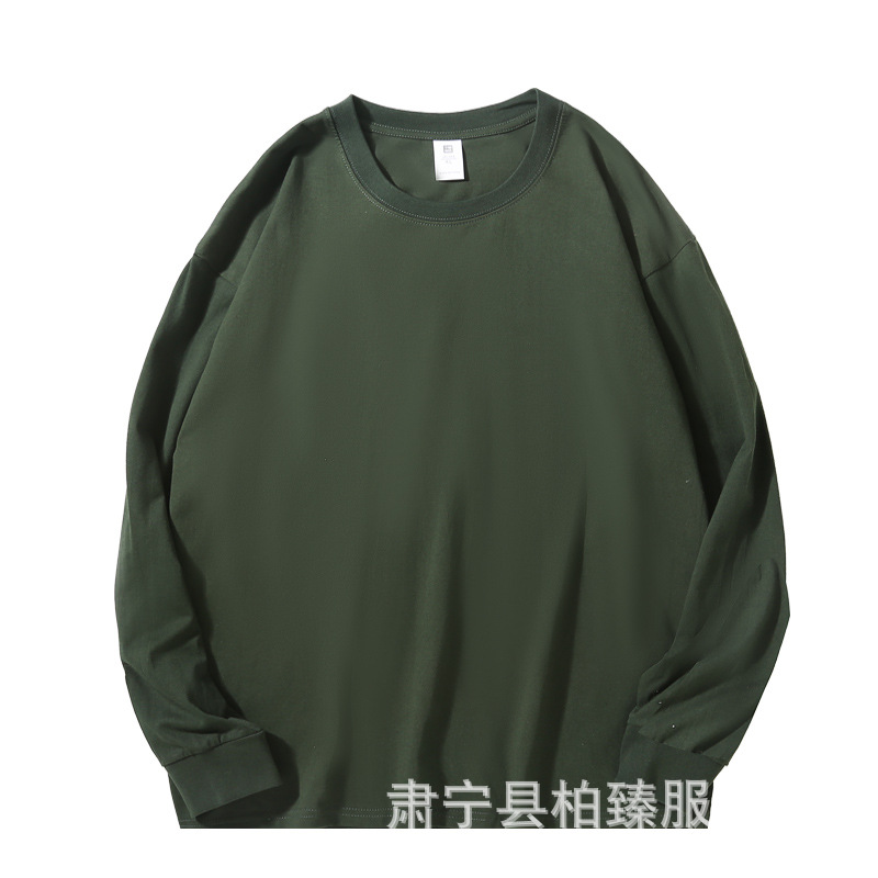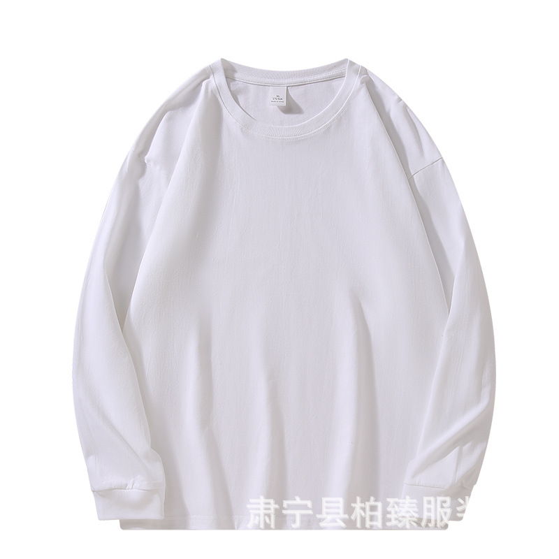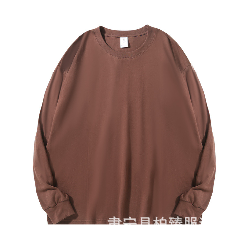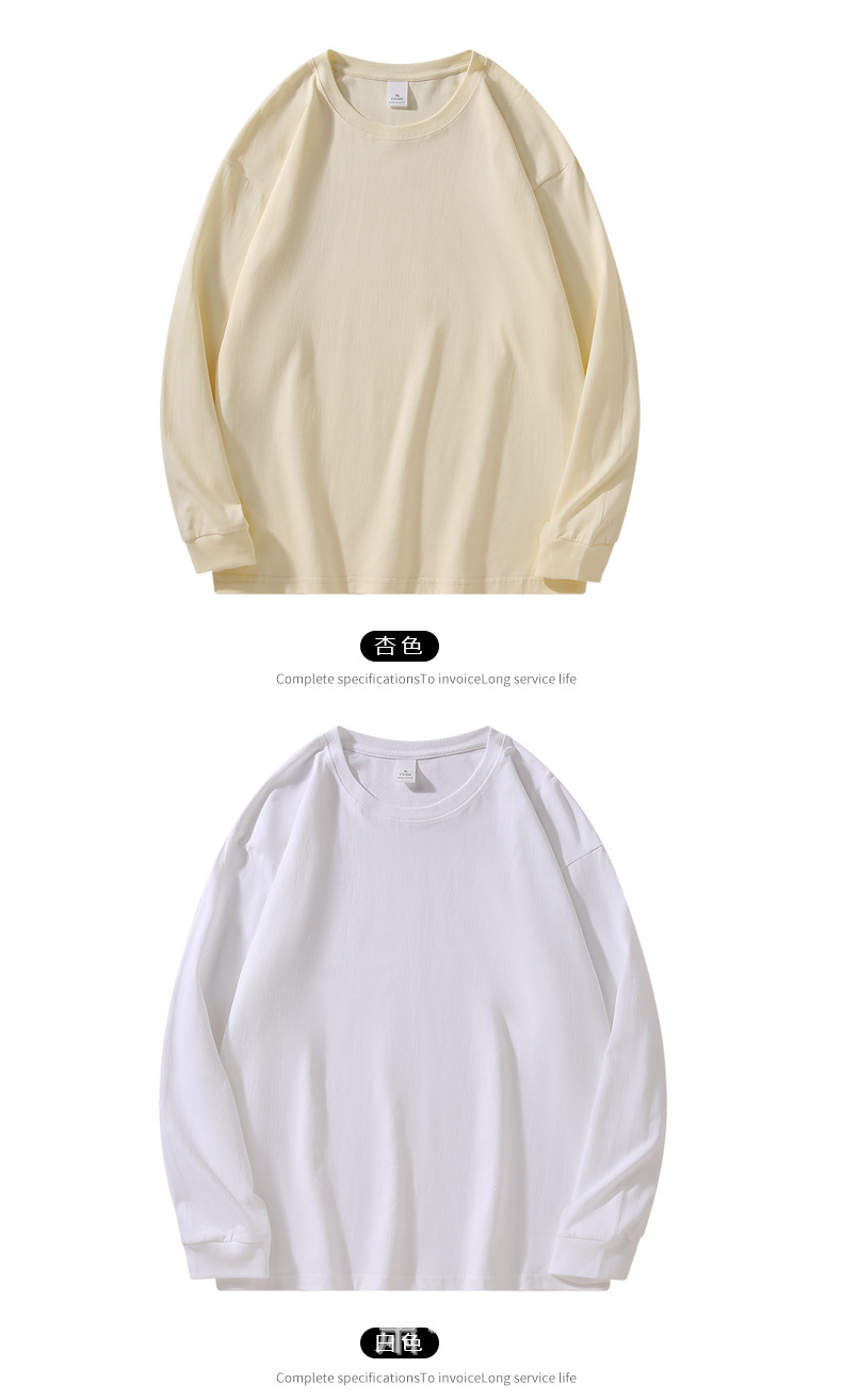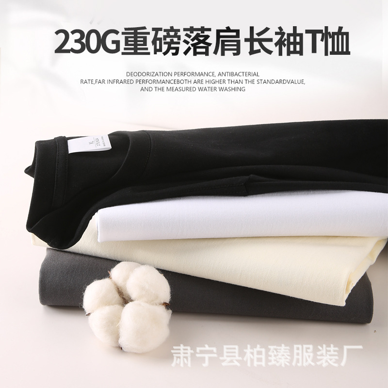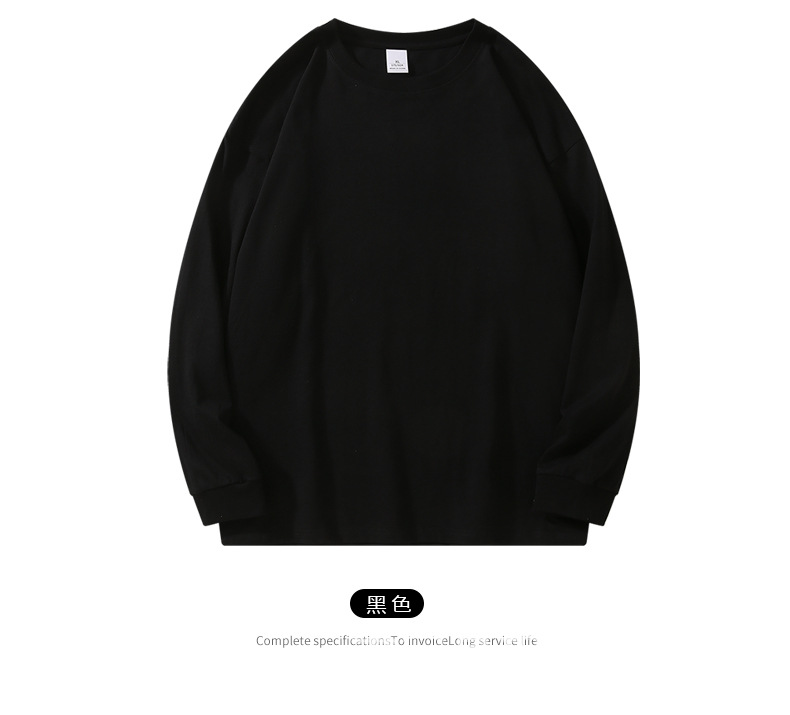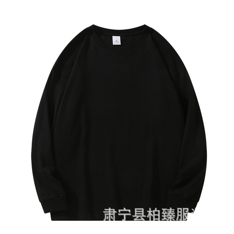 230重磅纯棉螺纹袖口落肩长袖t恤男女纯色圆领秋衣宽松打底衫