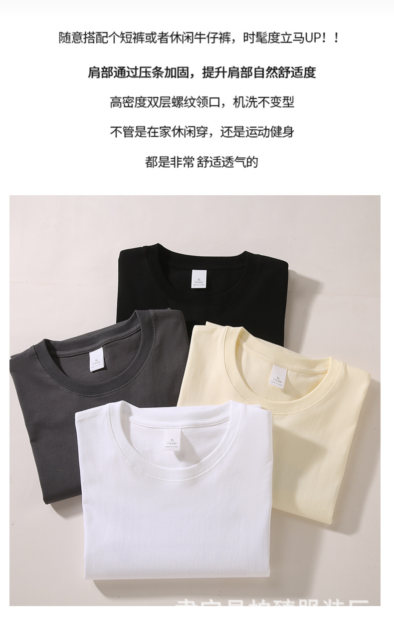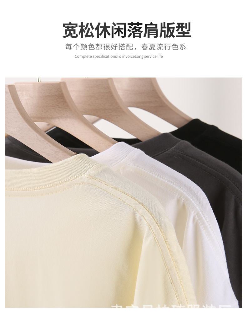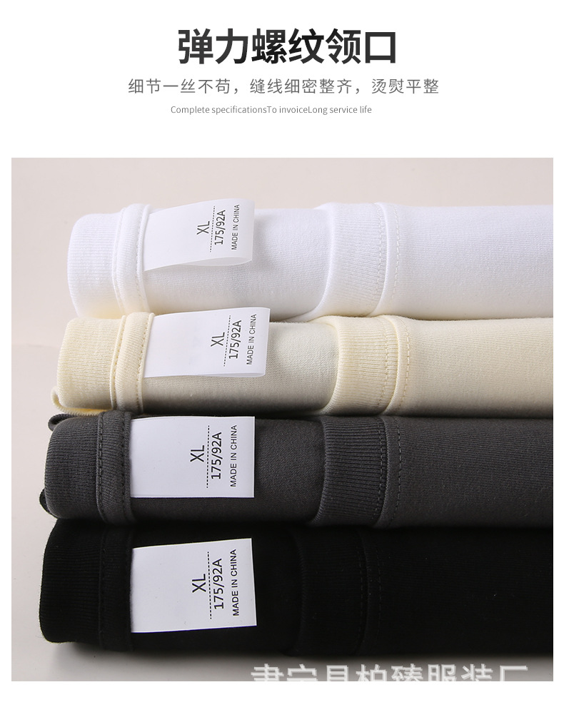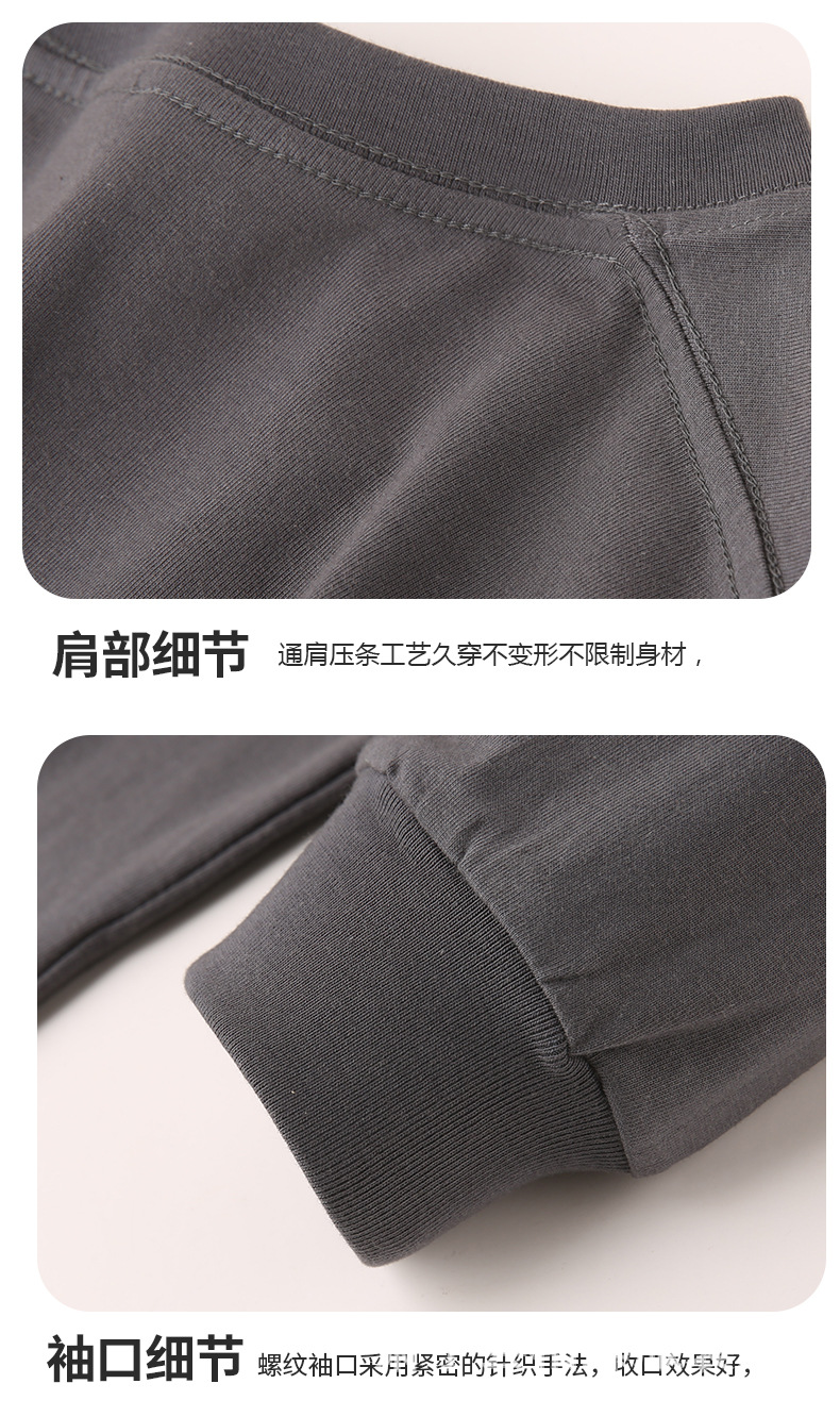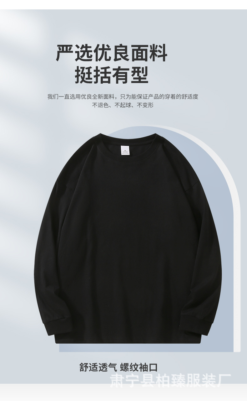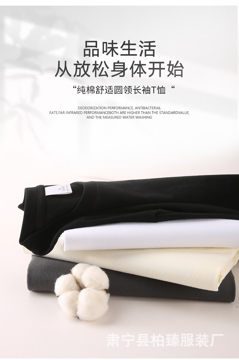 230重磅纯棉螺纹袖口落肩长袖t恤男女纯色圆领秋衣宽松打底衫