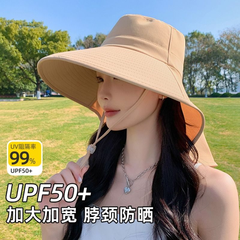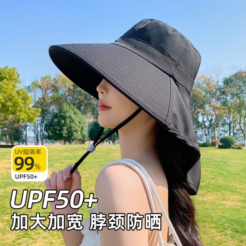 大帽檐防晒帽女2025新款夏季防紫外线太阳帽护脖颈渔夫帽遮阳帽子