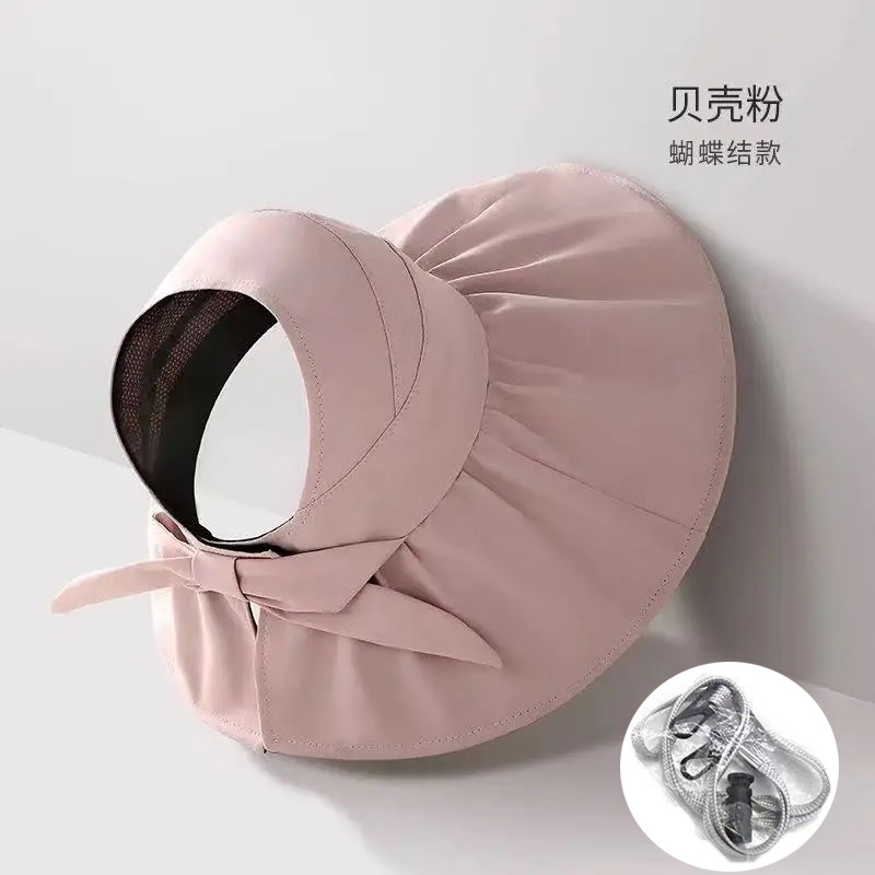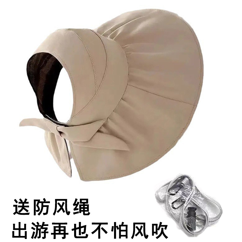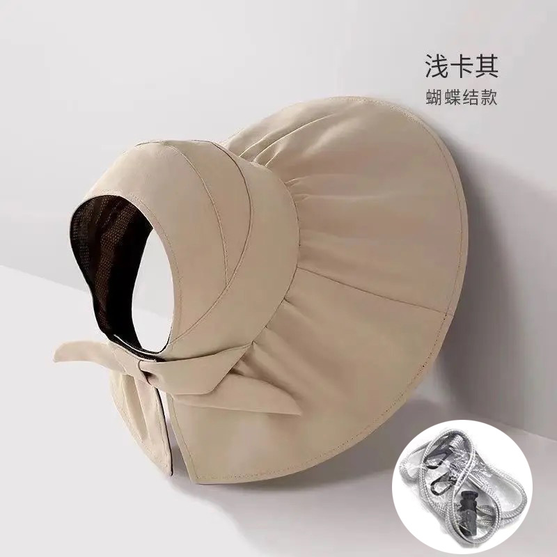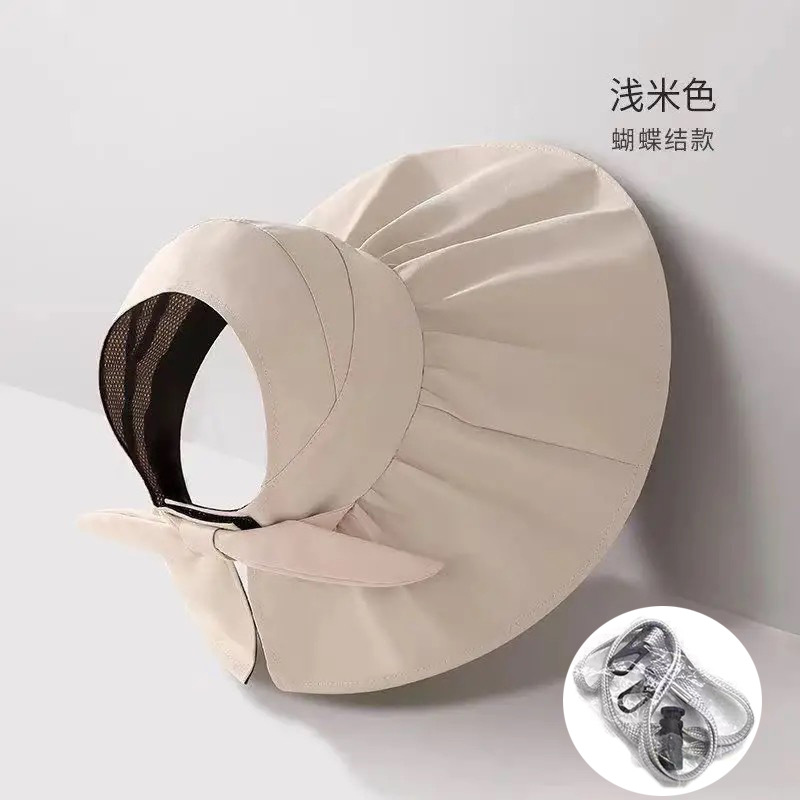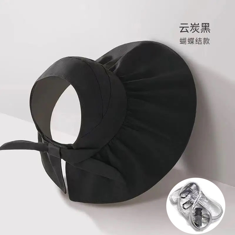 夏季新款黑胶空顶遮阳帽女防紫外线遮脸大帽檐渔夫蝴蝶结太阳