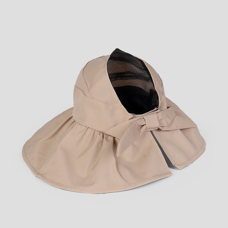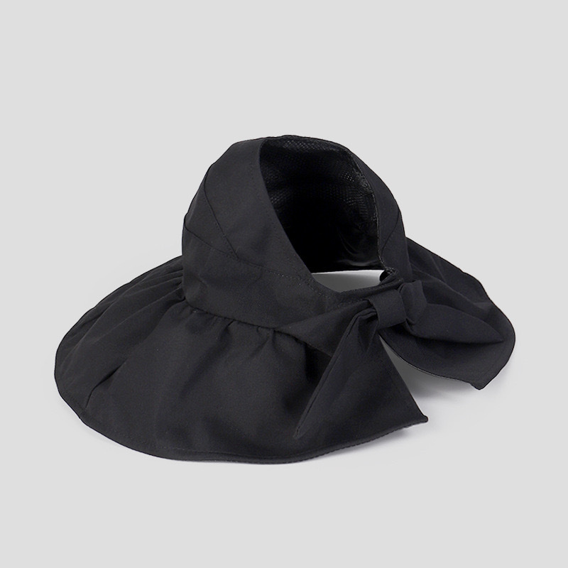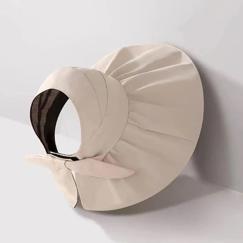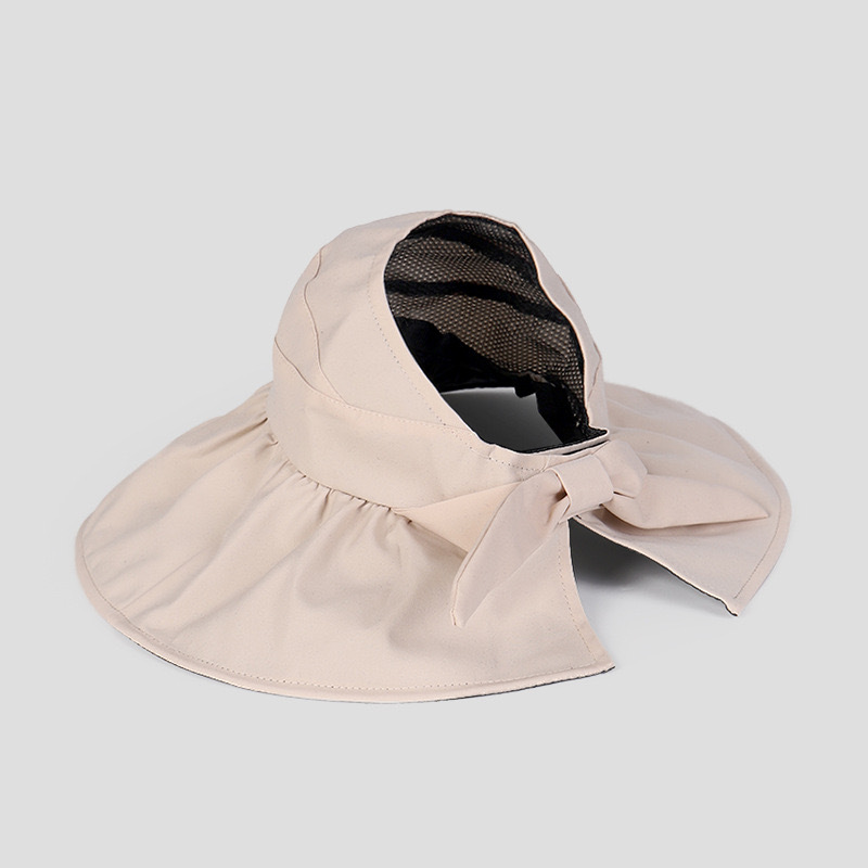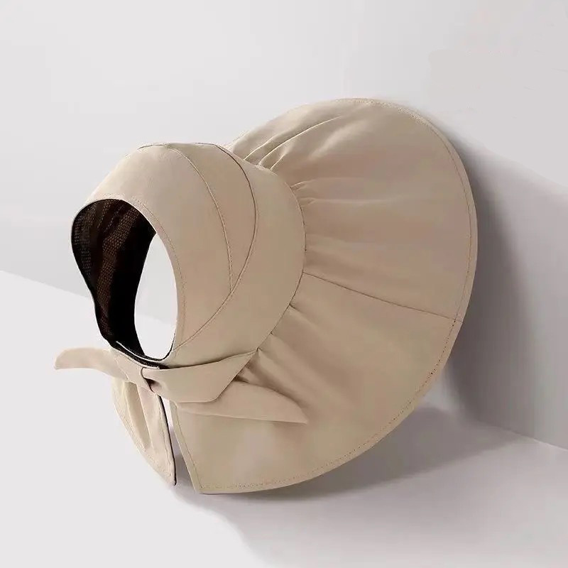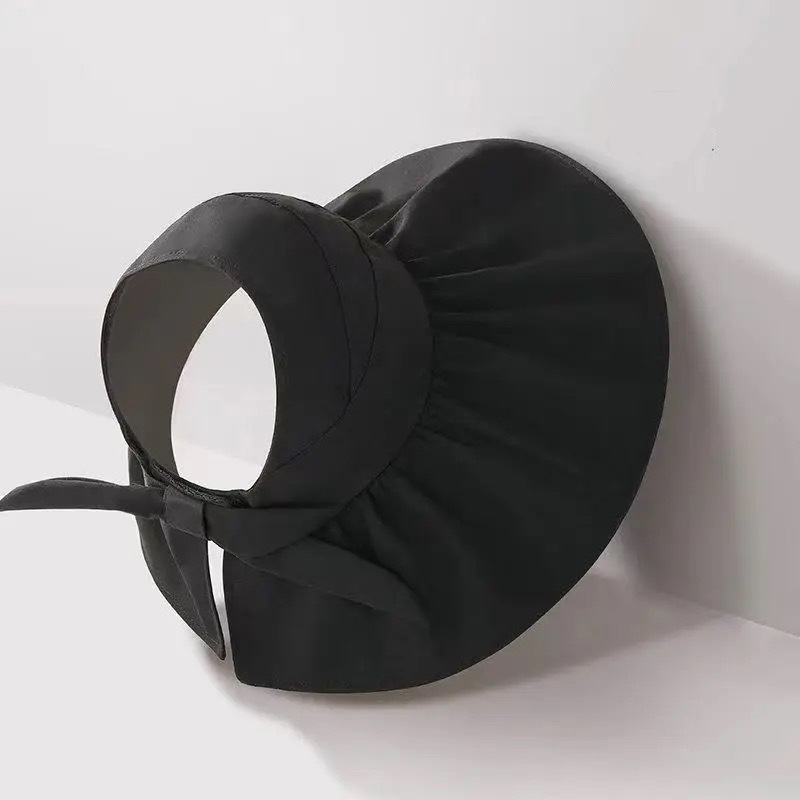 夏季新款黑胶空顶遮阳帽女防紫外线遮脸大帽檐渔夫蝴蝶结太阳