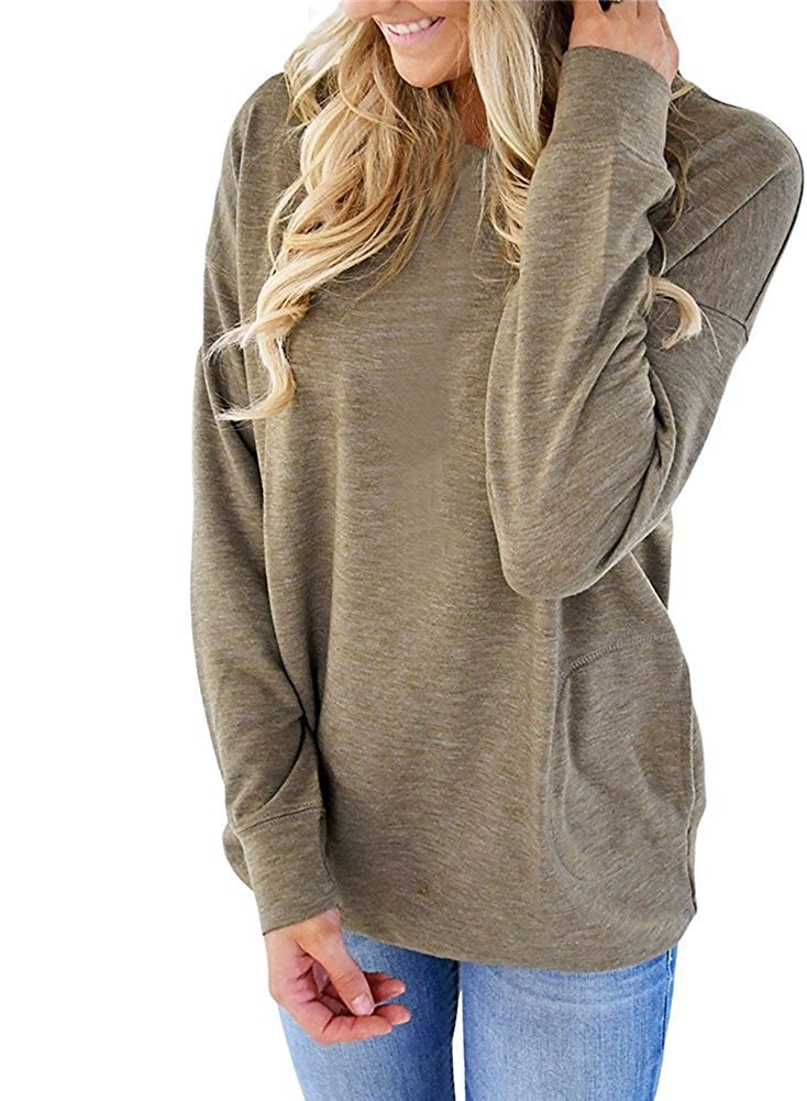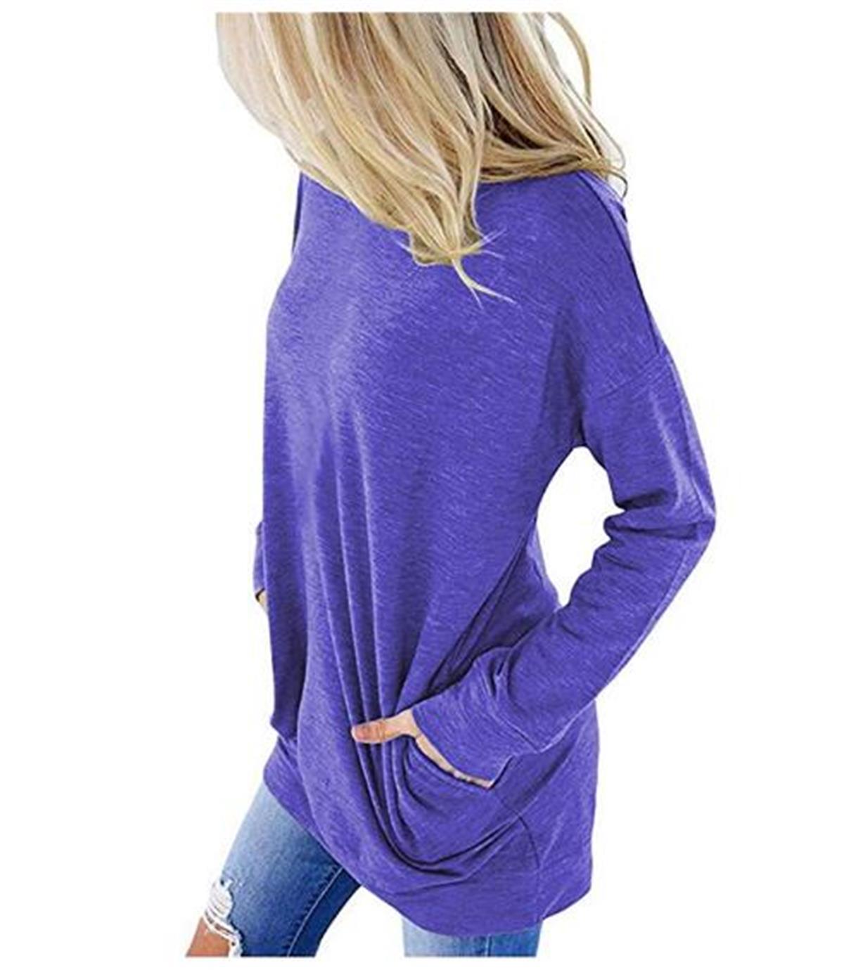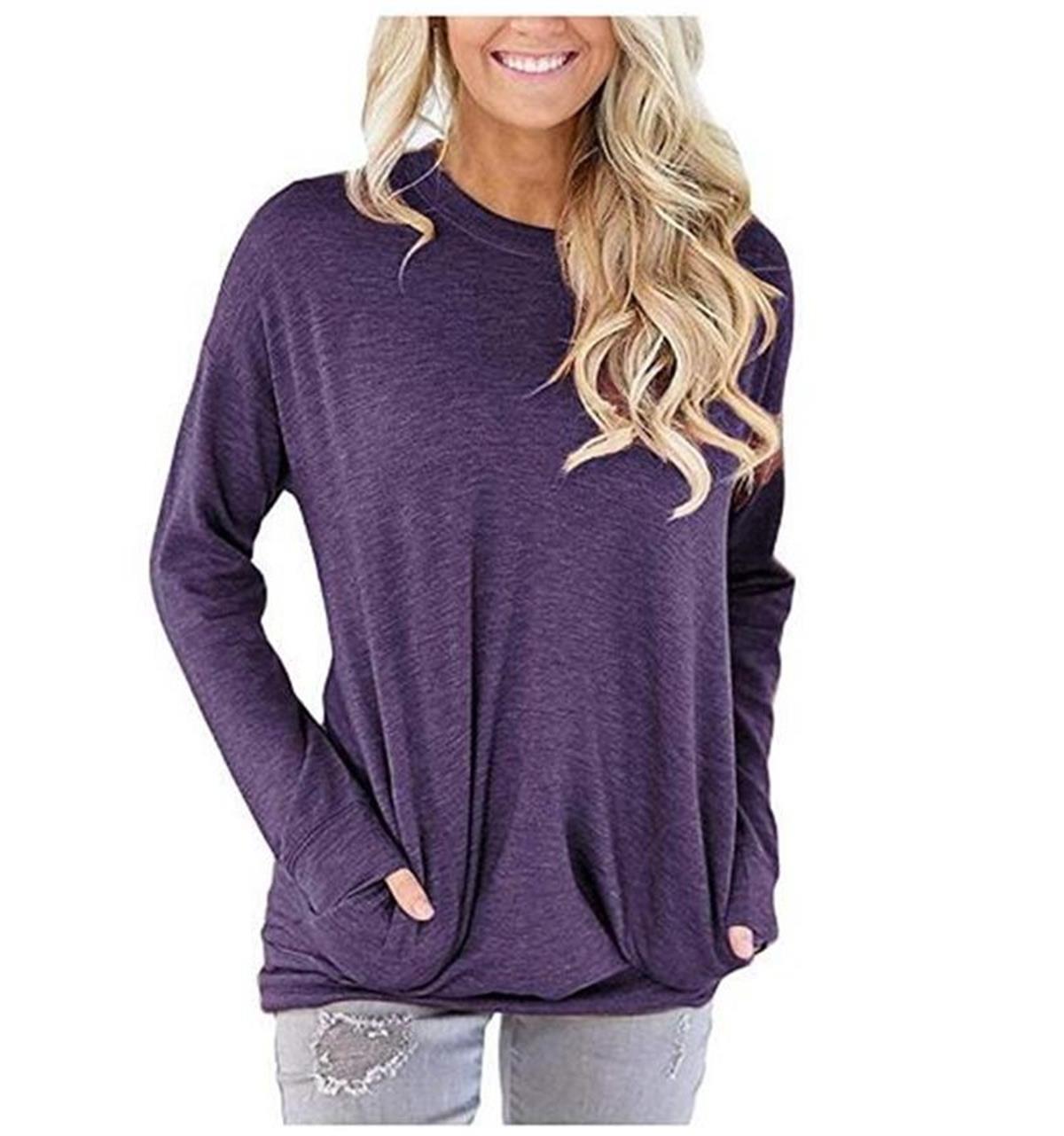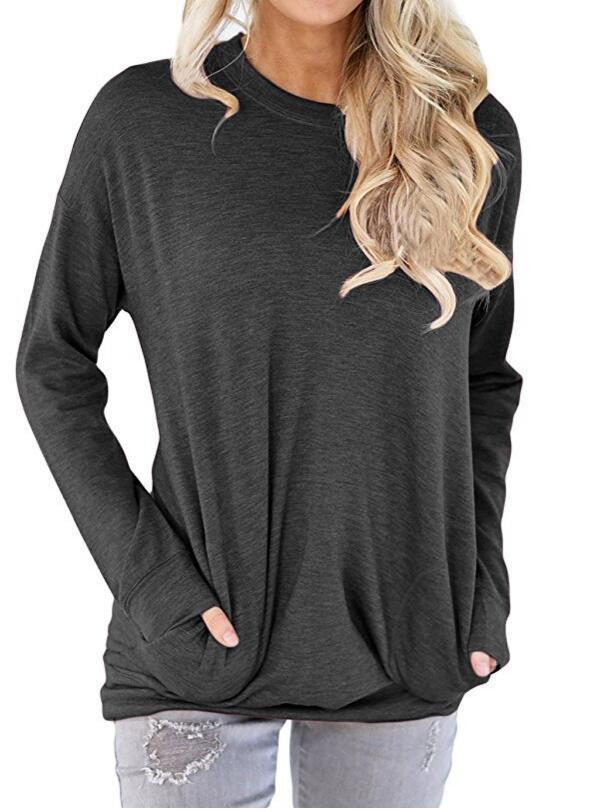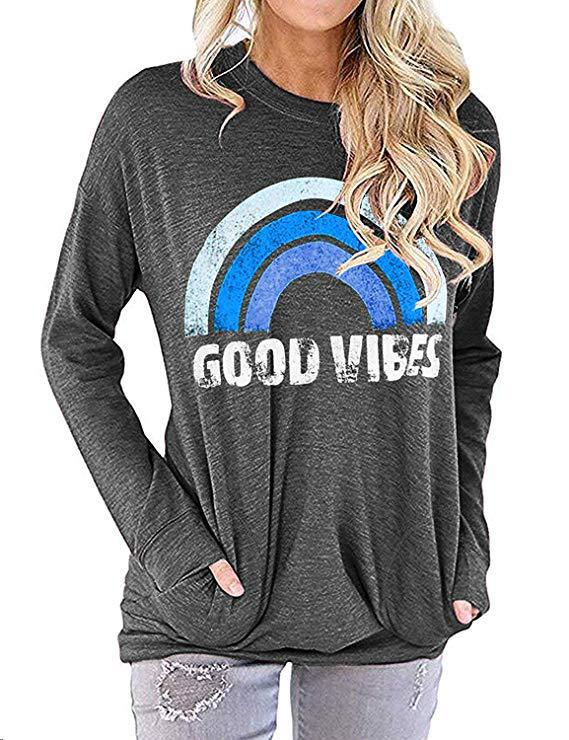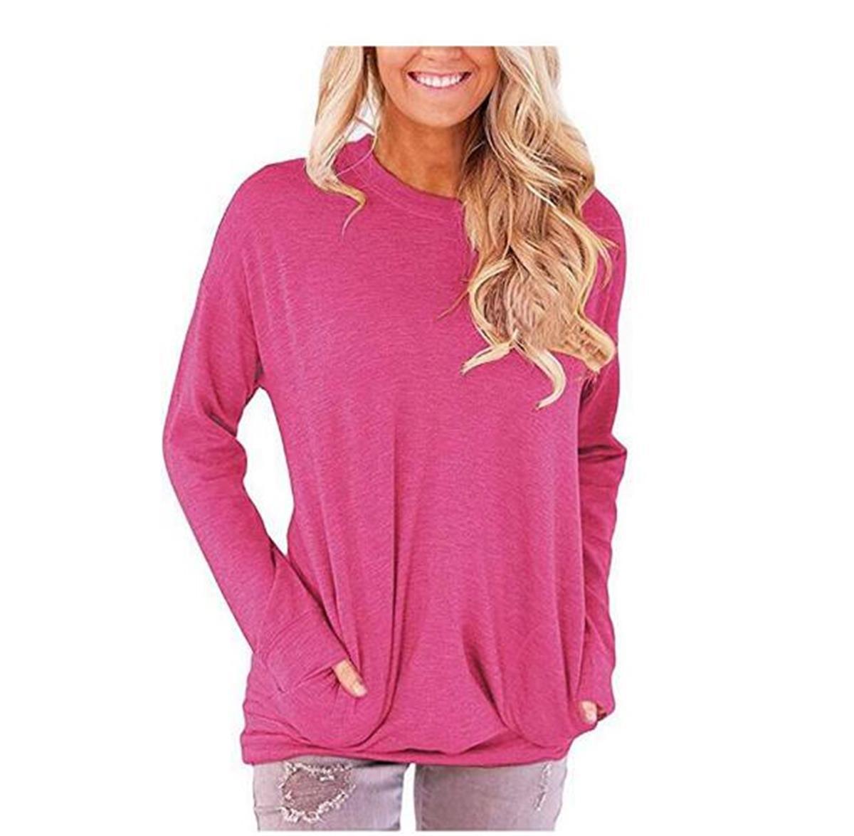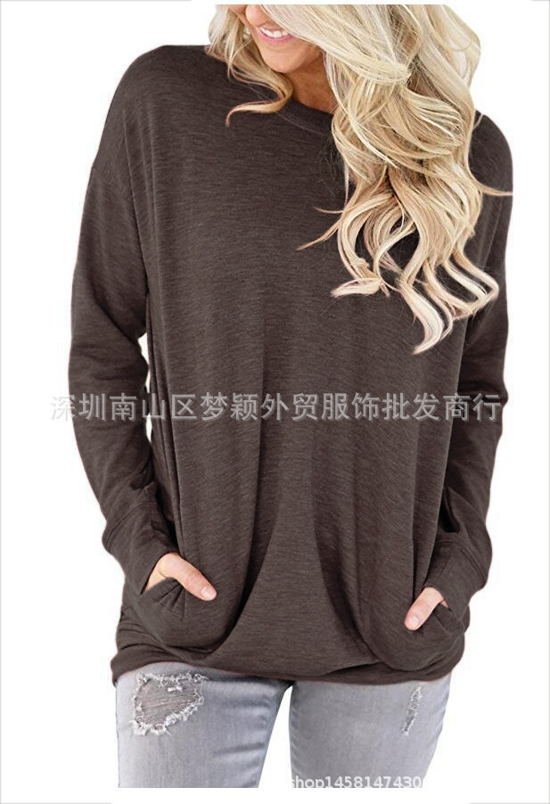 独立站跨境欧美外贸亚马逊纯色胶印彩虹圆领口袋大码胖MM长袖T恤