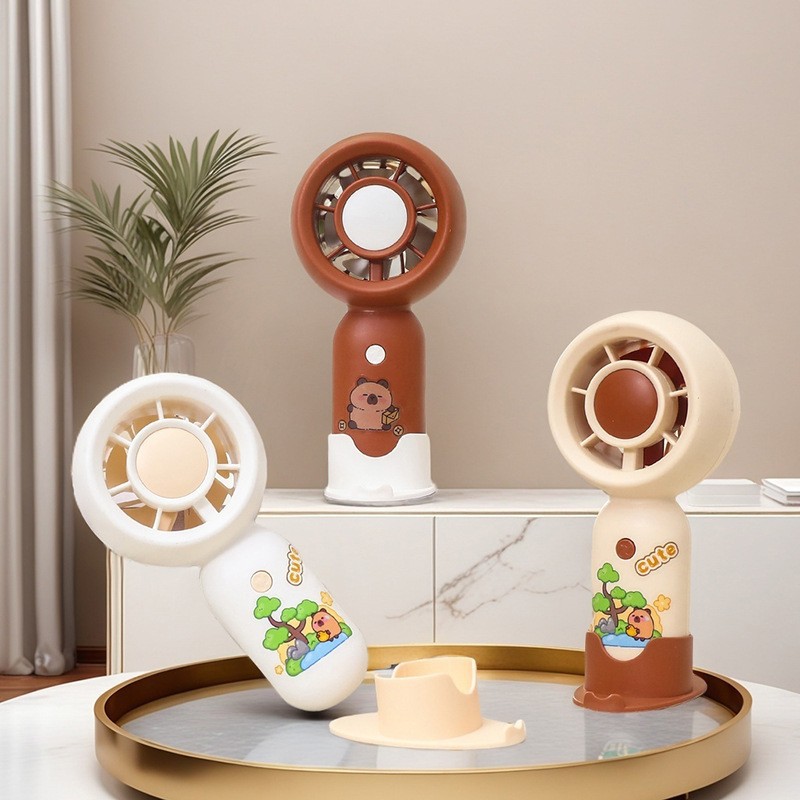 3档小清新糖果色学生手持迷你电风扇带底座手机支架办公室小风扇