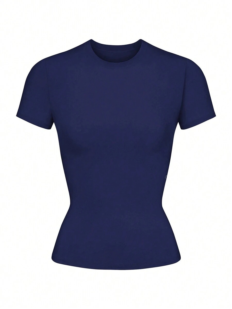 2025亚马逊temu希音欧美爆款纯色圆领基础短袖短款T恤跨境外贸女