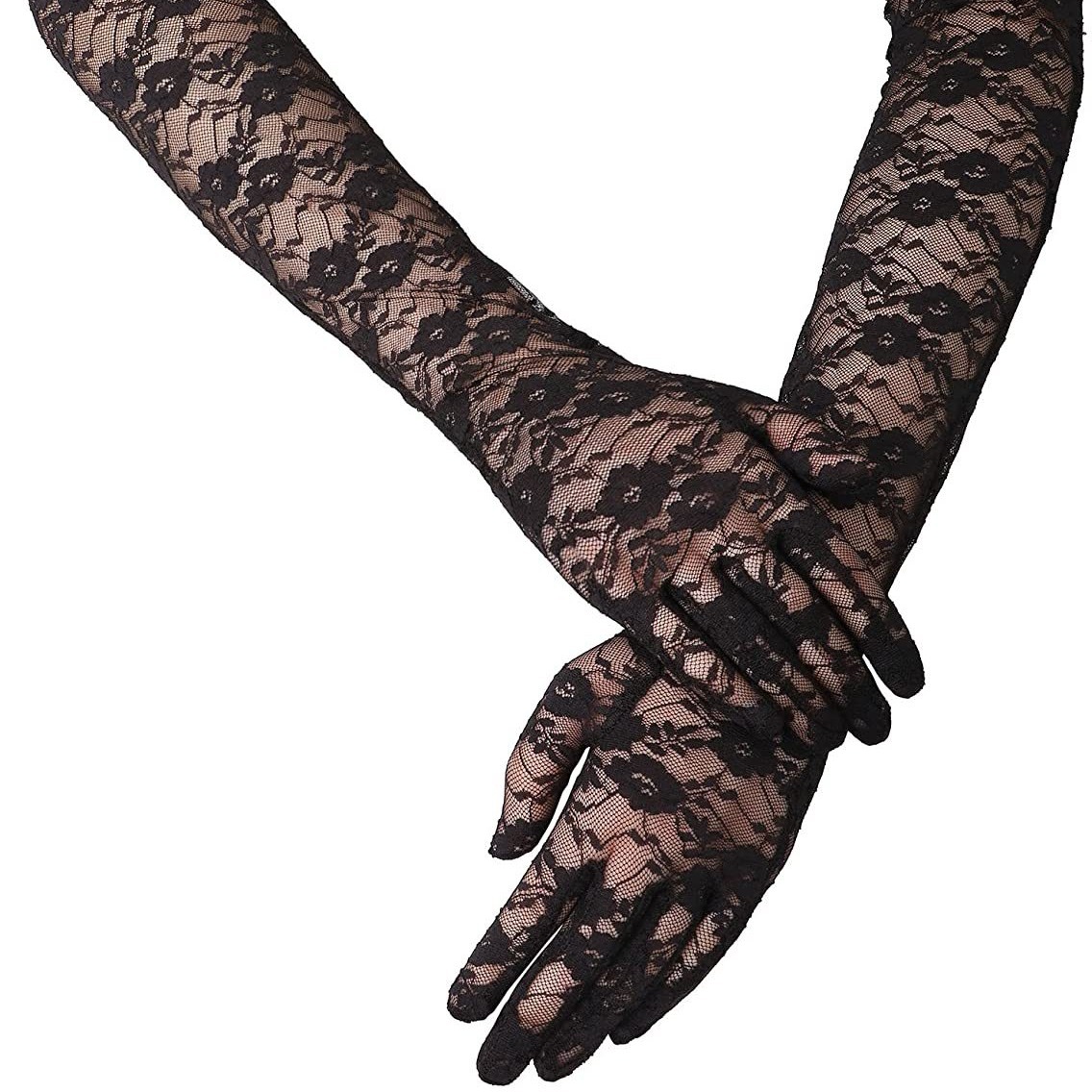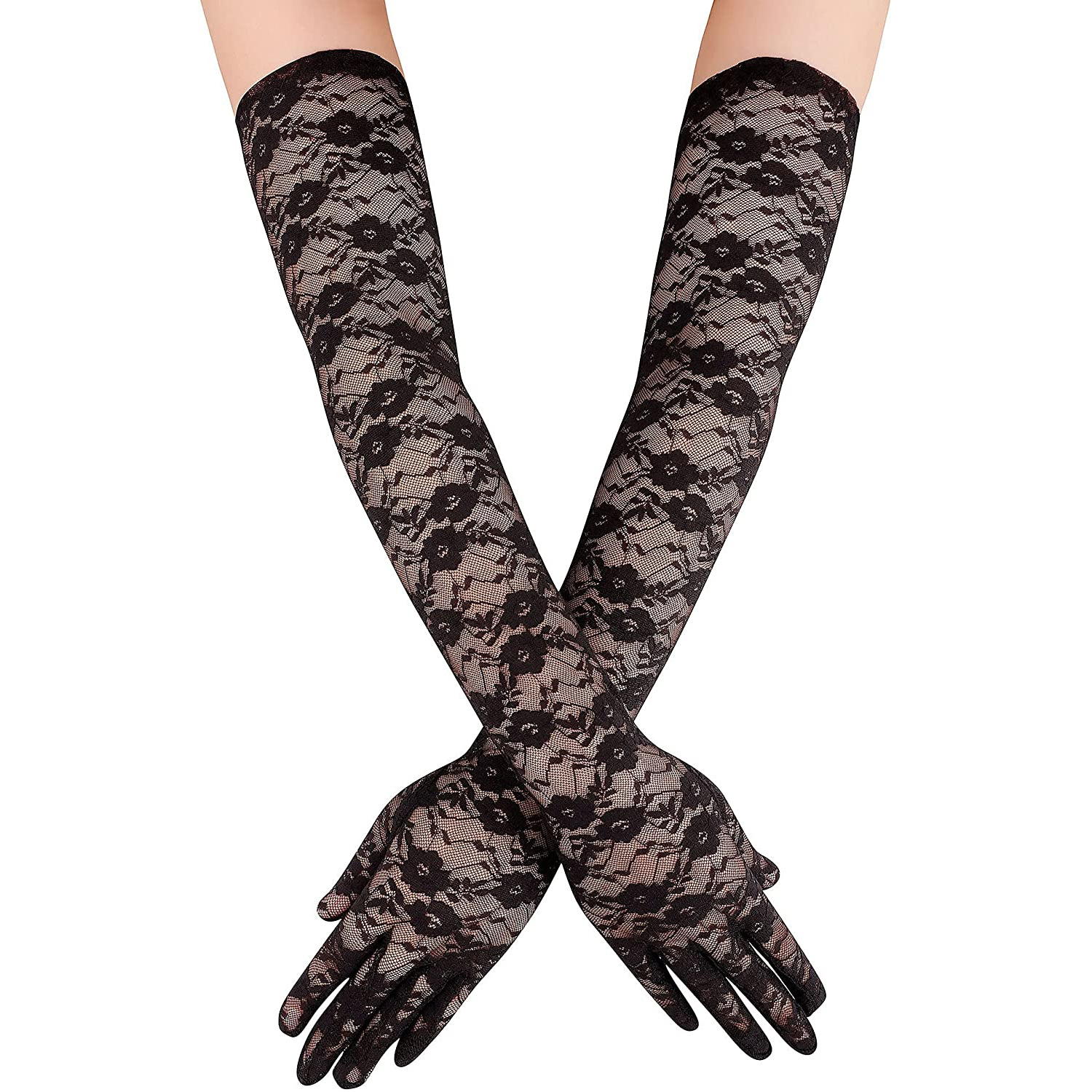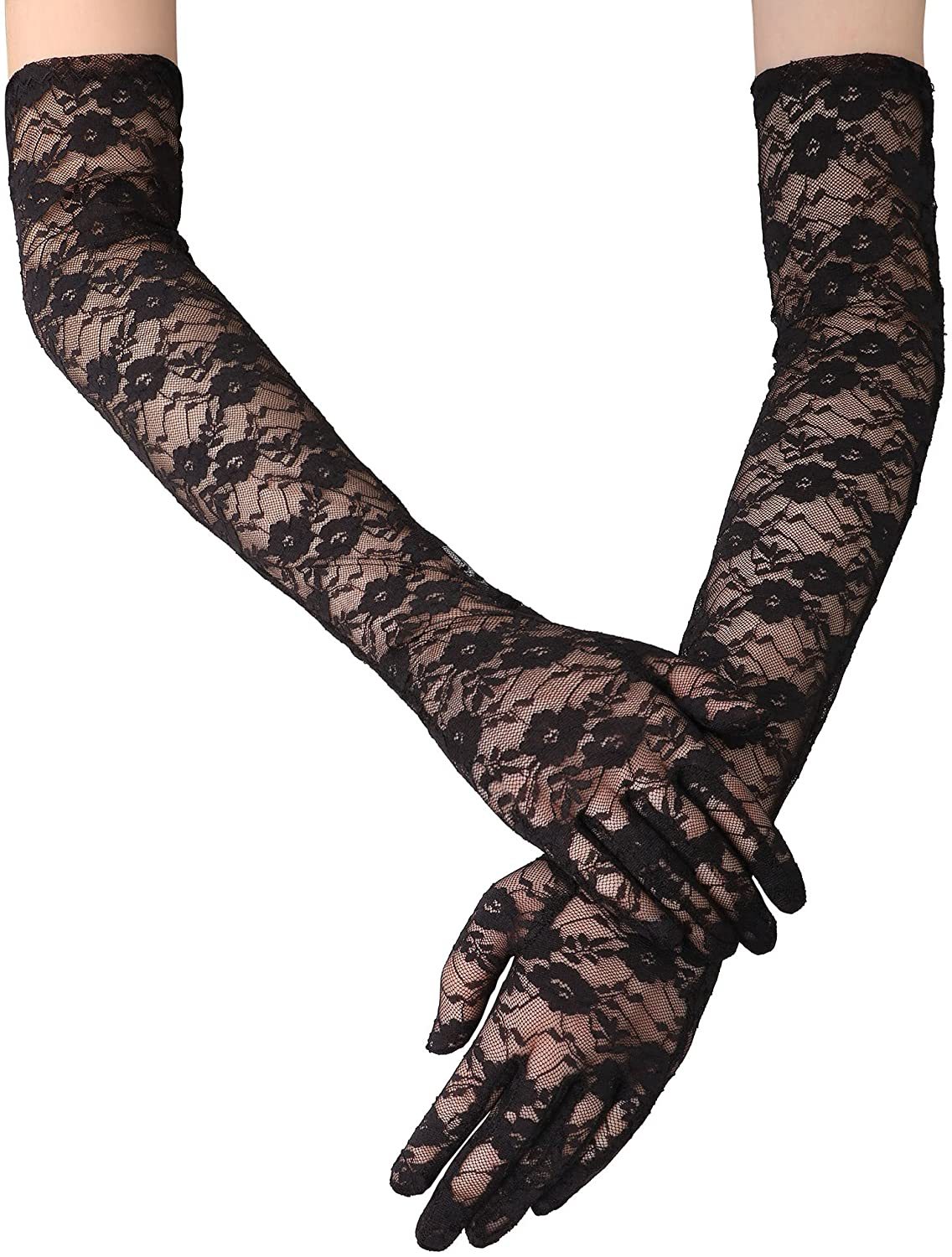 55CM超长款蕾丝手套 女士薄手套夏季防晒 黑色白色蕾丝小花朵手套