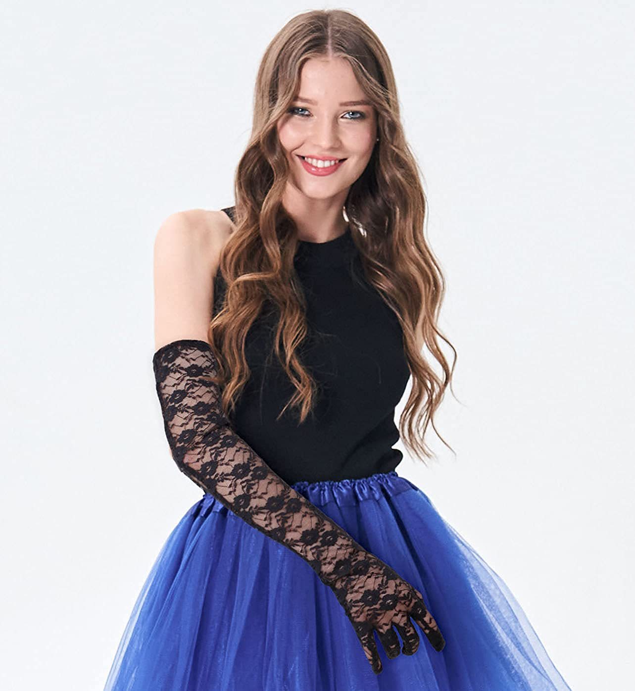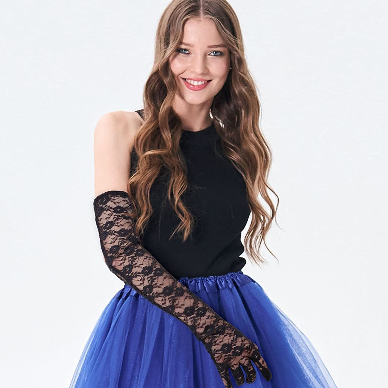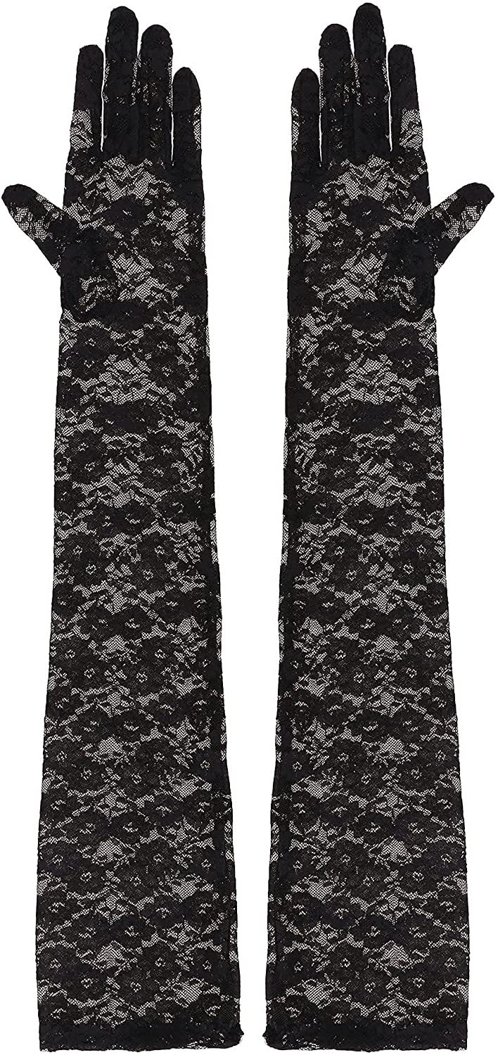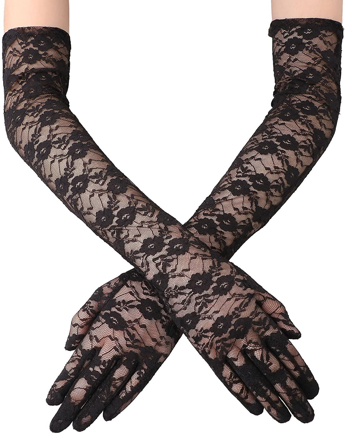 55CM超长款蕾丝手套 女士薄手套夏季防晒 黑色白色蕾丝小花朵手套