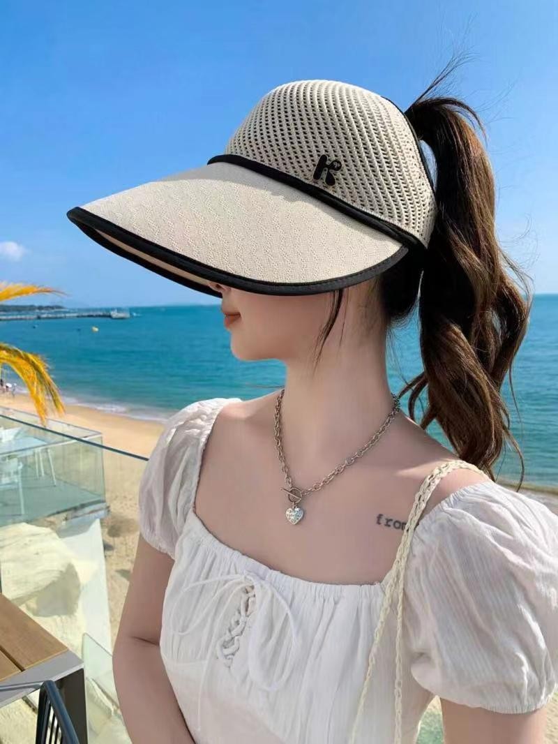 夏季防晒太阳帽空顶遮阳帽针织户外拼接防晒帽便携课卷大檐遮阳帽
