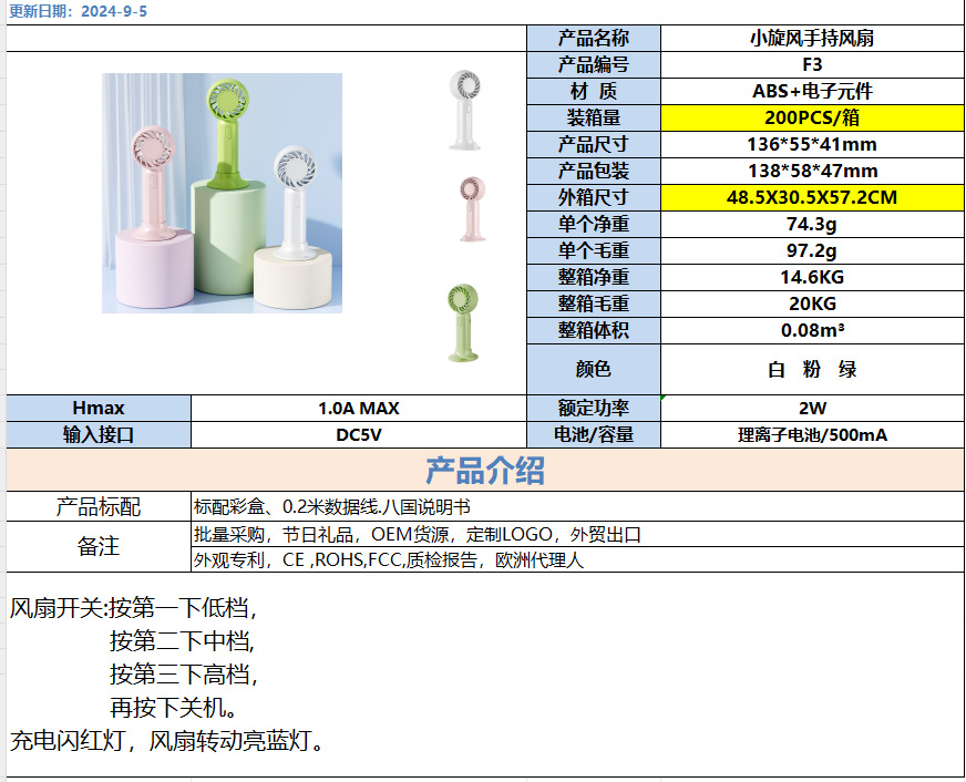 新款桌面小型手持电扇 便携式户外充电款宿舍静音迷你手持小风扇