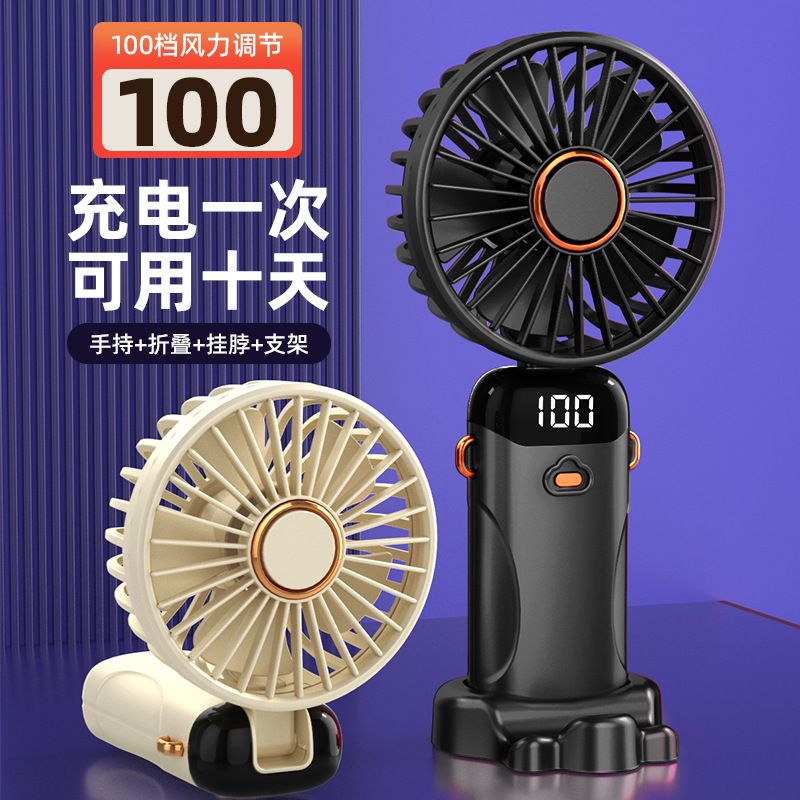 卡通手持风扇学生迷你便携折叠充电usb风扇无刷电机挂脖风扇跨境
