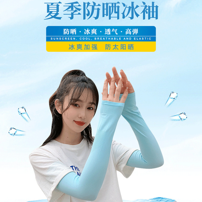 外贸跨境英文包装冰丝袖套防晒冰袖男女款夏季防紫外线清凉冰袖