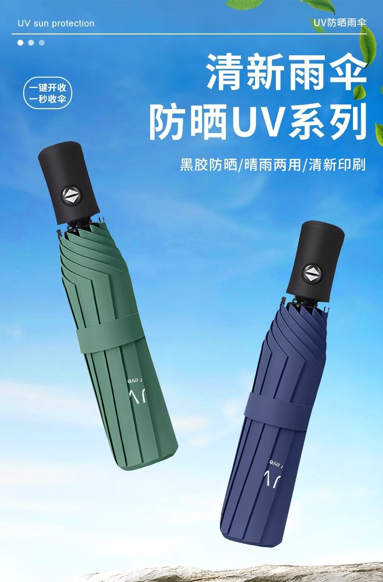 新款UV自动雨伞晴雨两用遮阳伞防晒防紫外线女加厚防风晴雨伞批发