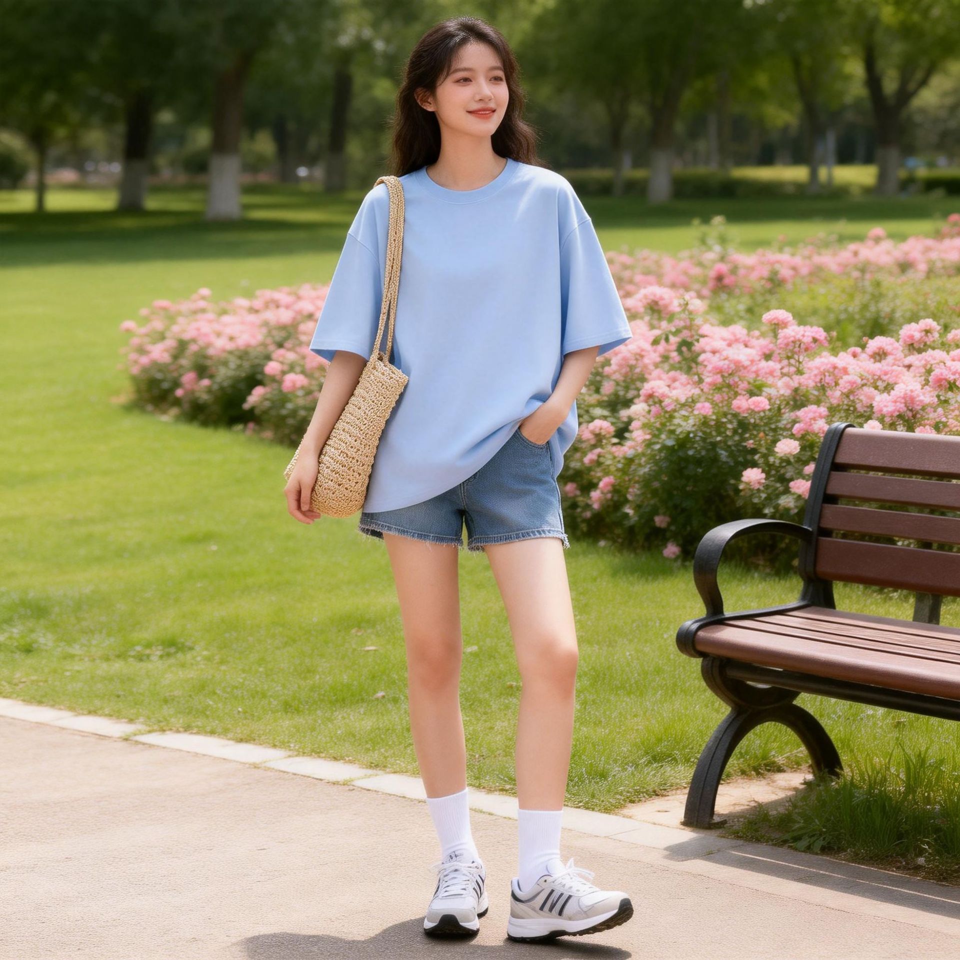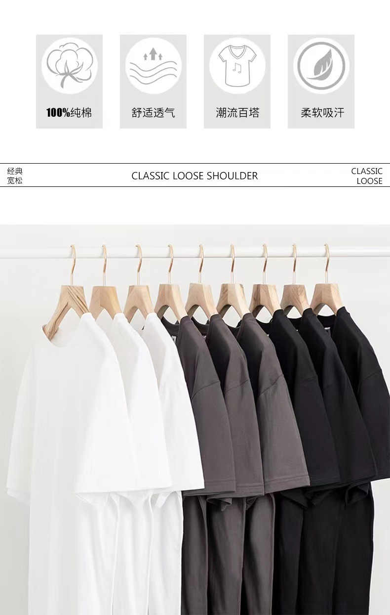 定制短袖t恤男情侣款服装纯色圆领宽松女款上衣可印logo外贸批发