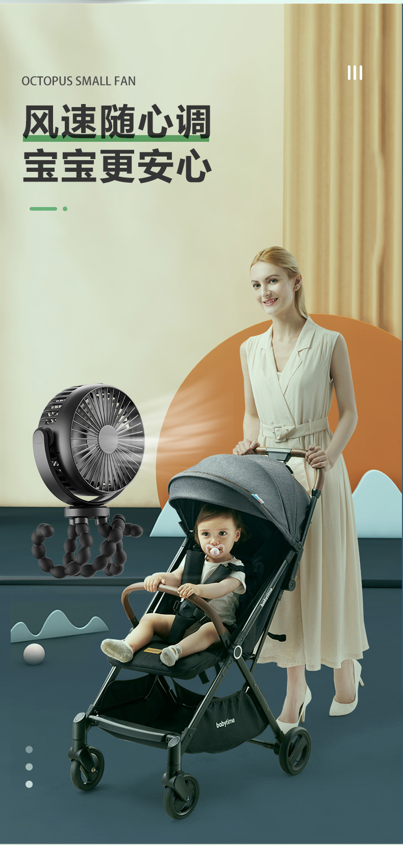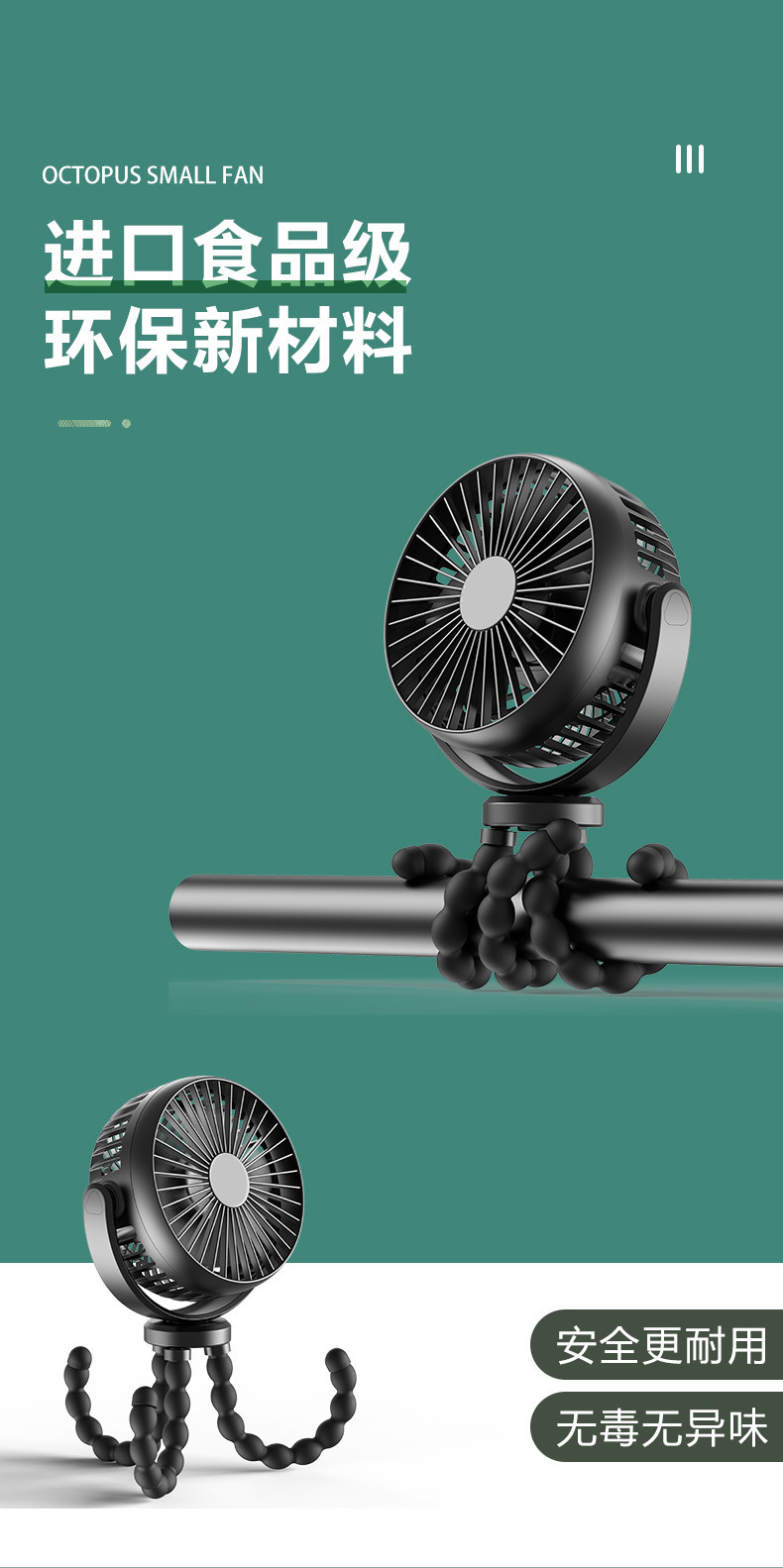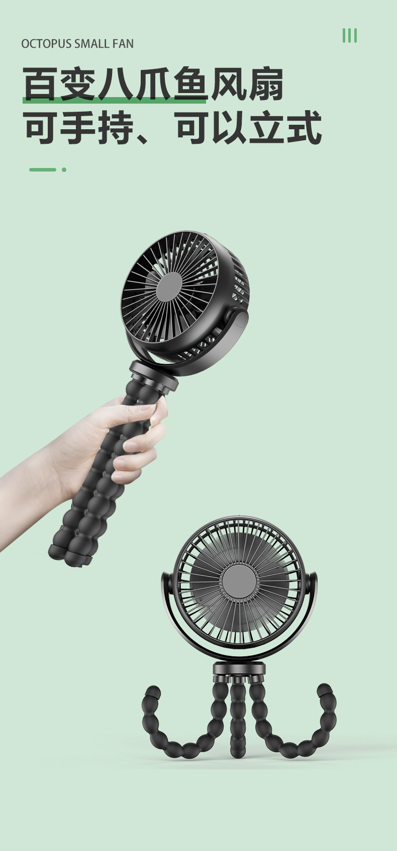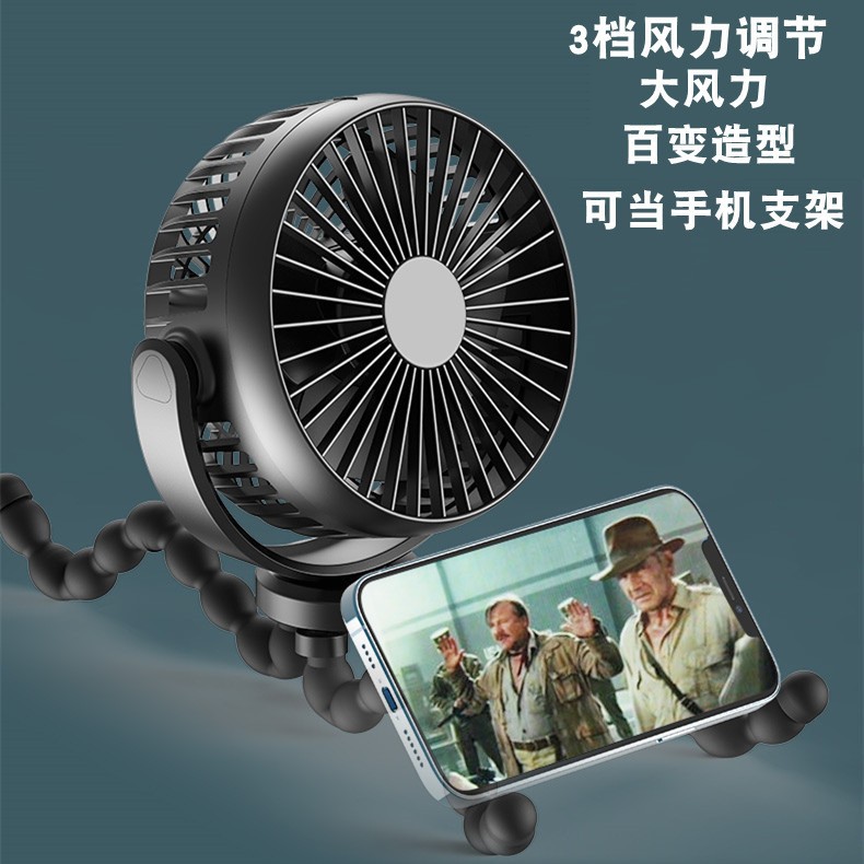 硅胶软管八爪鱼桌面大容量小风扇便携迷你户外静音婴儿车手持风扇