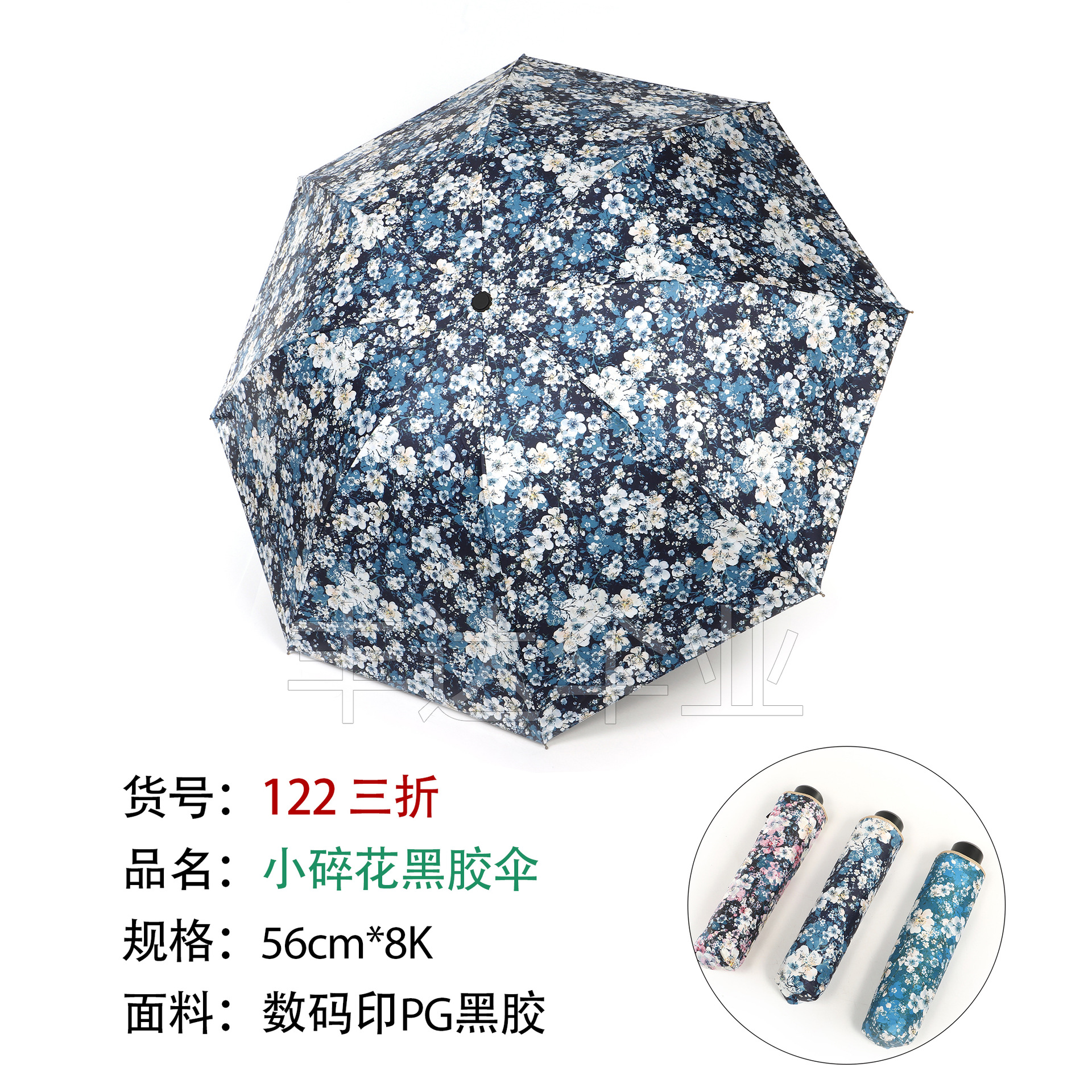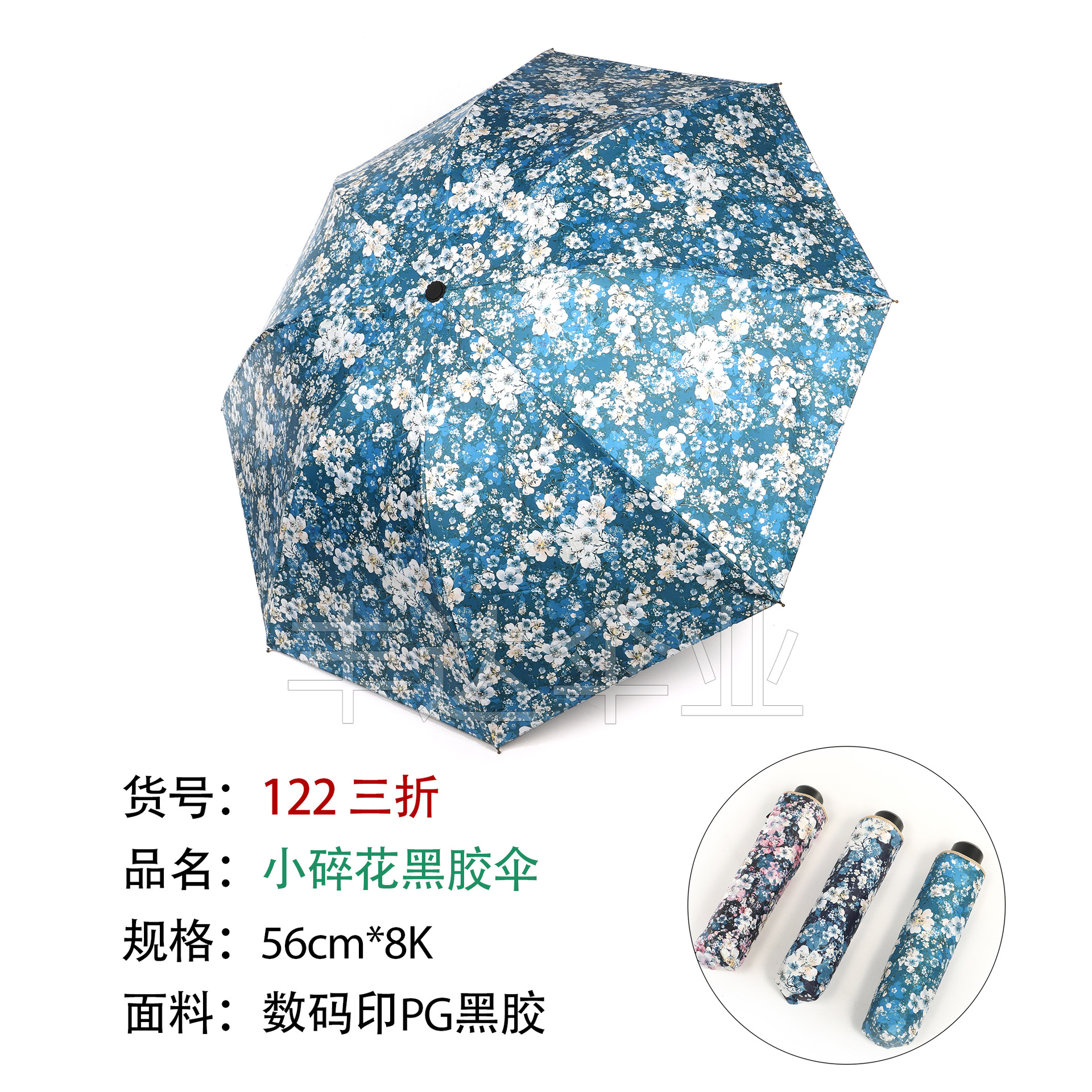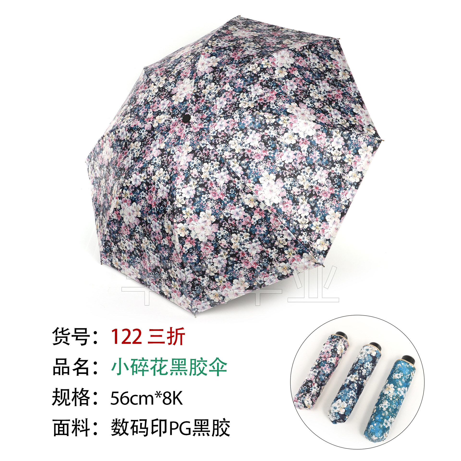 数码印花黑胶碎花折叠雨伞防晒防雨夏季出门晴雨两用胶囊遮阳伞