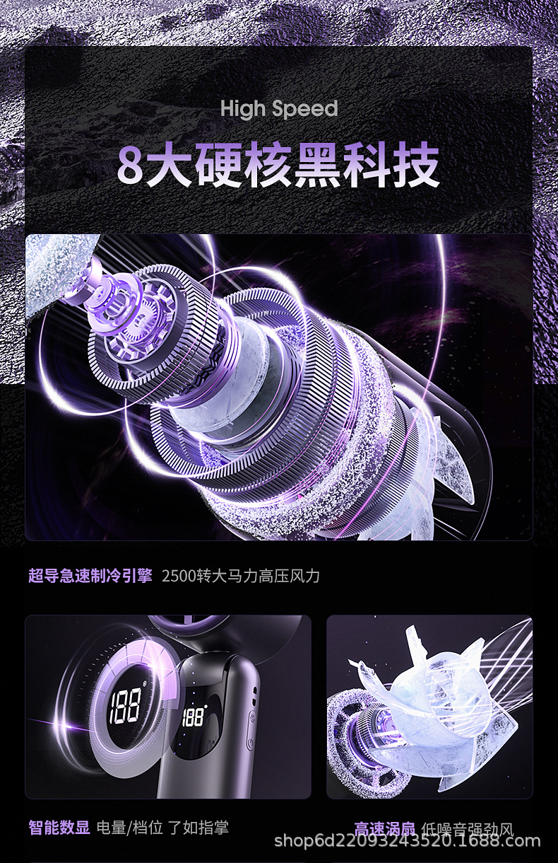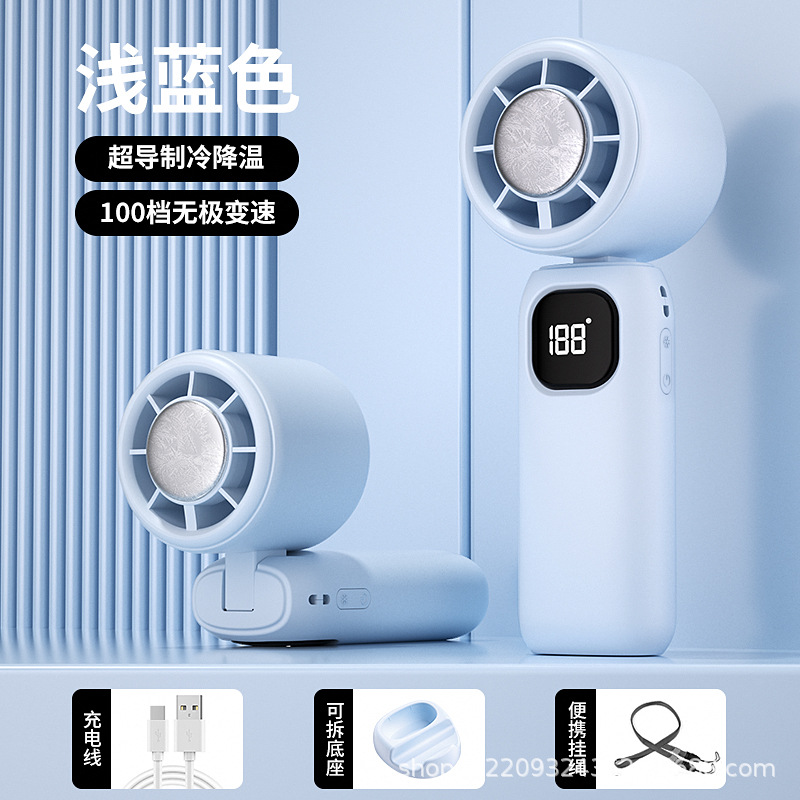 2025新款手持高速跨境涡轮风扇便携折叠数显冰敷制冷大风力小风扇