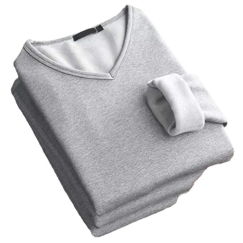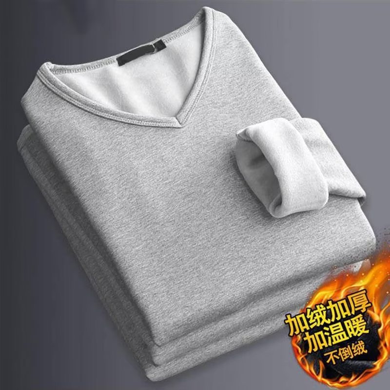 秋冬季长袖保暖加绒男士V领t恤打底衫纯色男款鸡心领内搭加厚秋衣