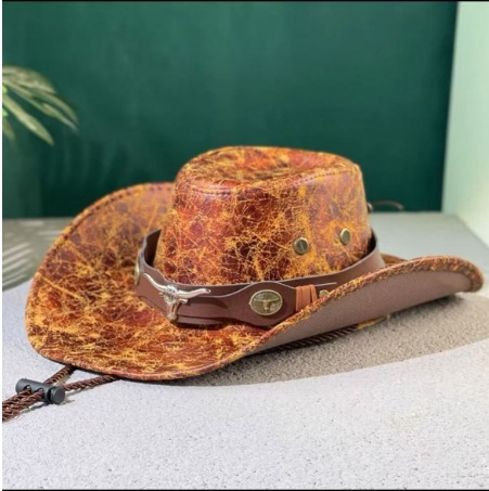 跨境爆款西部牛仔裂纹牛头复古男女新款户外出游平顶牛仔骑士帽男