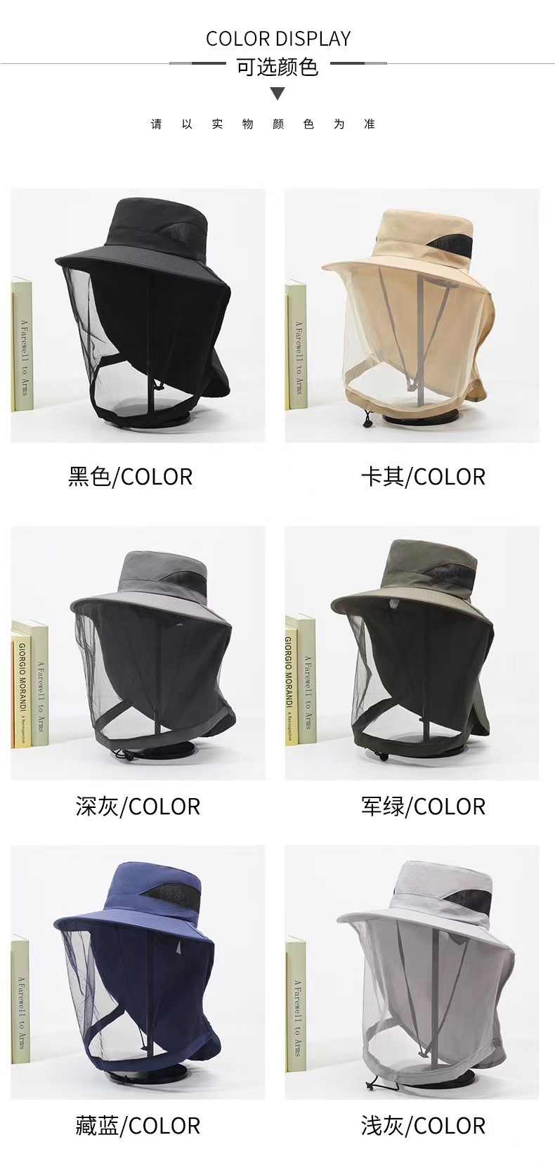 户外防蚊帽男女钓鱼帽透气网纱面罩遮脸防晒夜钓防蜜蜂防虫养蜂帽