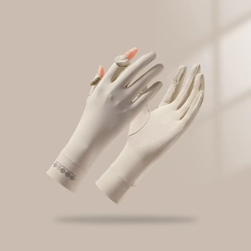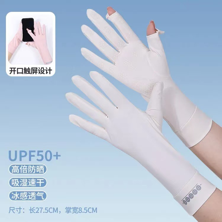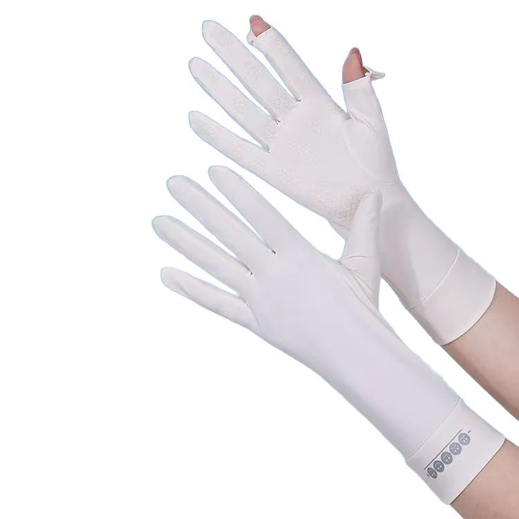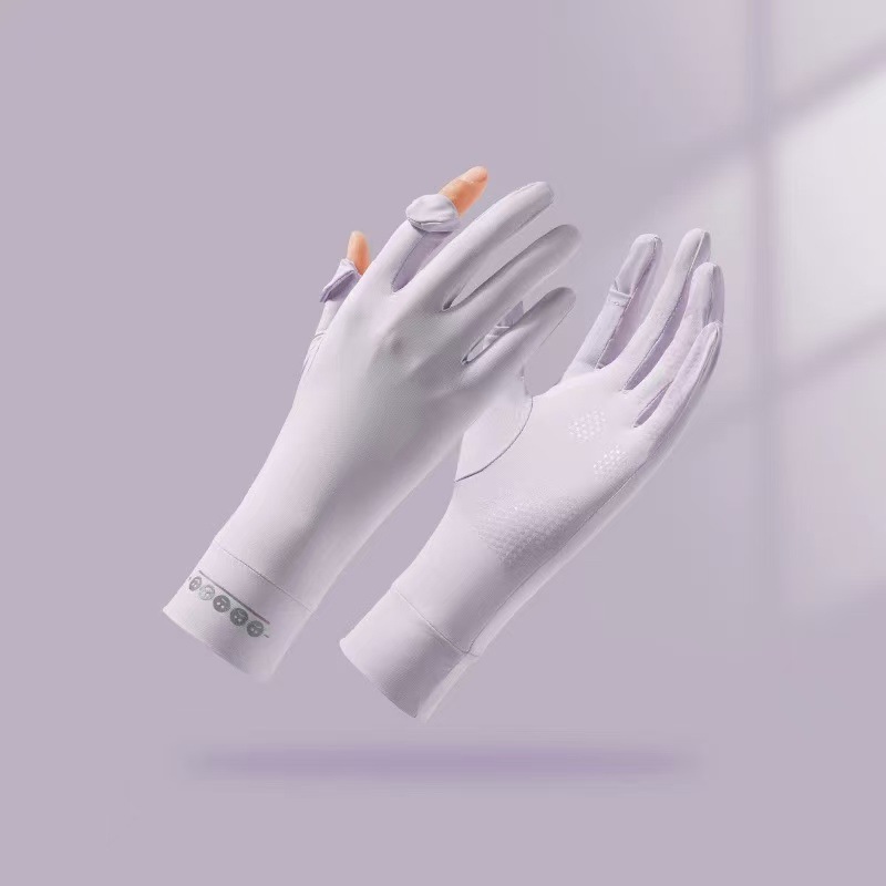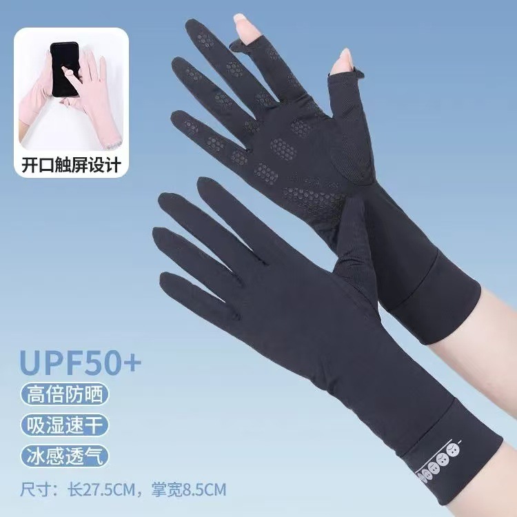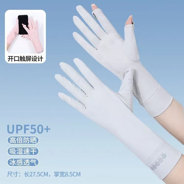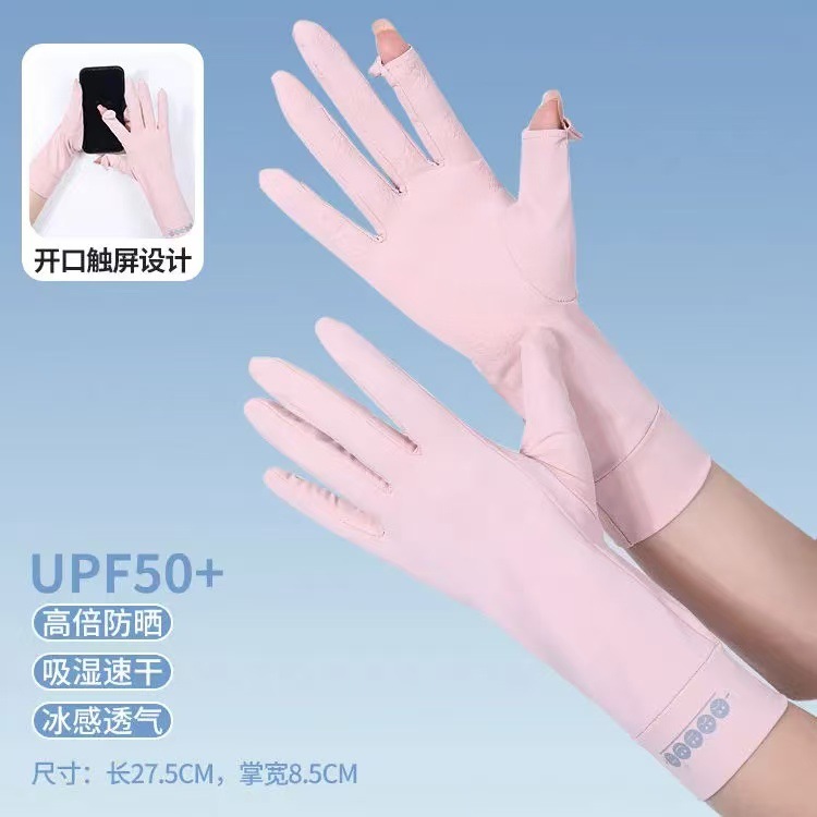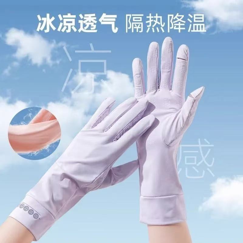 夏季防晒手套女防紫外线薄款露指中长款冰丝袖套开车骑行运动防滑
