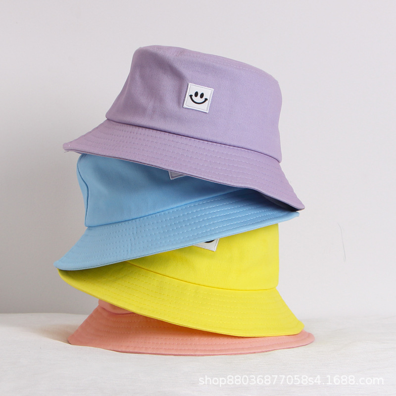 韩版儿童成人帽子春夏新款刺绣笑脸盆帽遮阳防晒亲子渔夫帽潮
