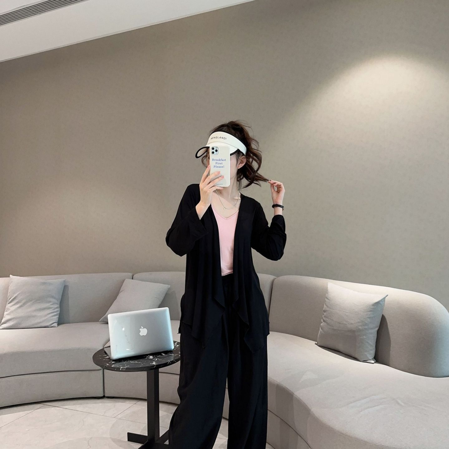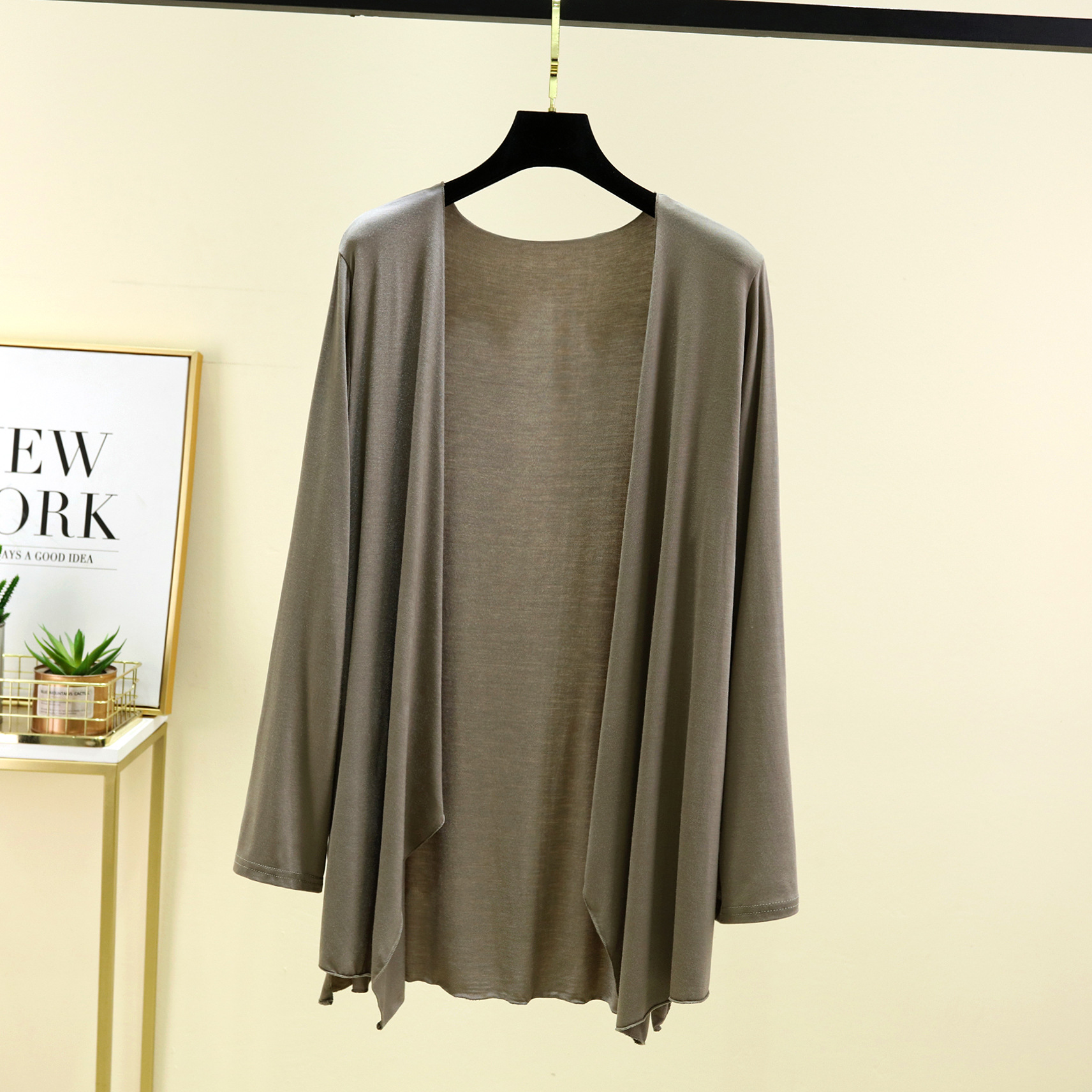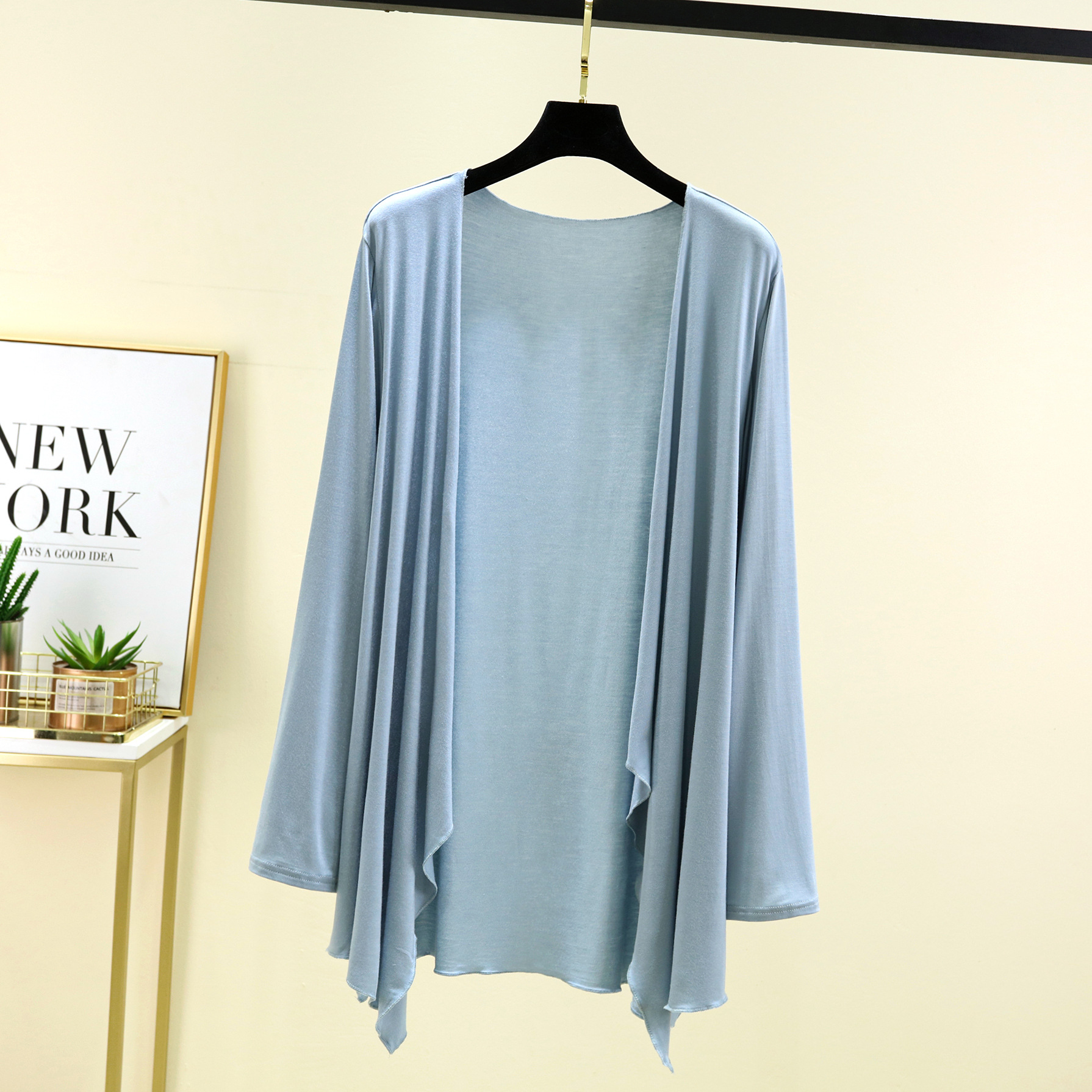 莫代尔长袖开衫女夏季新款空调防晒衫纯色中长款不规则披肩薄外套