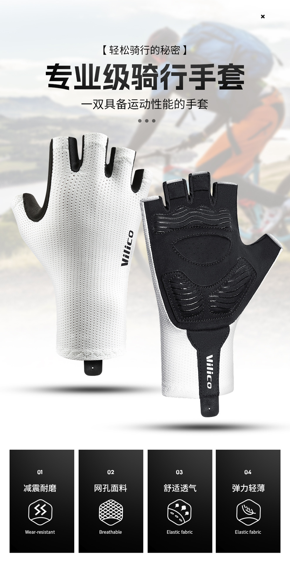 户外自行车公路半指骑行手套减震耐磨防晒透气运动健身钓鱼手套