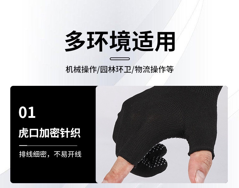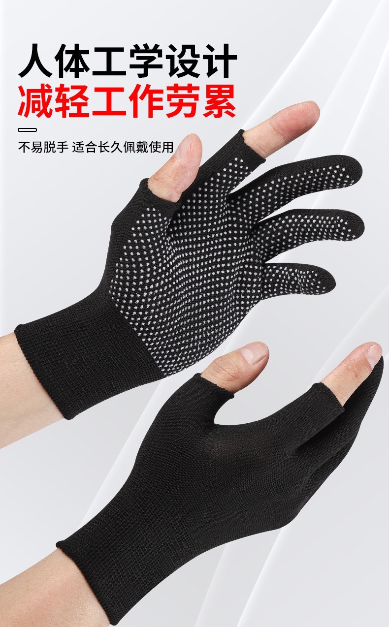 劳工手套尼龙防滑乳胶半指手套工地干活打包保暖柔软透气防晒手套