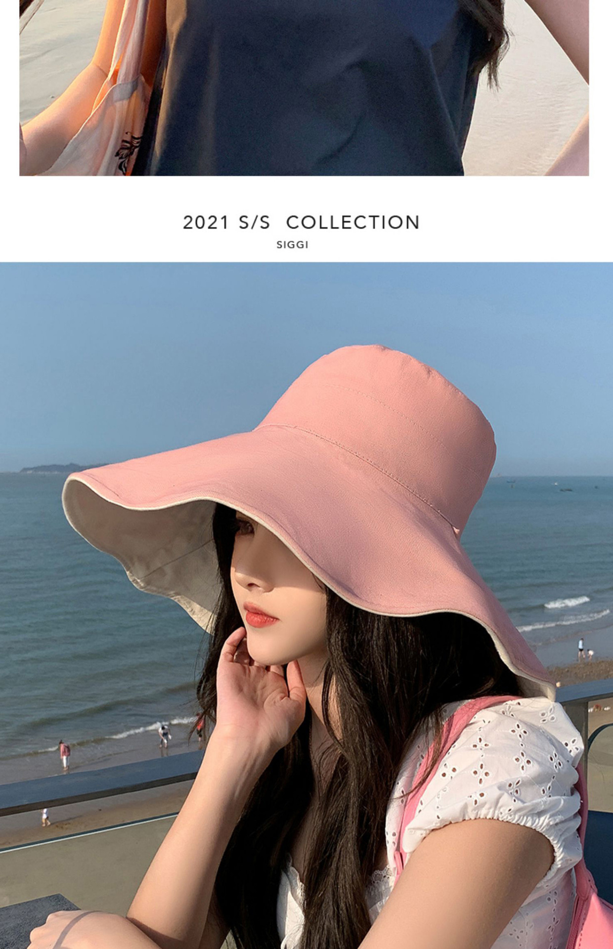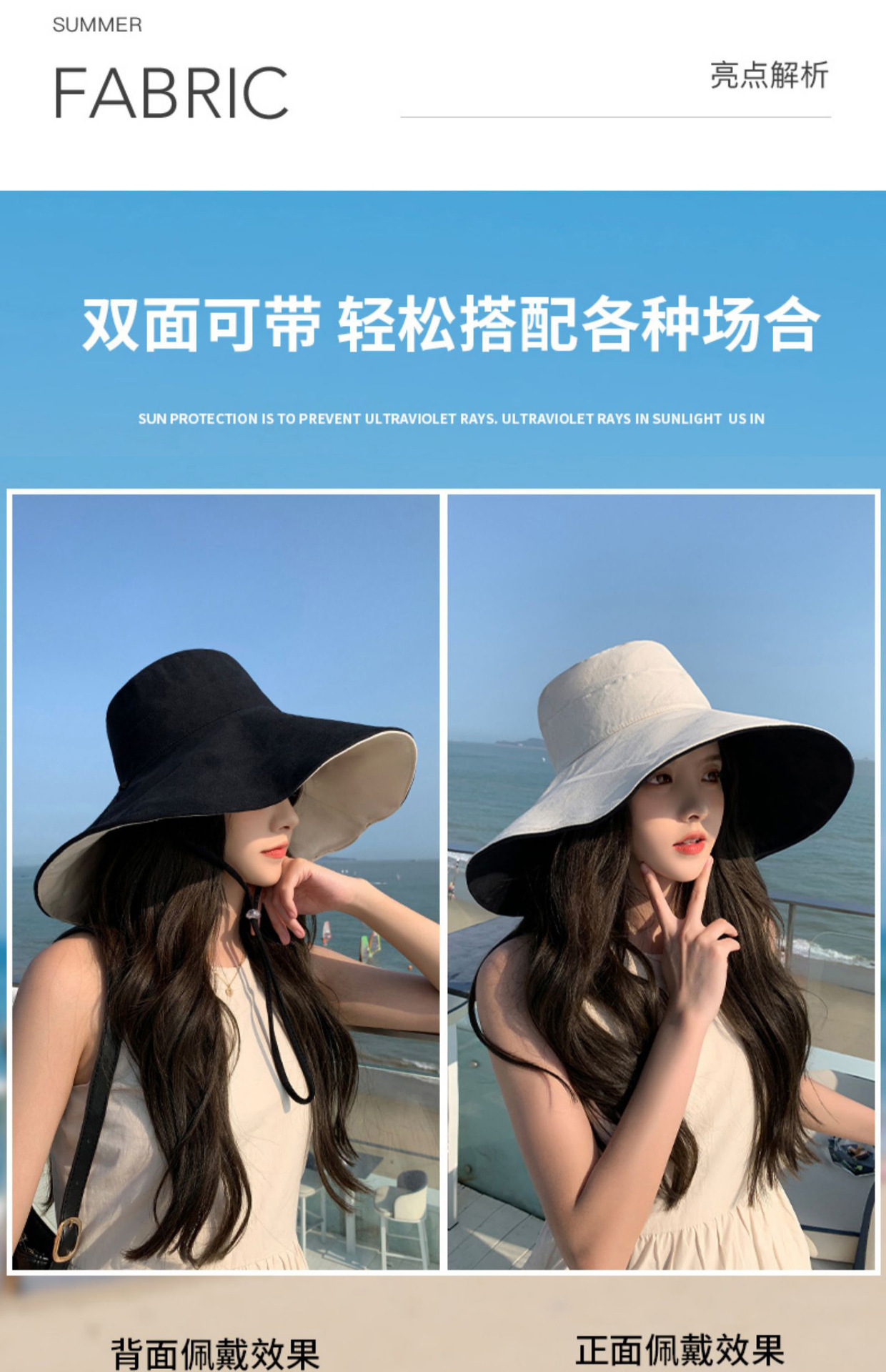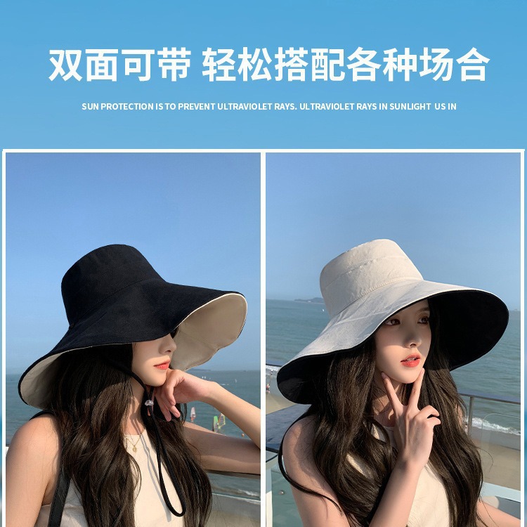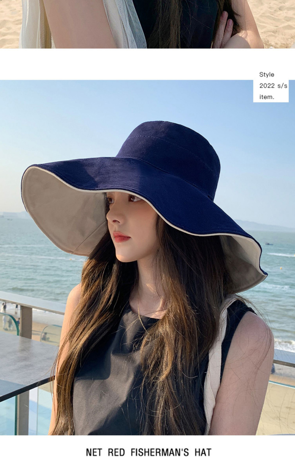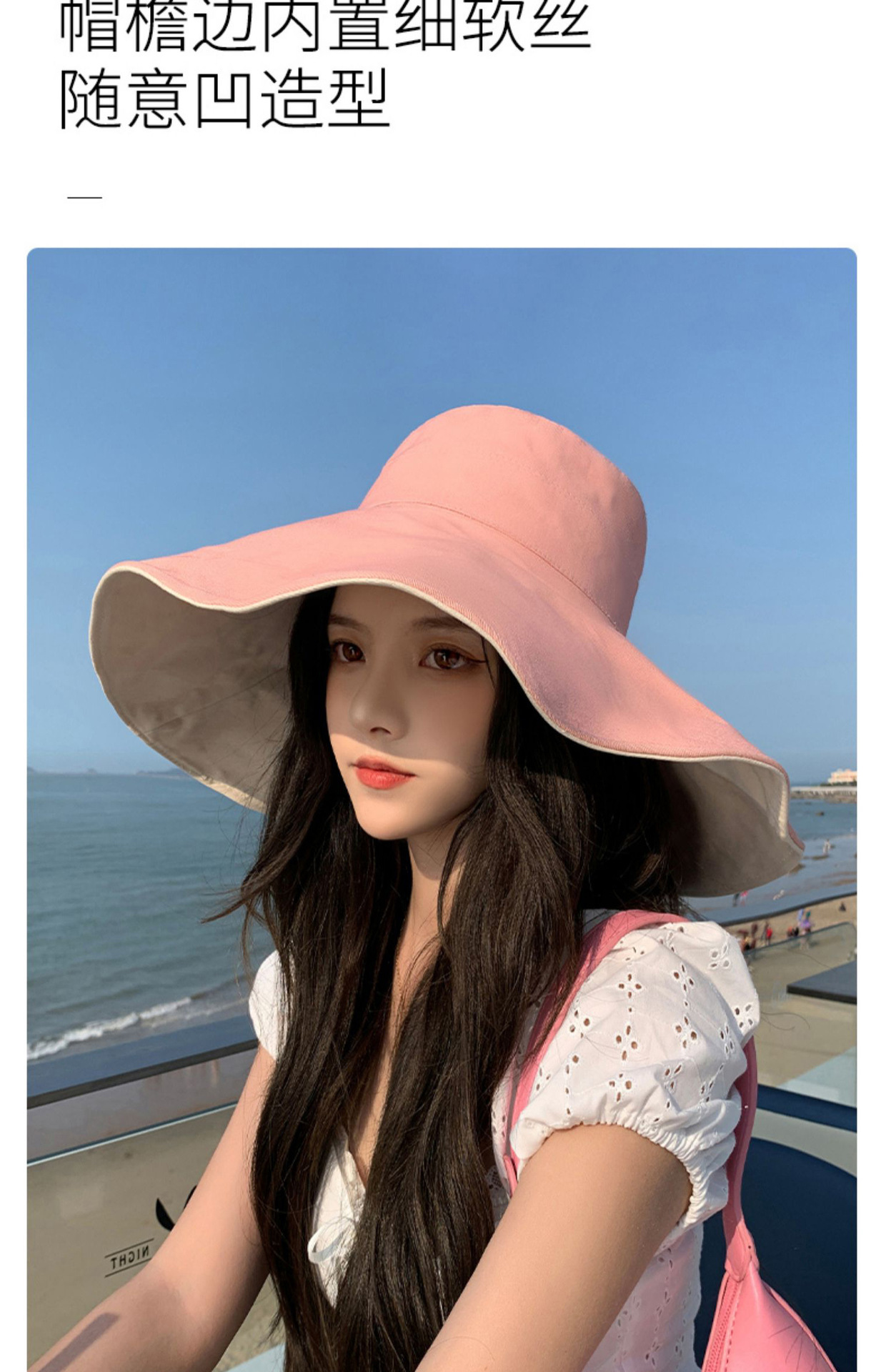 14cm大帽檐双面渔夫帽防晒帽子女遮阳帽韩版百搭户外旅游圆脸时尚