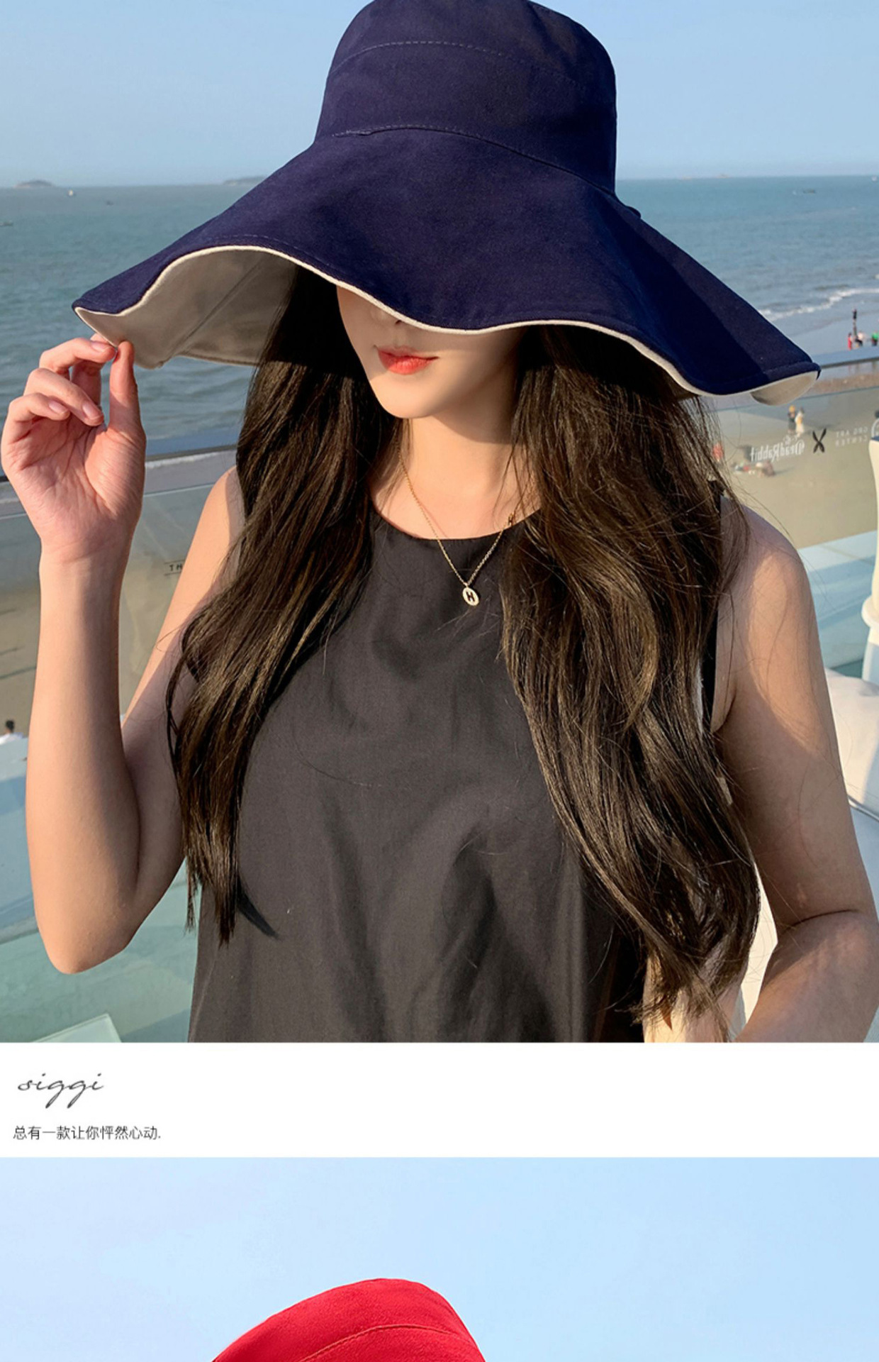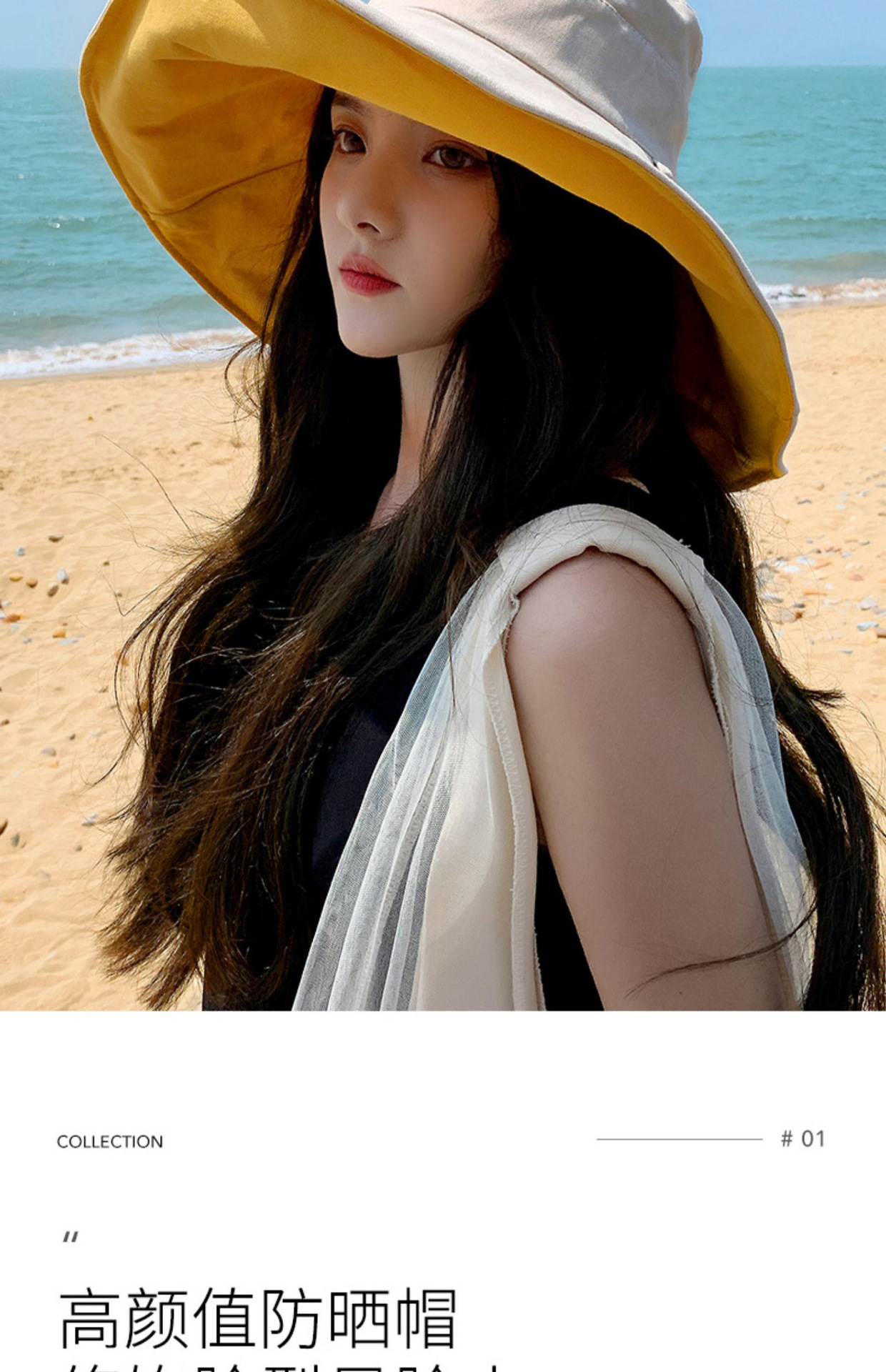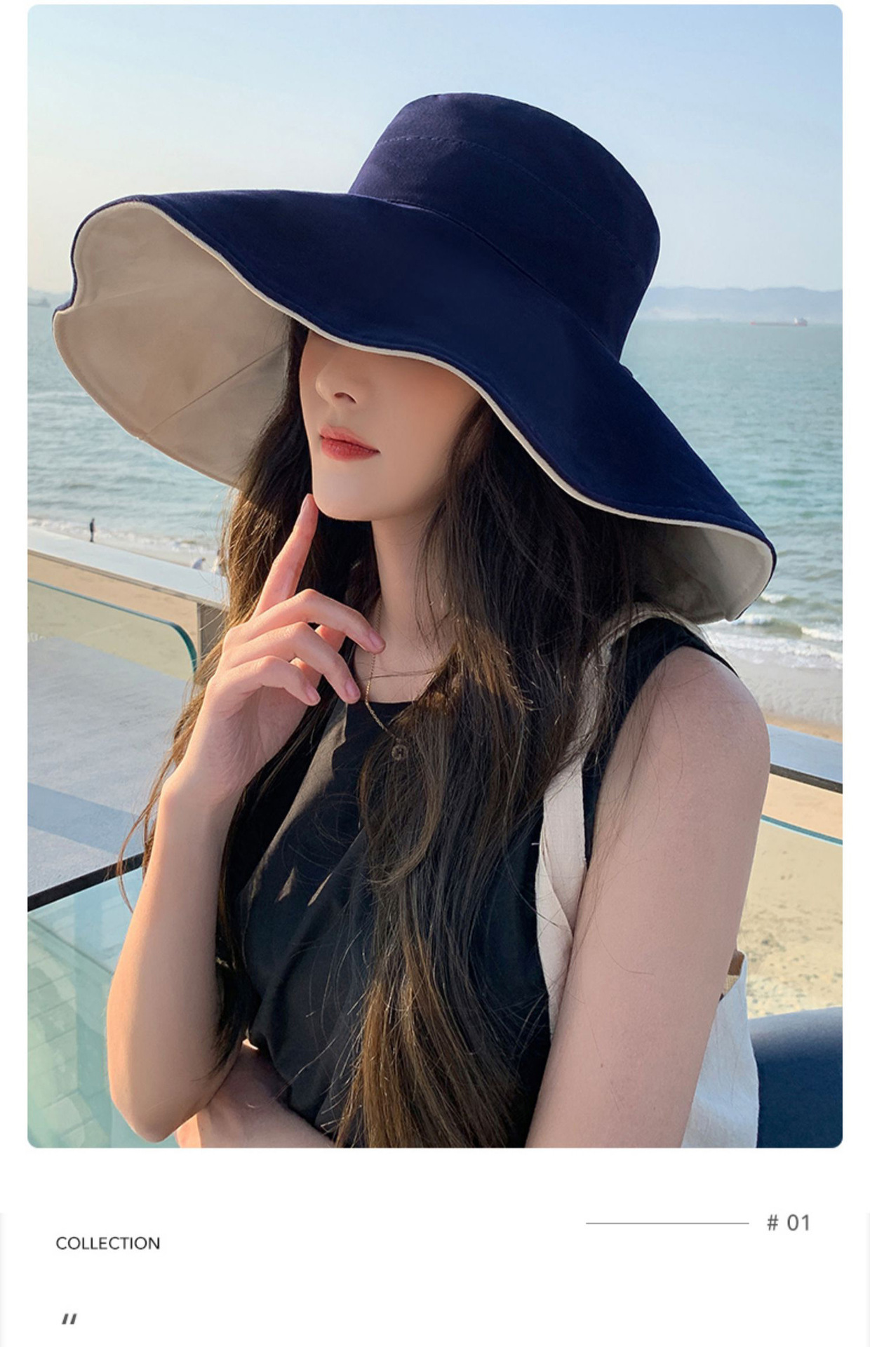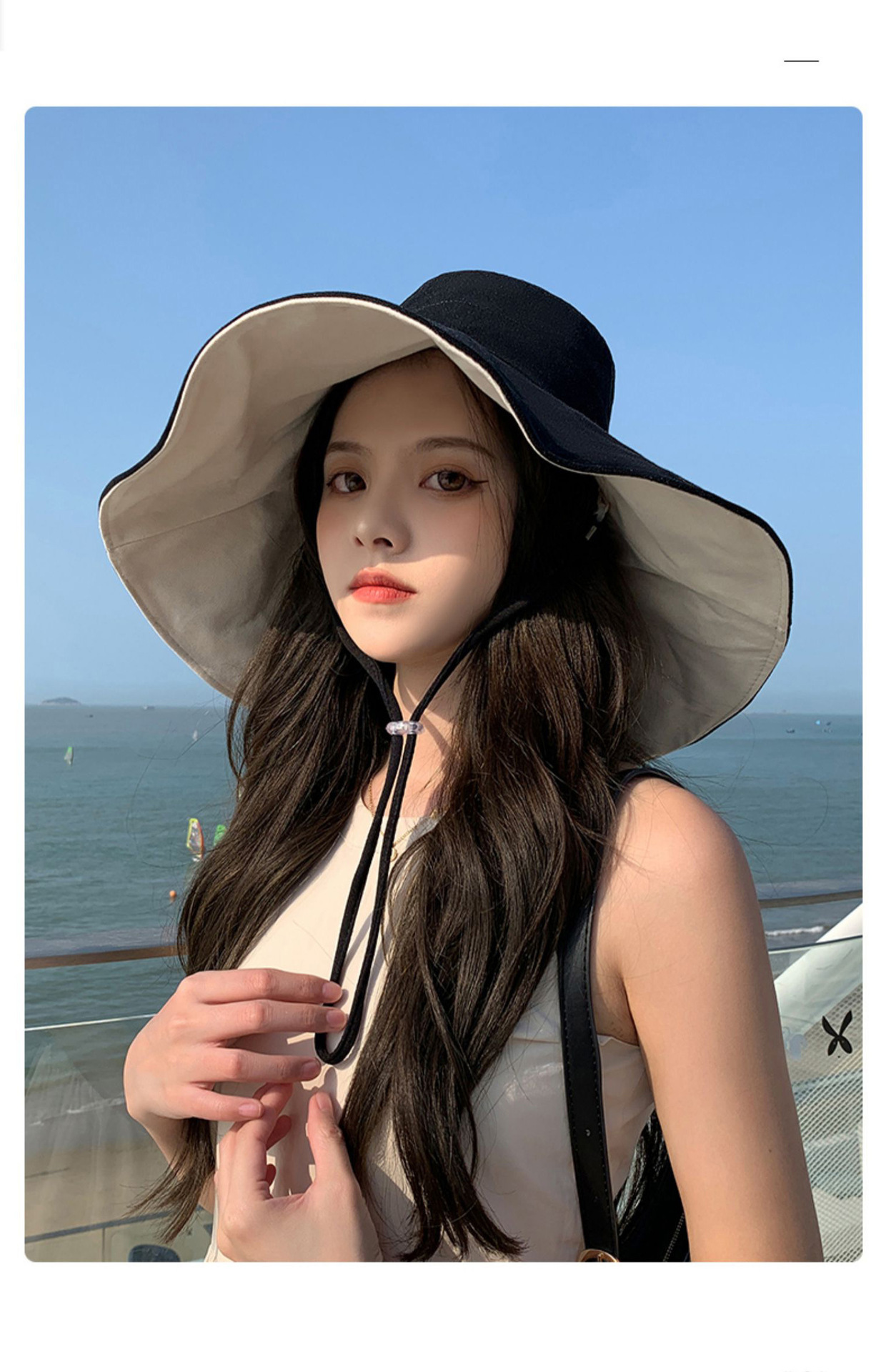 14cm大帽檐双面渔夫帽防晒帽子女遮阳帽韩版百搭户外旅游圆脸时尚