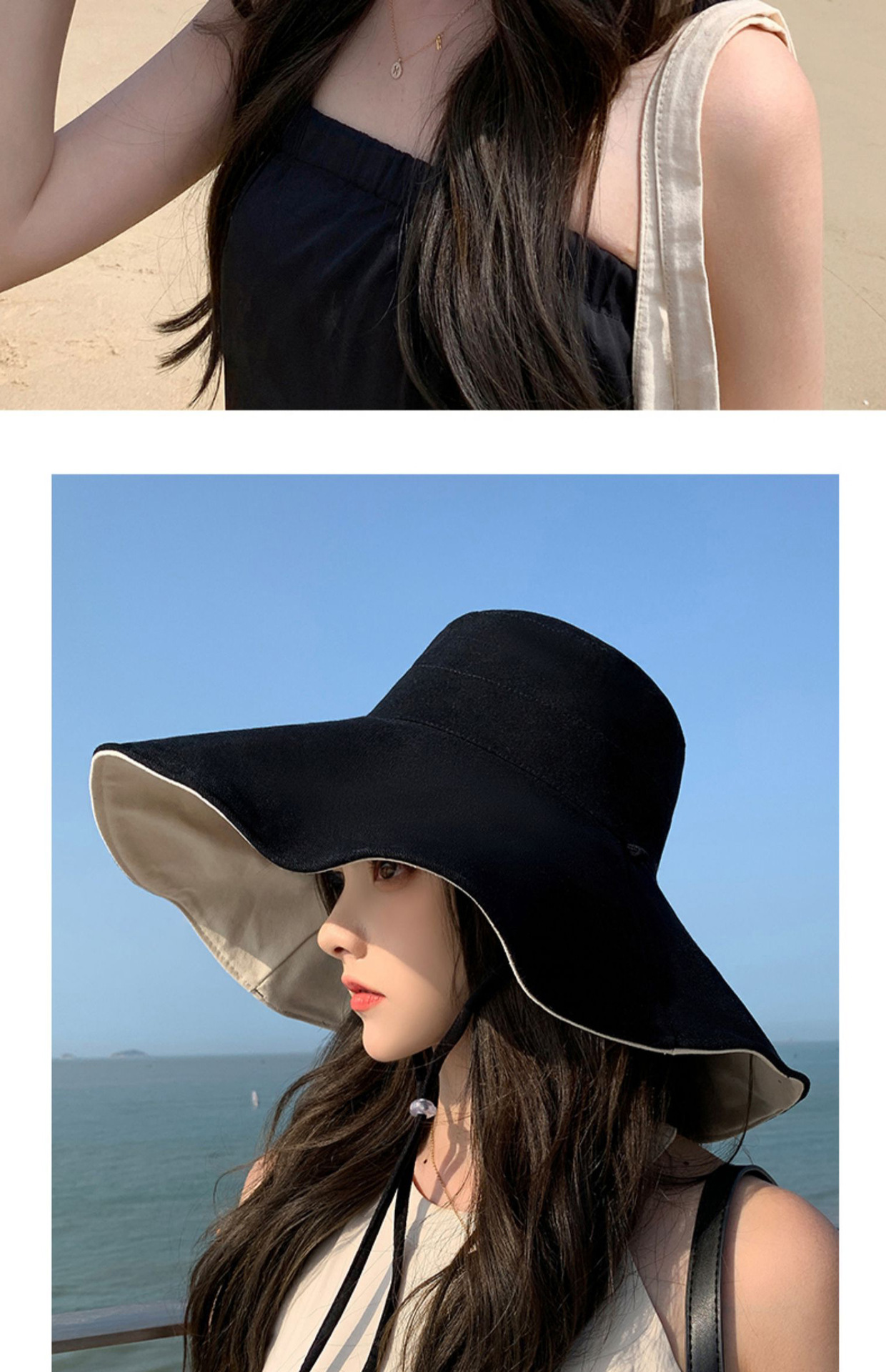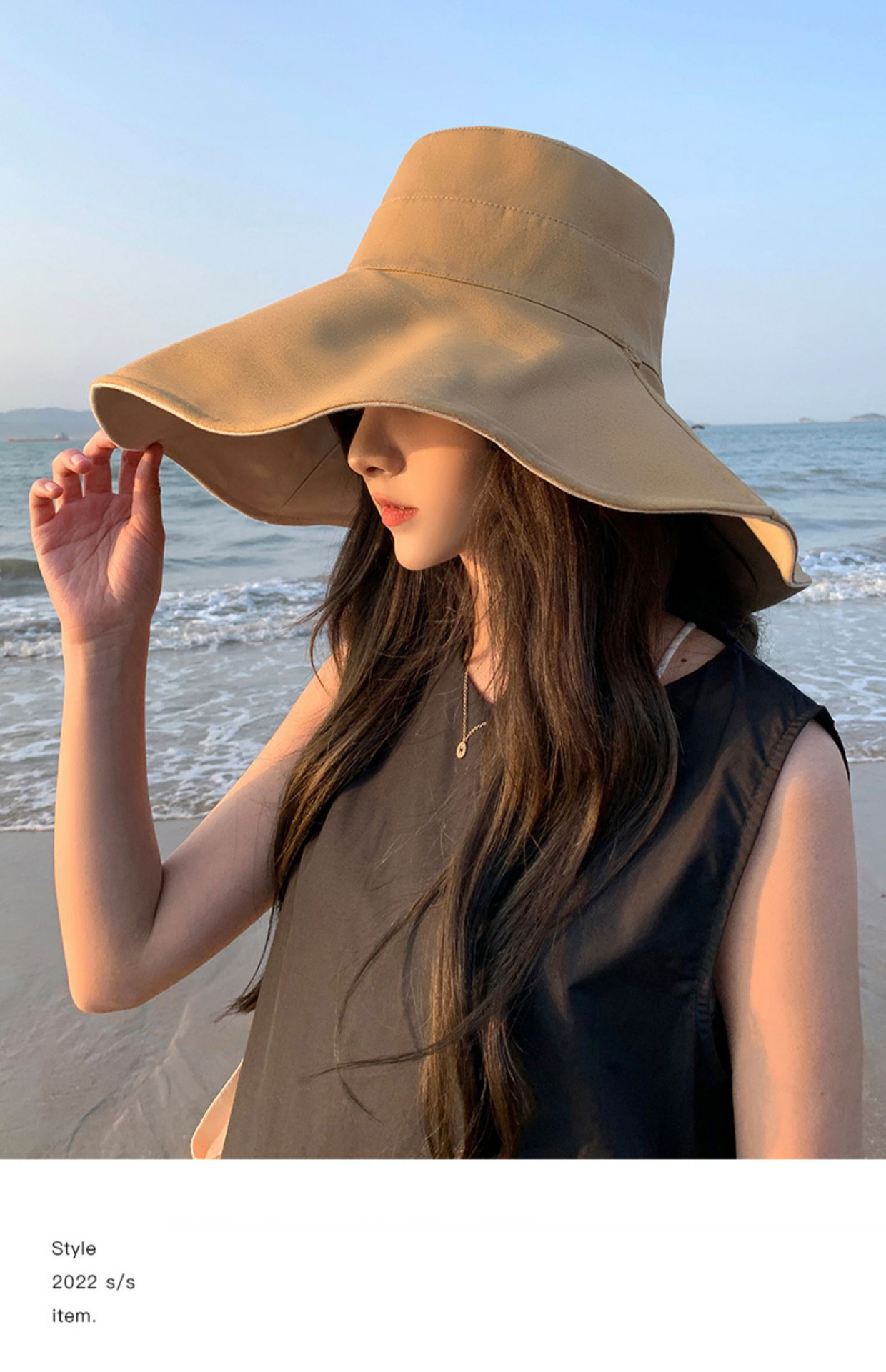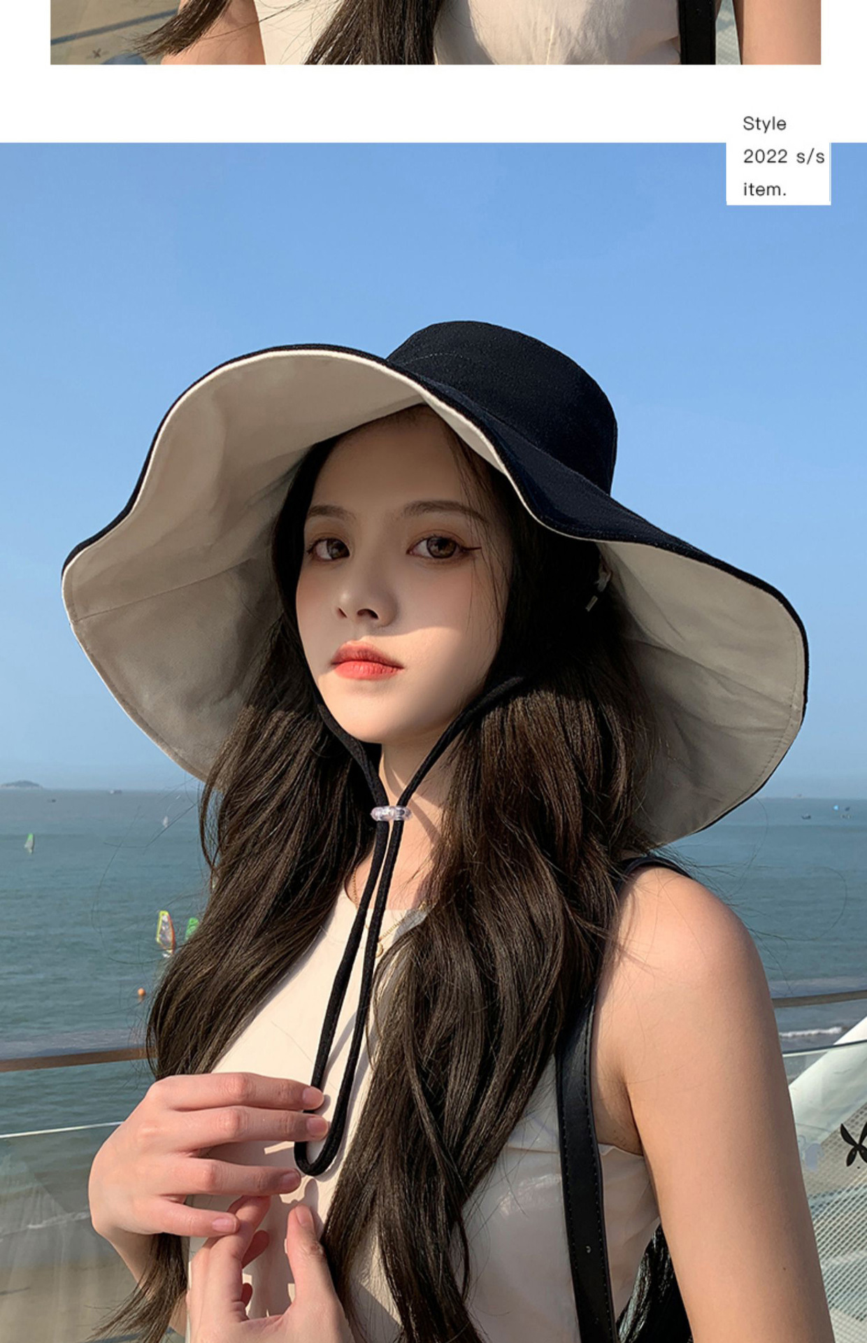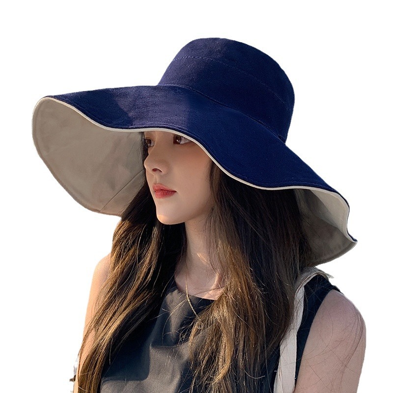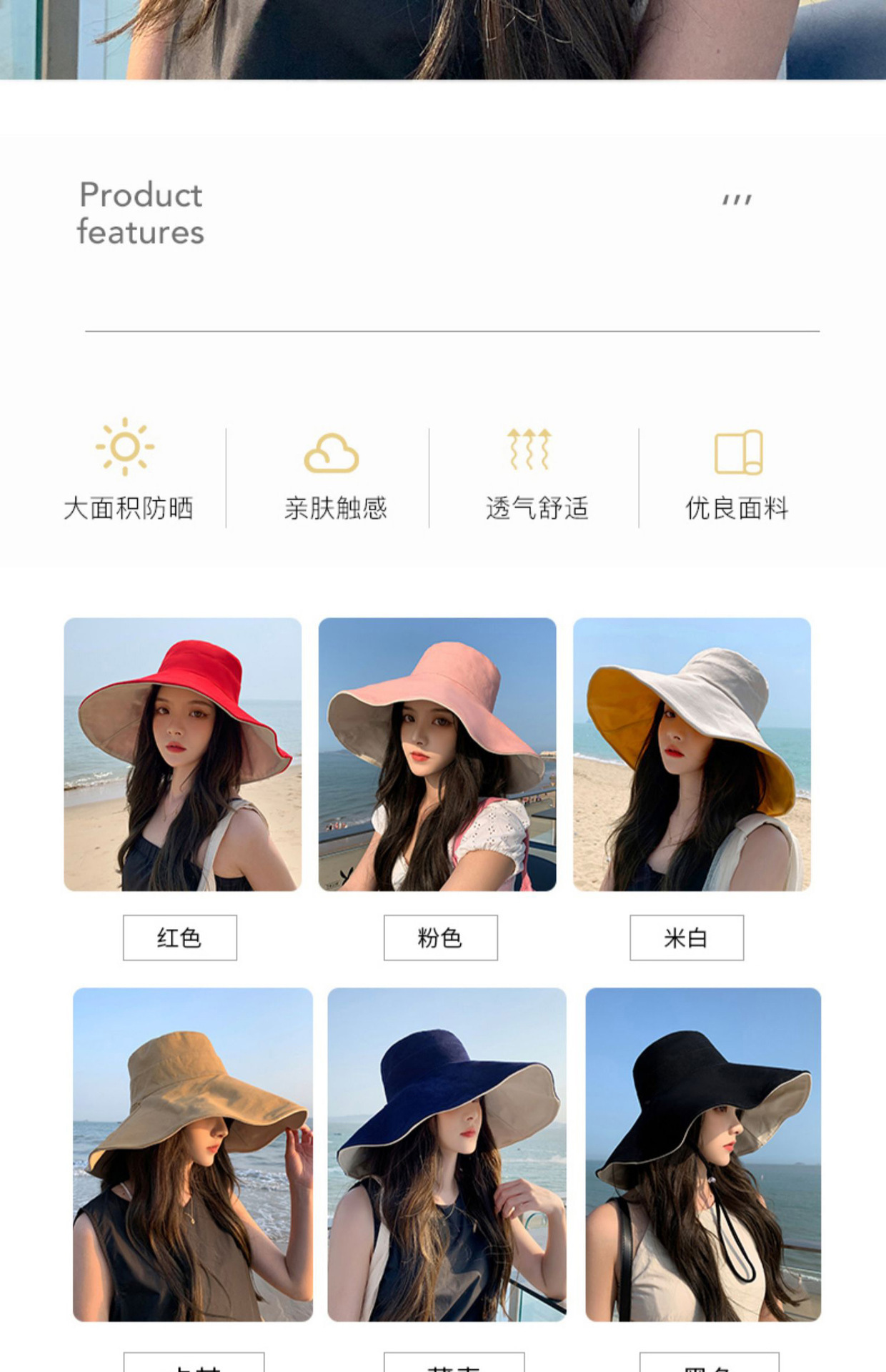 14cm大帽檐双面渔夫帽防晒帽子女遮阳帽韩版百搭户外旅游圆脸时尚