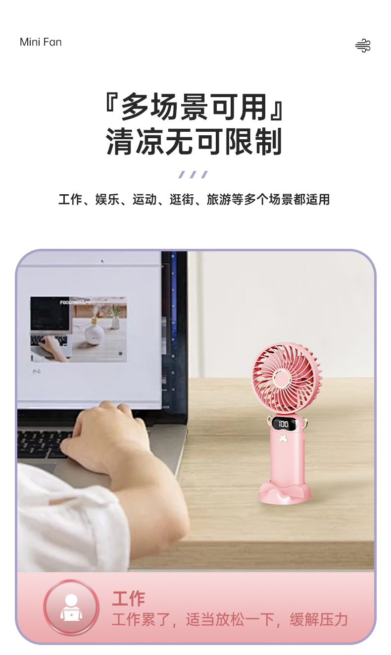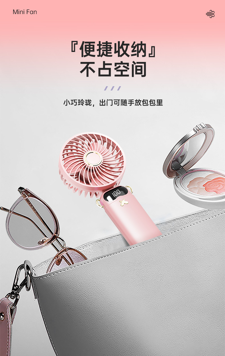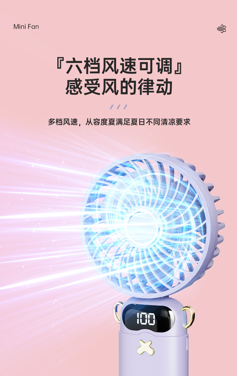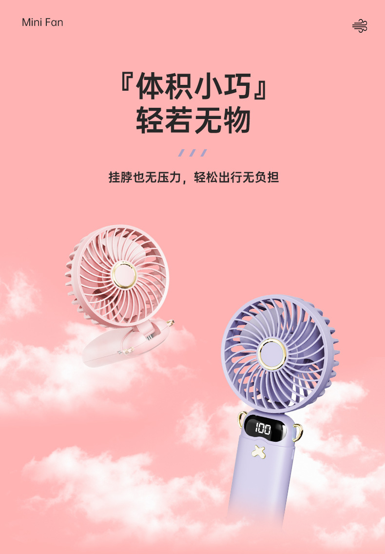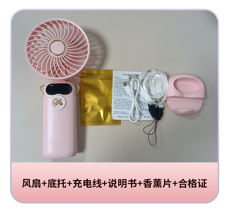 热销手持香薰折叠数显小风扇挂绳风扇学生小风扇静音香气风扇户外