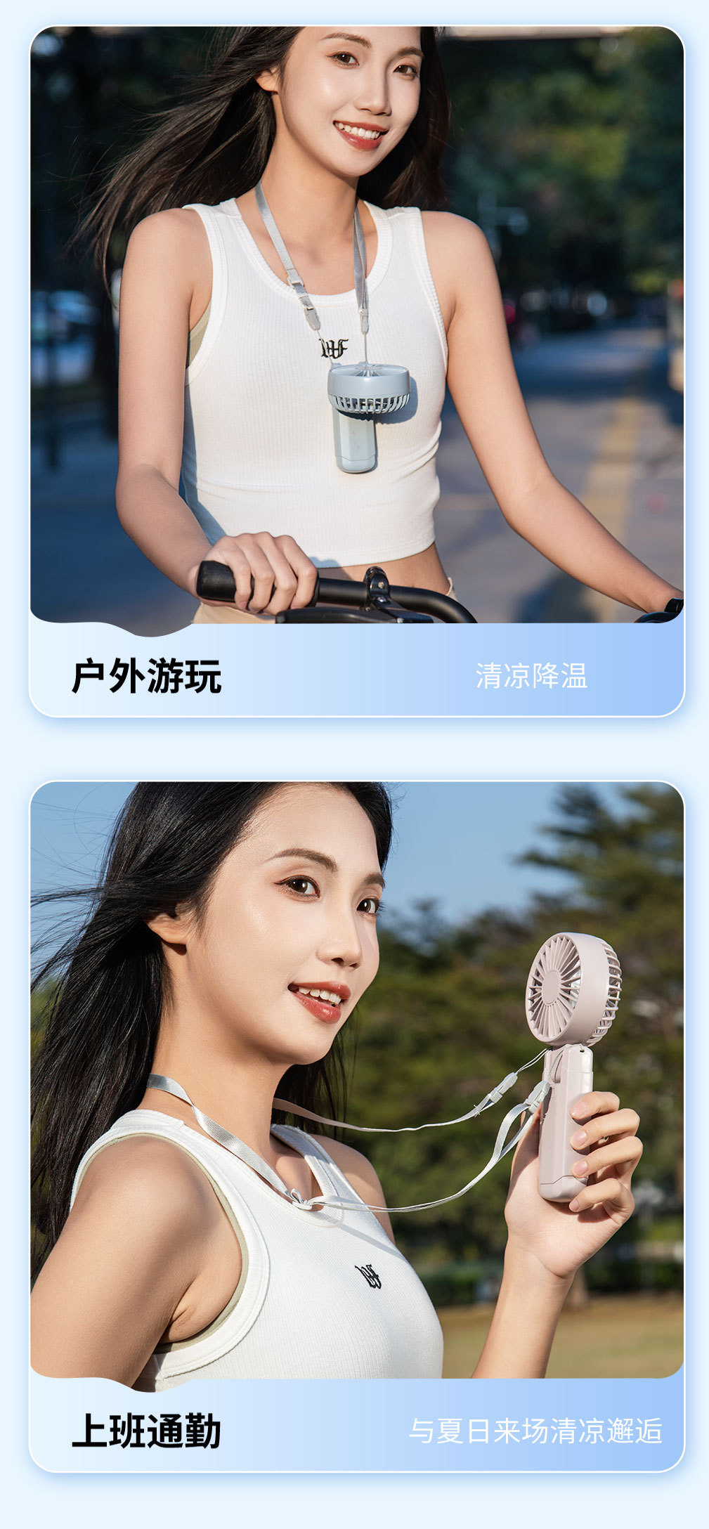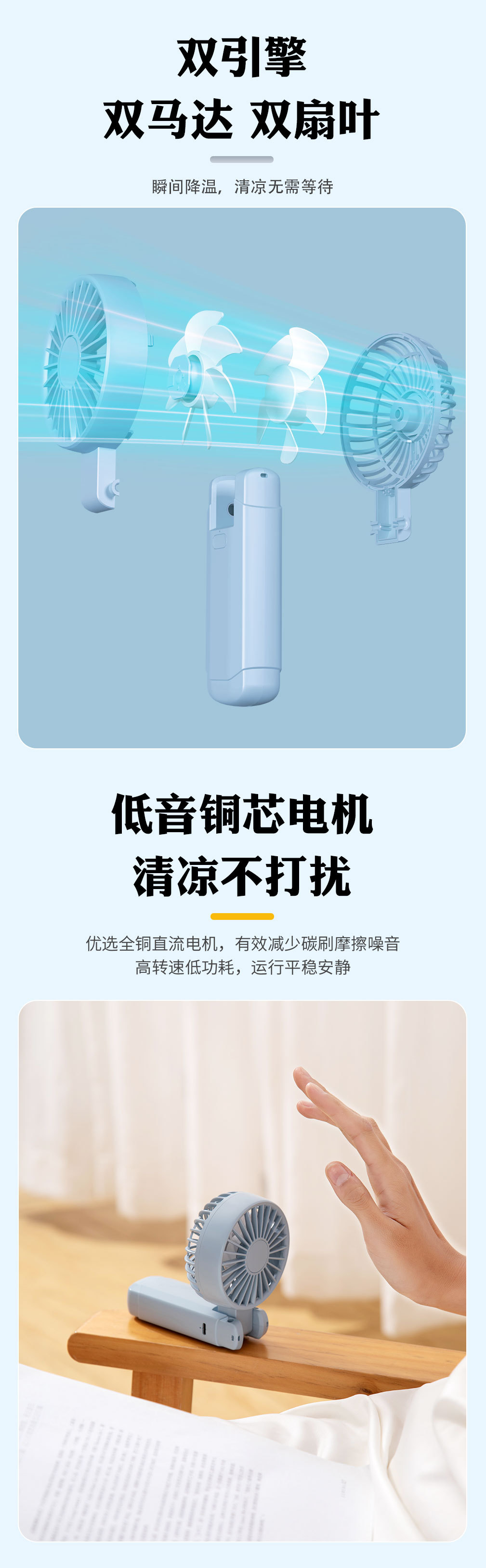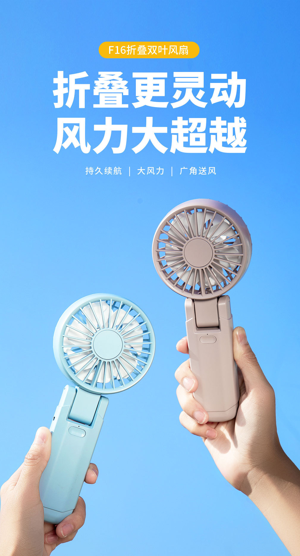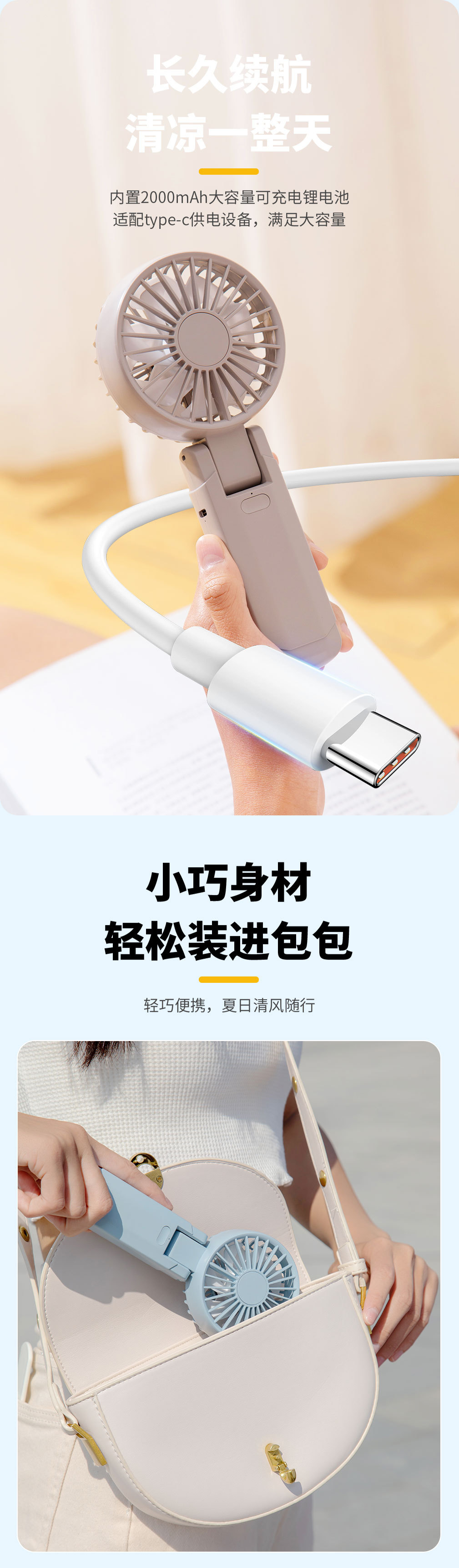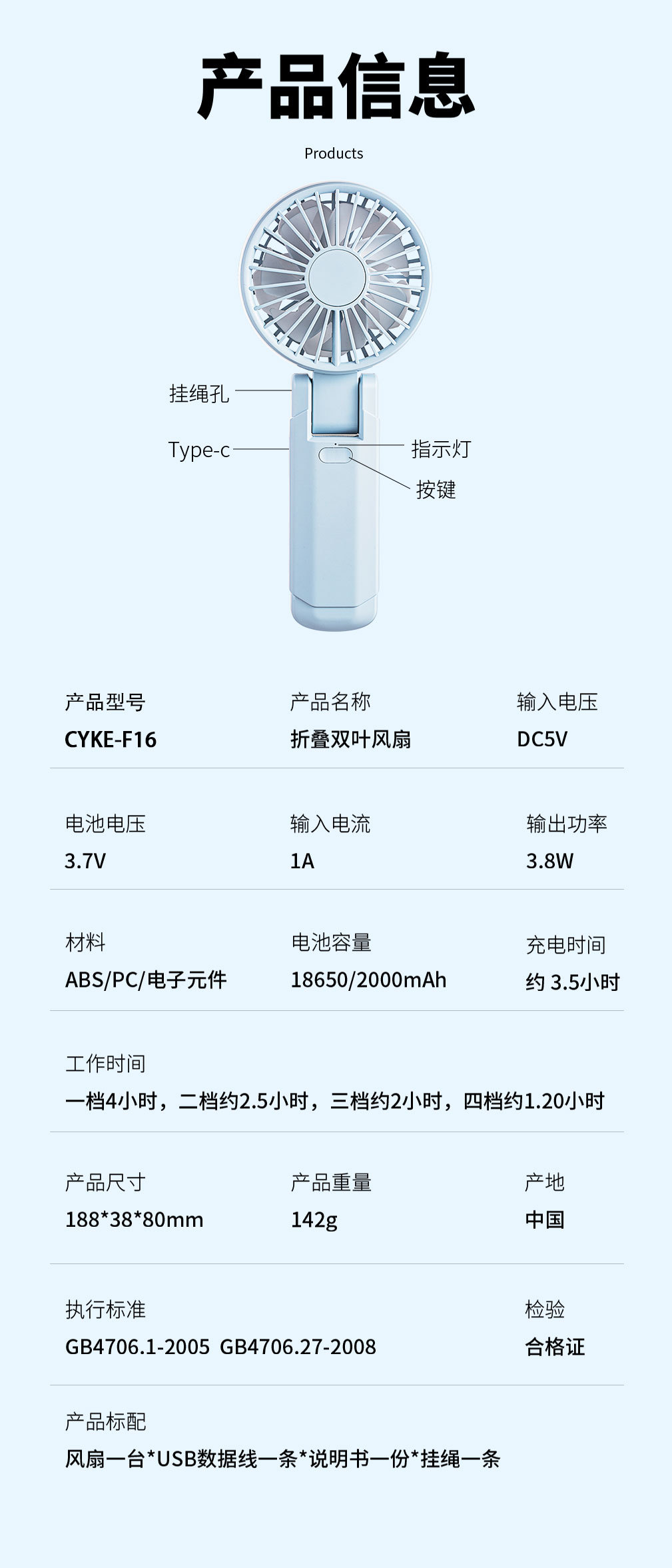 CYKE手持小风扇双扇叶小型USB充电风扇折叠挂脖迷你手持风扇BSMI