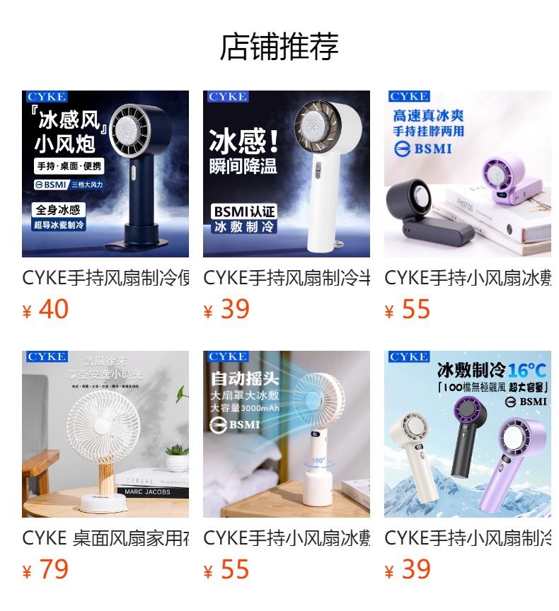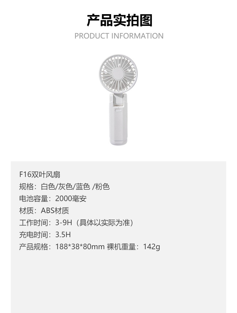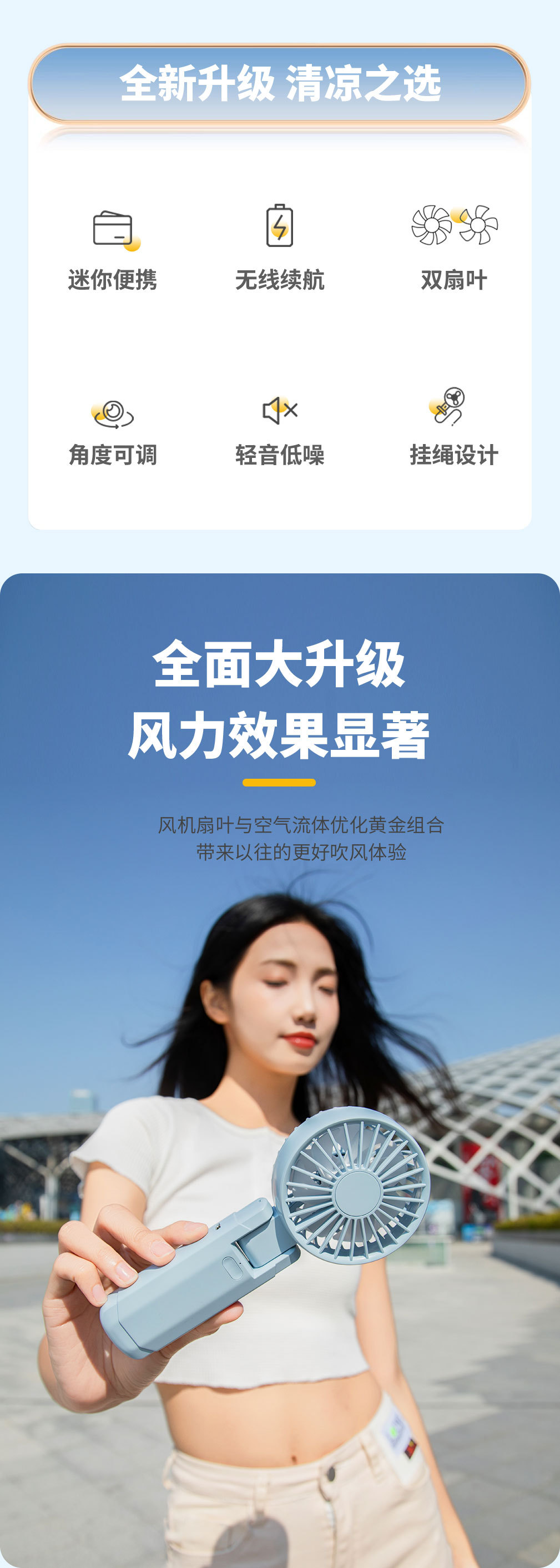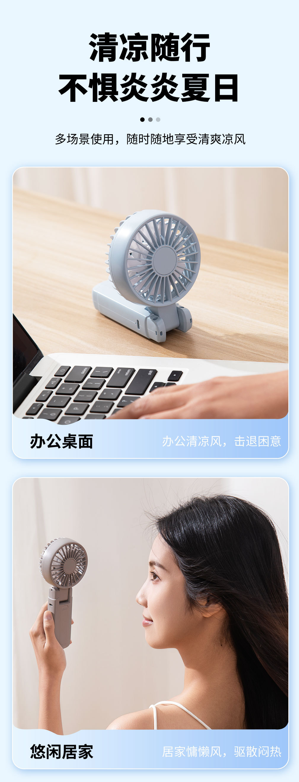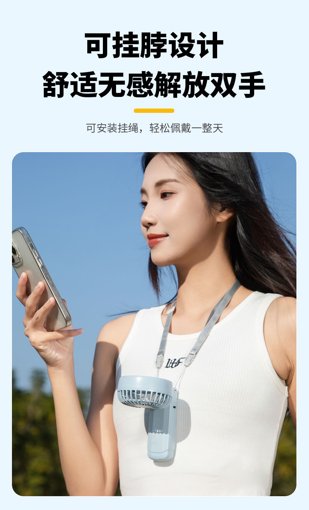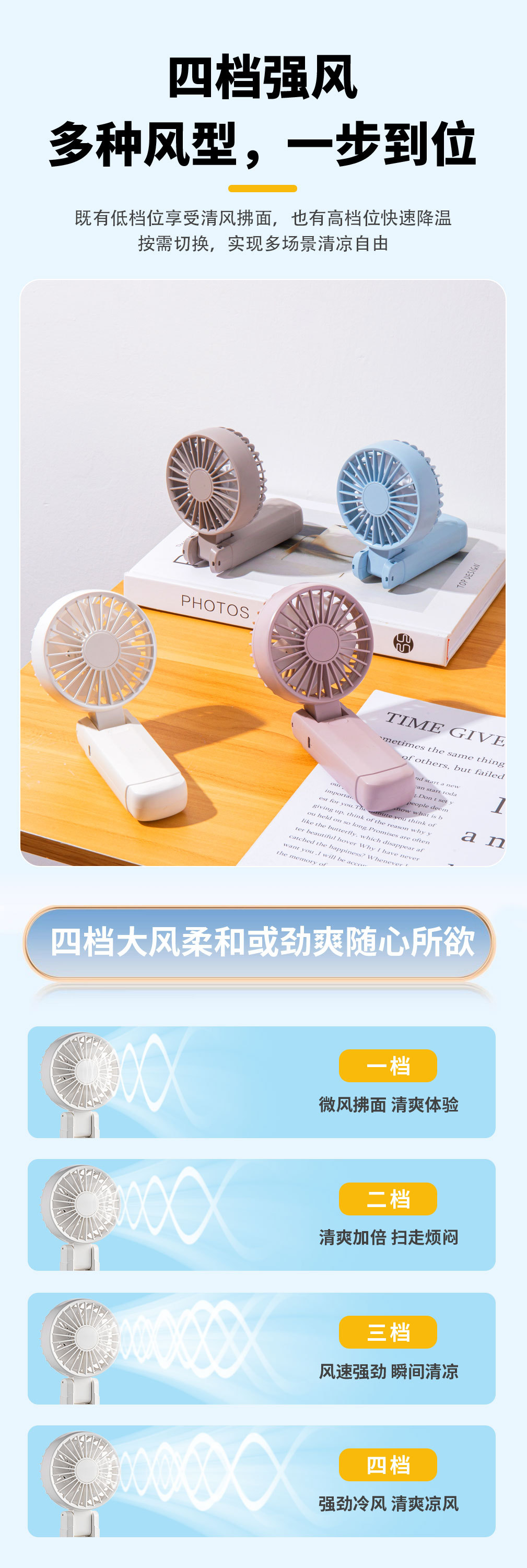 CYKE手持小风扇双扇叶小型USB充电风扇折叠挂脖迷你手持风扇BSMI