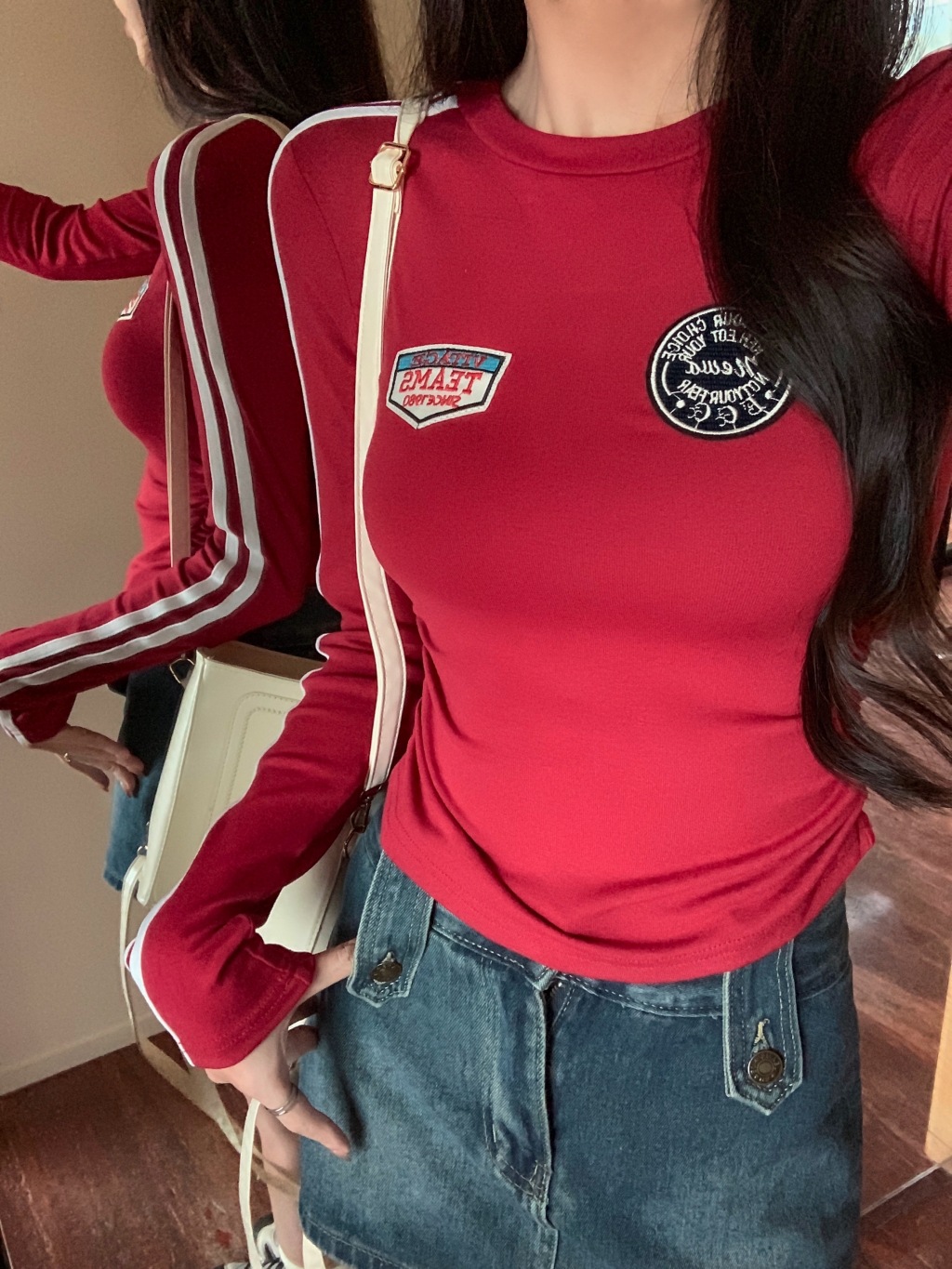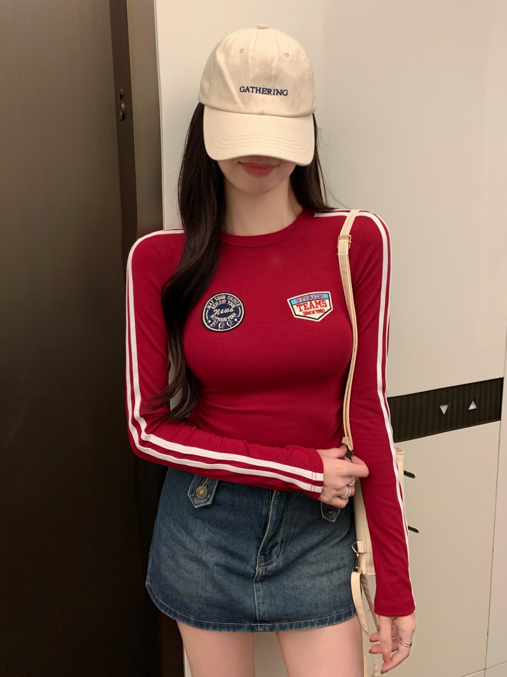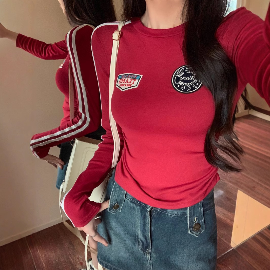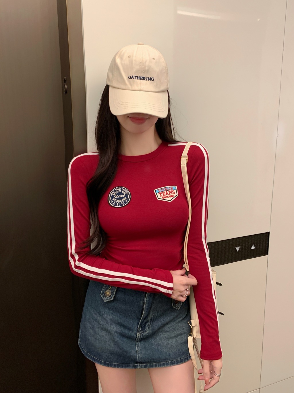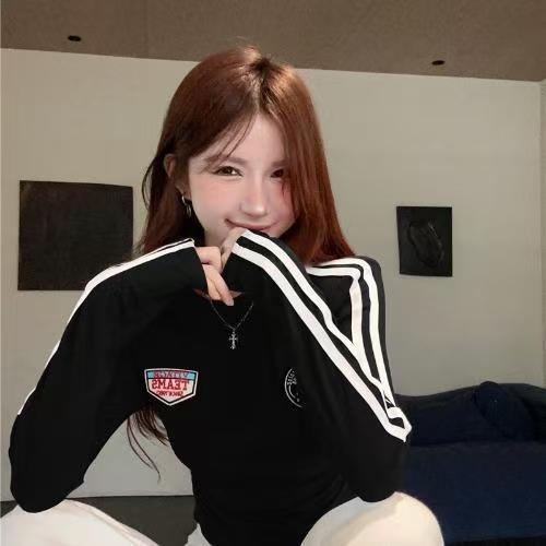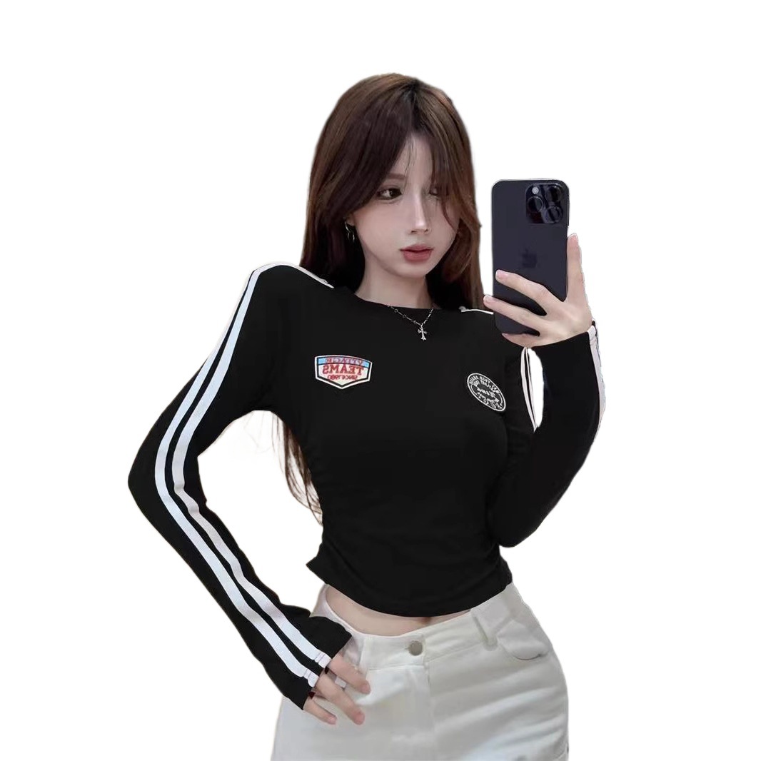546 #实拍 40支纯棉(92棉/8氨纶) 2026秋装长袖T恤女绣花条纹上