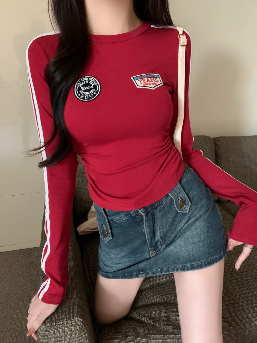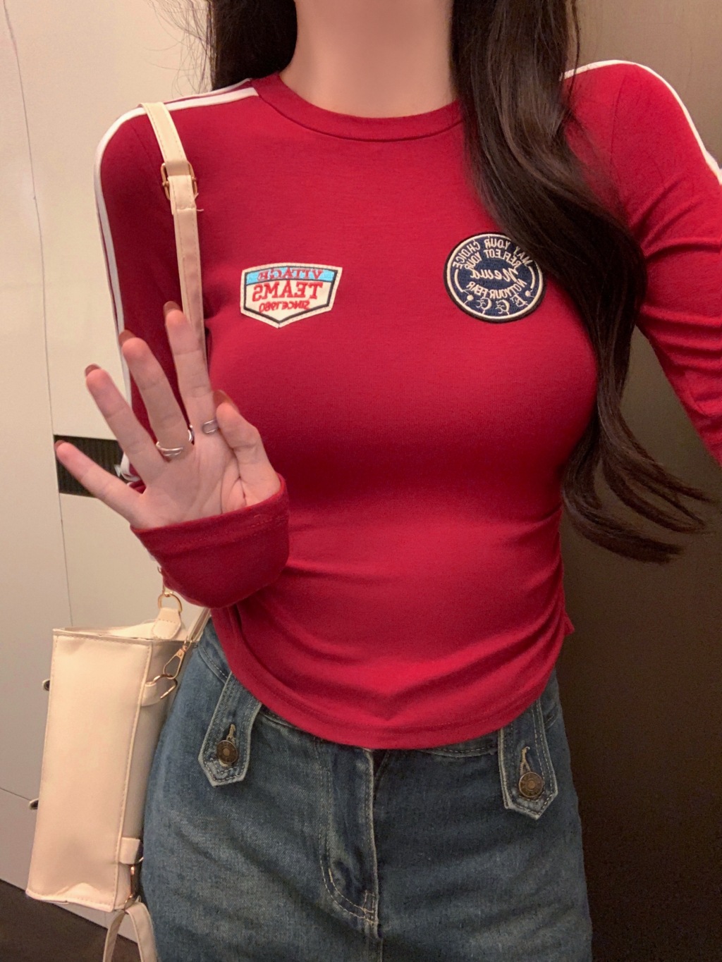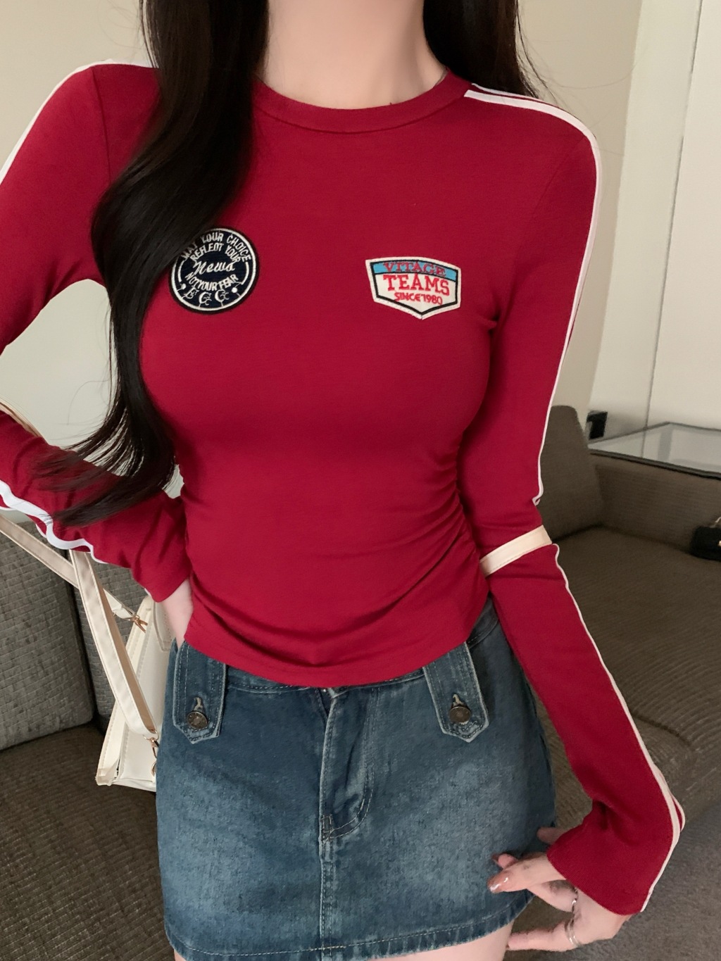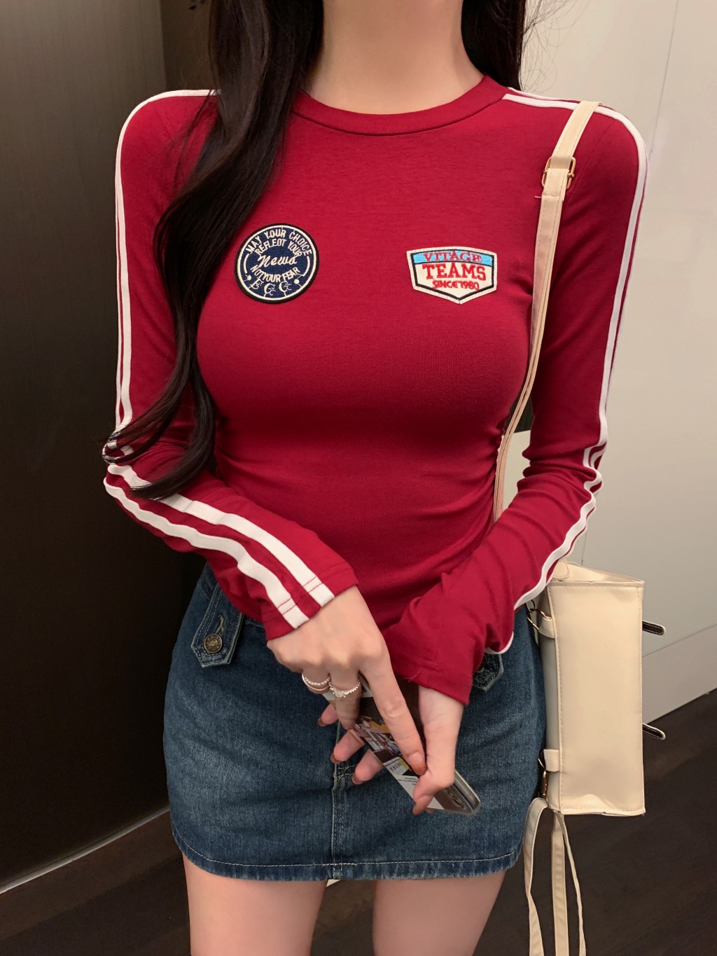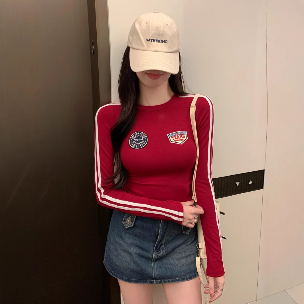 546 #实拍 40支纯棉(92棉/8氨纶) 2026秋装长袖T恤女绣花条纹上
